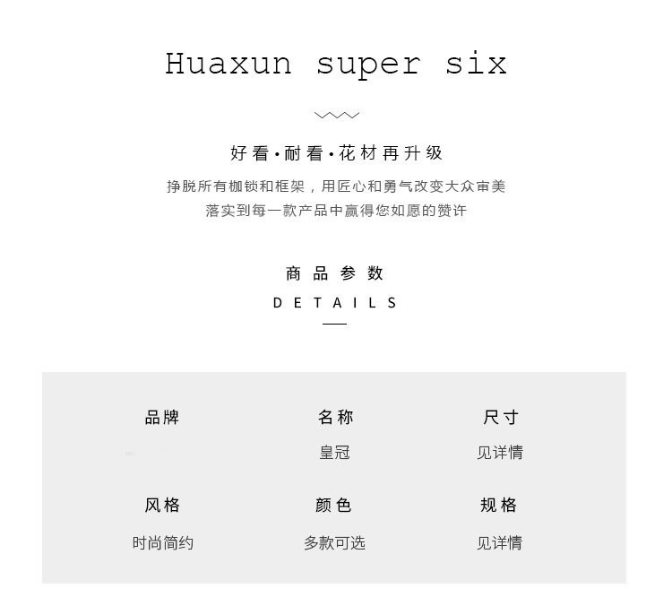 | Colores | Cisne de oro,Cisne de plata,Corona de perlas blancas,Corona de perlas rojas,Corona de plata ligera,Complemento de amor trompeta,Corona de la reina pequeña,Corona de la reina,Aleación recta reina,Aleación erecta pequeña reina,Corona de oro ligero,Aleación de la corona plateada |
