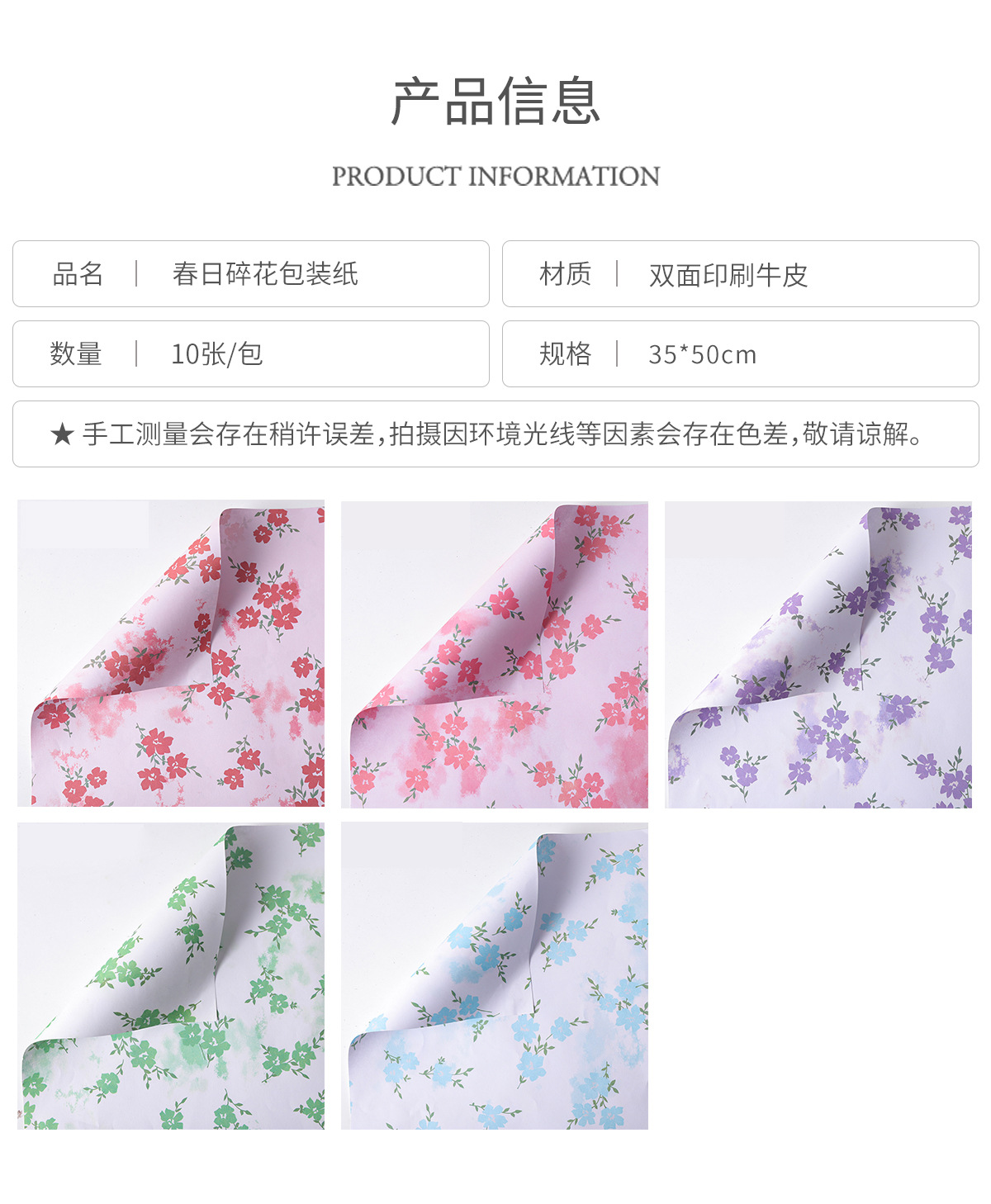 | Especificaciones y modelos | Primavera [púrpura claro] 10 hojas 35 * 50cm; ver opciones, primavera [verde claro] 10 hojas 35 * 50cm; ver opciones, primavera [azul agua] 10 hojas 35 * 50cm; ver opciones, primavera [rojo vino] 10 hojas 35 * 50cm; ver opciones, primavera [polvo de miel] 10 hojas 35 * 50cm; ver opciones |