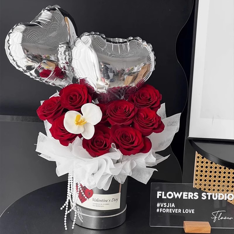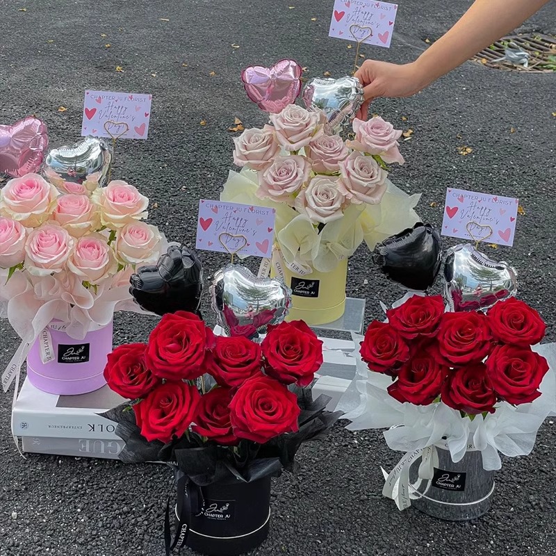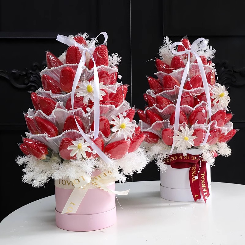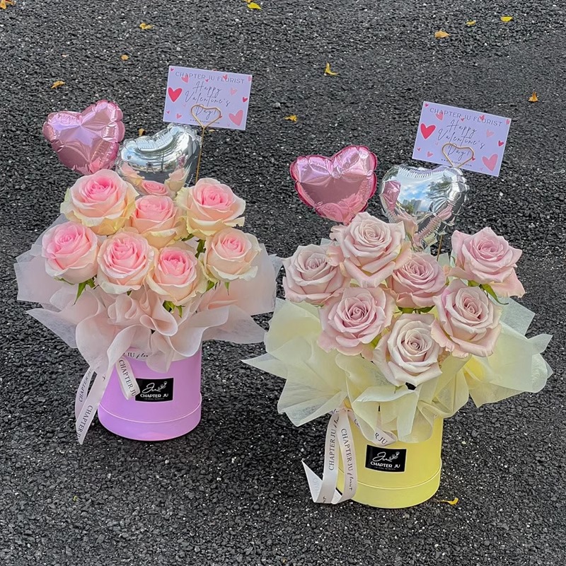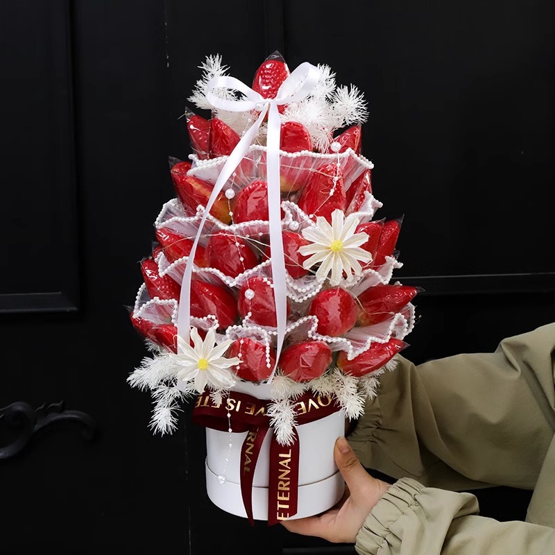 Pequeño abrazo floral barril mini pequeño ramo floral barril macarón red flores rojas mini abrazo material floral
