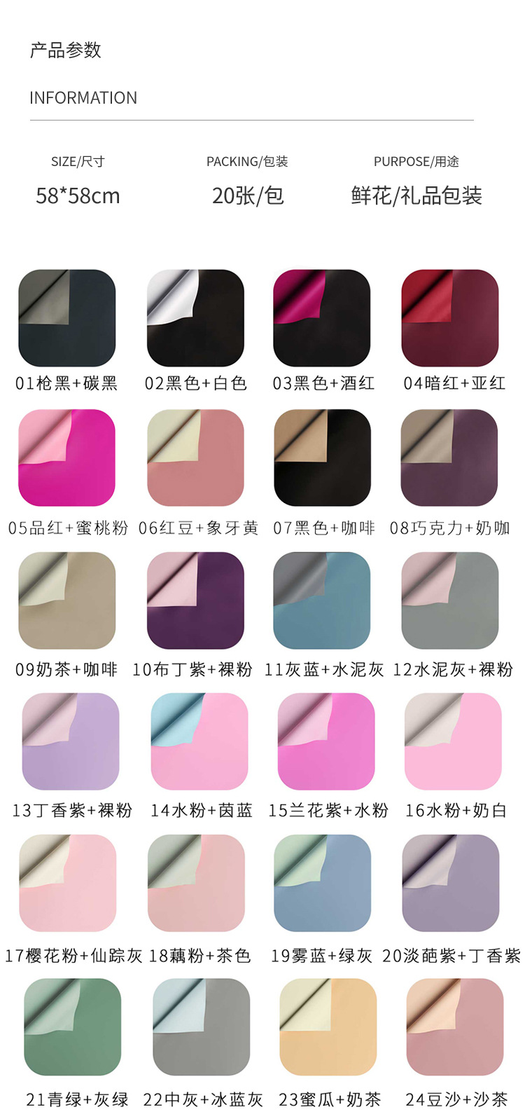 Fábrica de fiestas de flores de venta transfronteriza en caliente de papel de embalaje de flores de doble color, material de embalaje de flores, papel de embalaje de regalos
