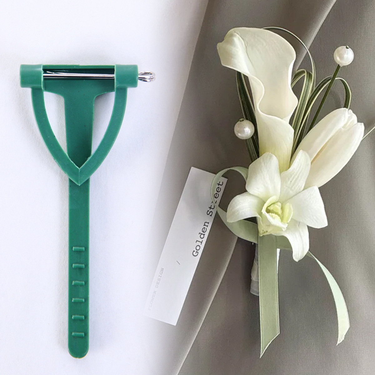 Broche de plástico triangular ramo de flores broche