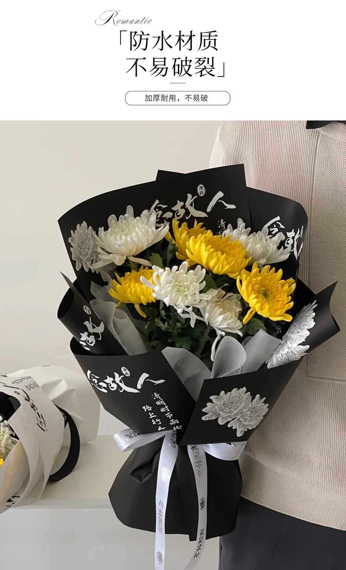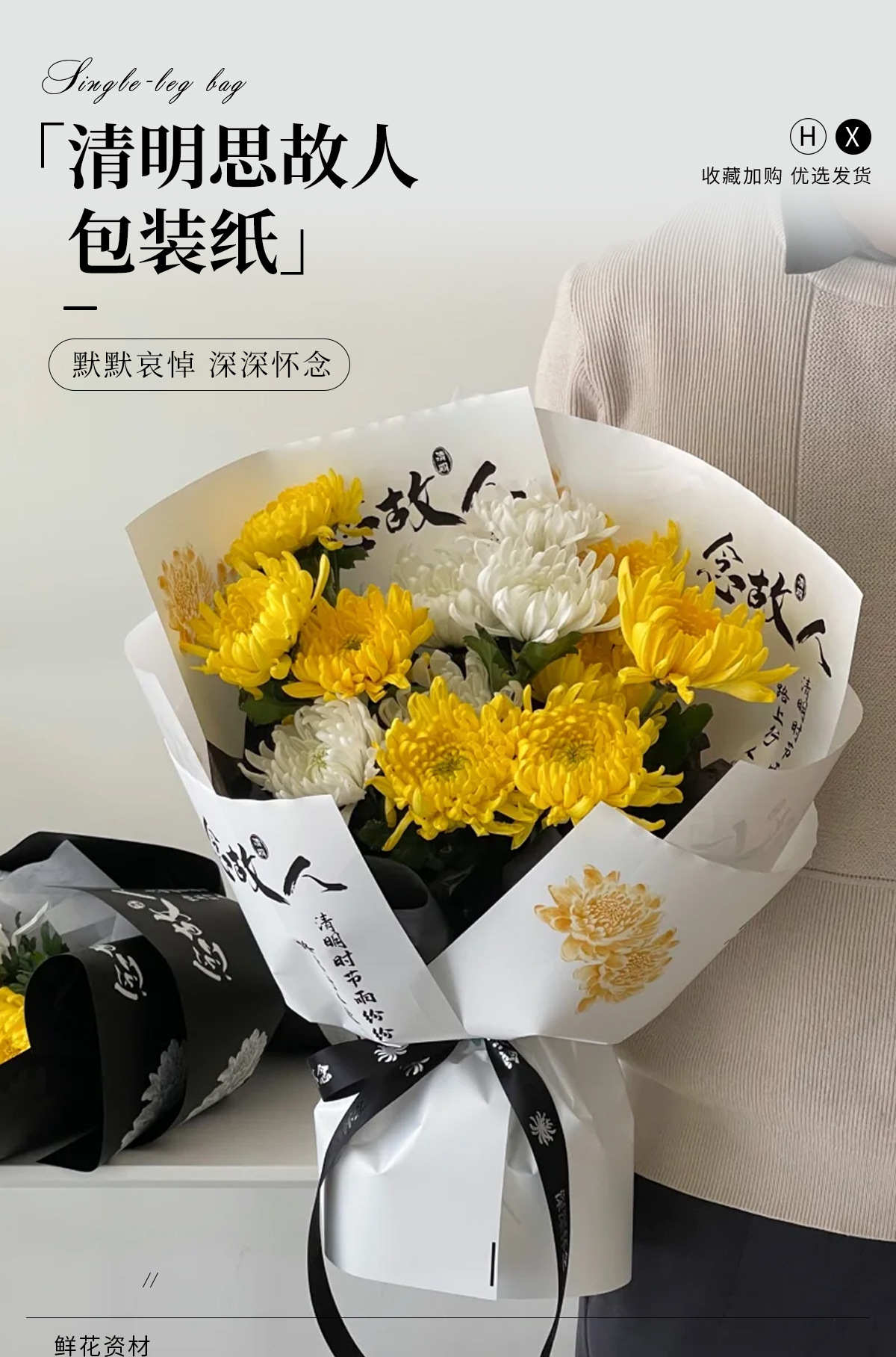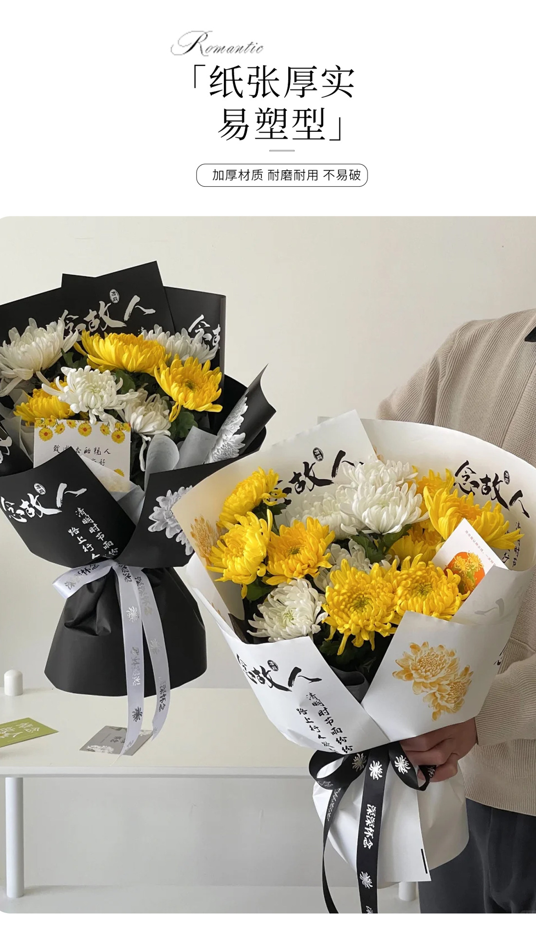 Festival Qingming ramo de flores papel de embalaje crisantemo sacrificio flores pensamiento de difunto papel de embalaje flores escaneo tumba sacrificio caracteres