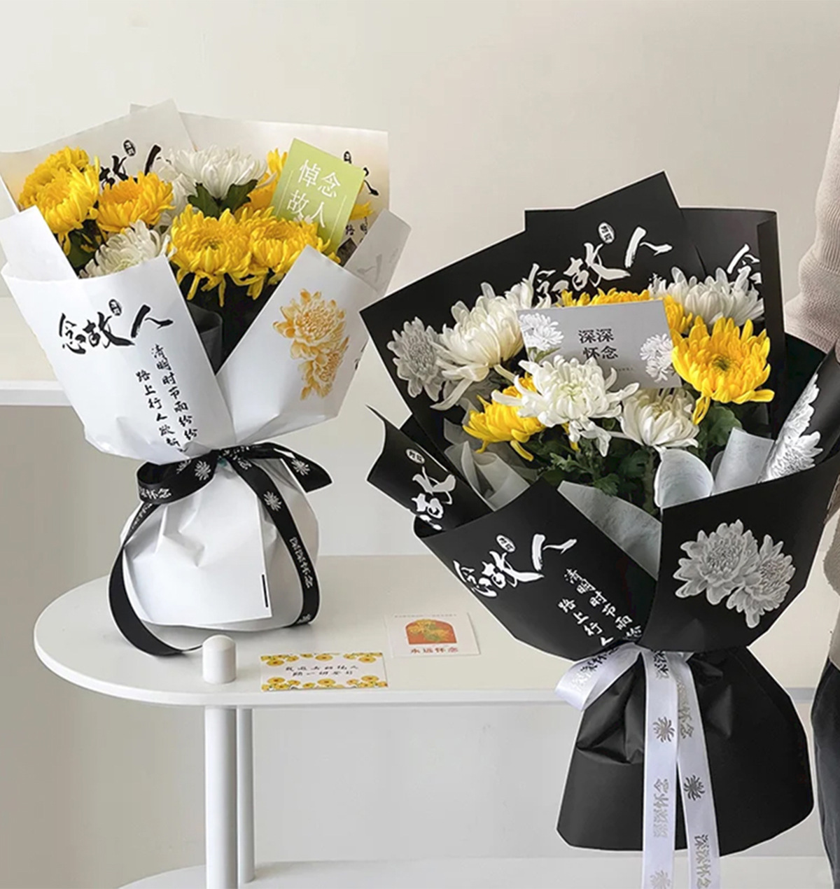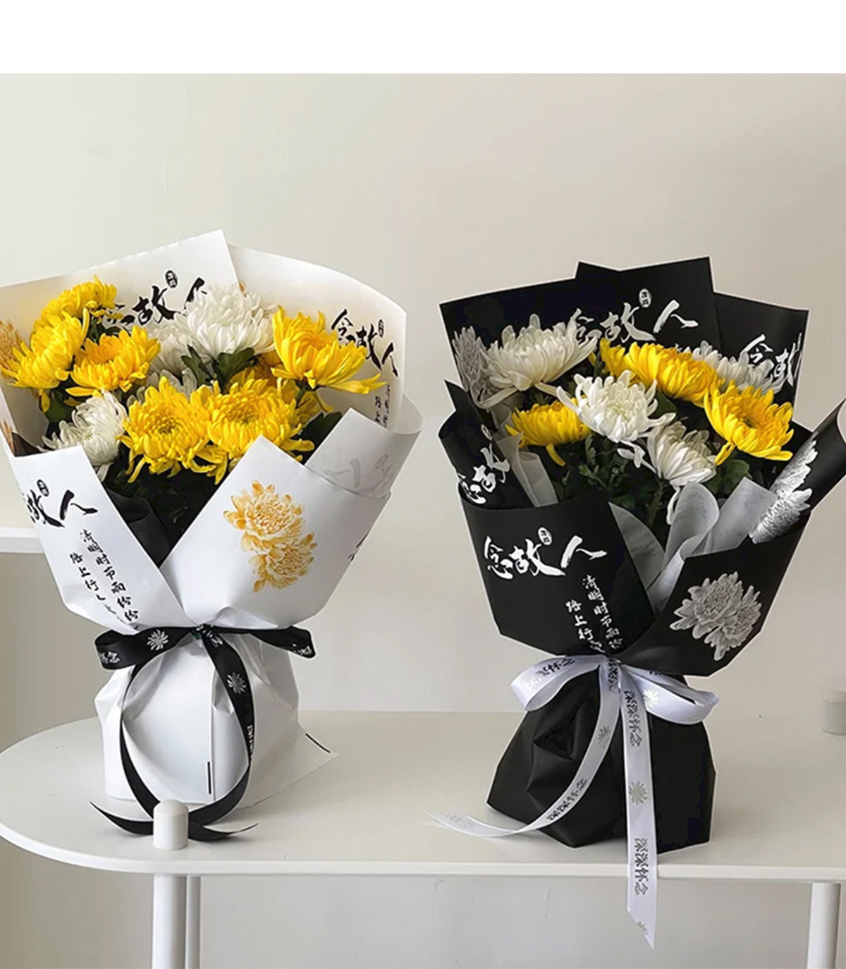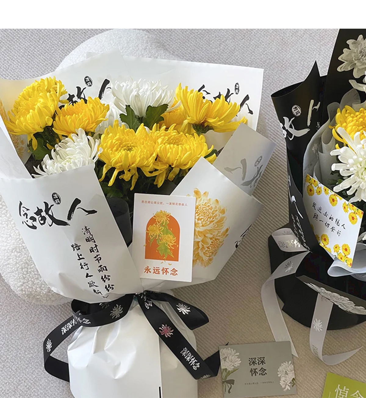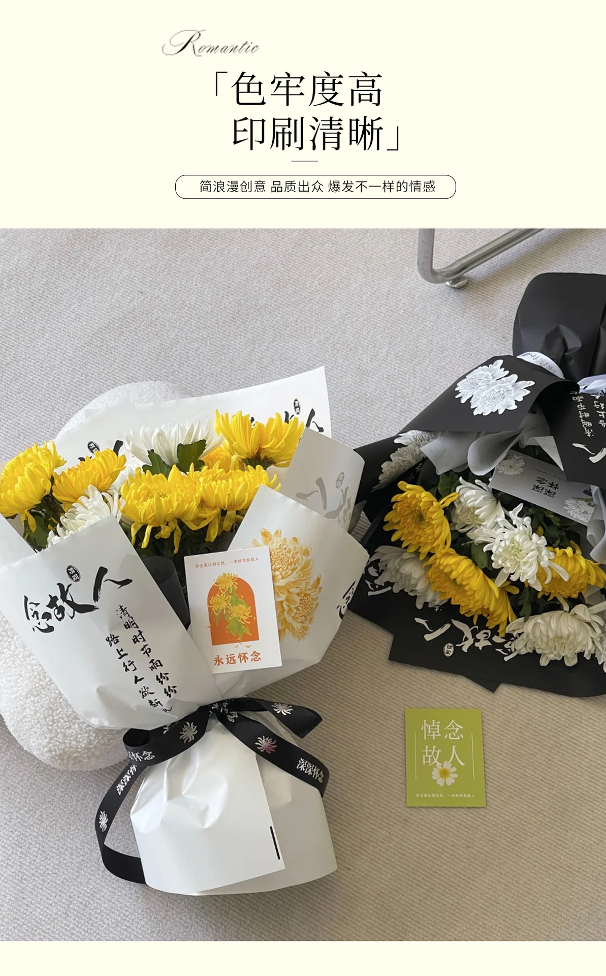 Festival Qingming ramo de flores papel de embalaje crisantemo sacrificio flores pensamiento de difunto papel de embalaje flores escaneo tumba sacrificio caracteres