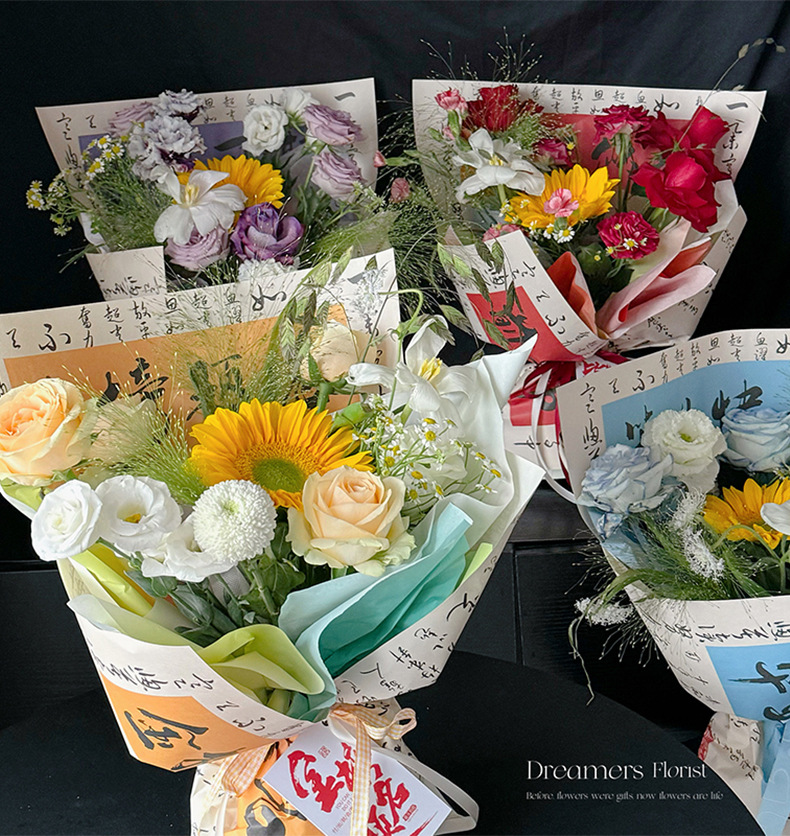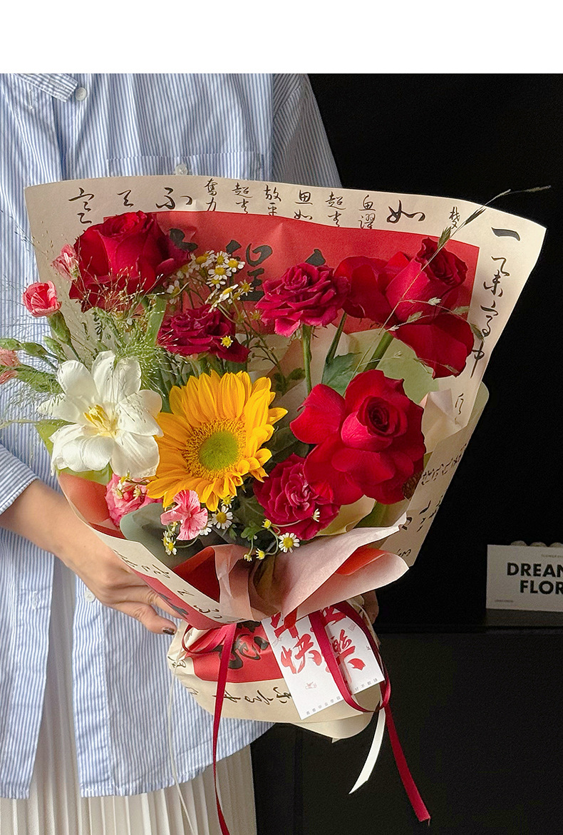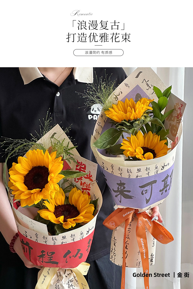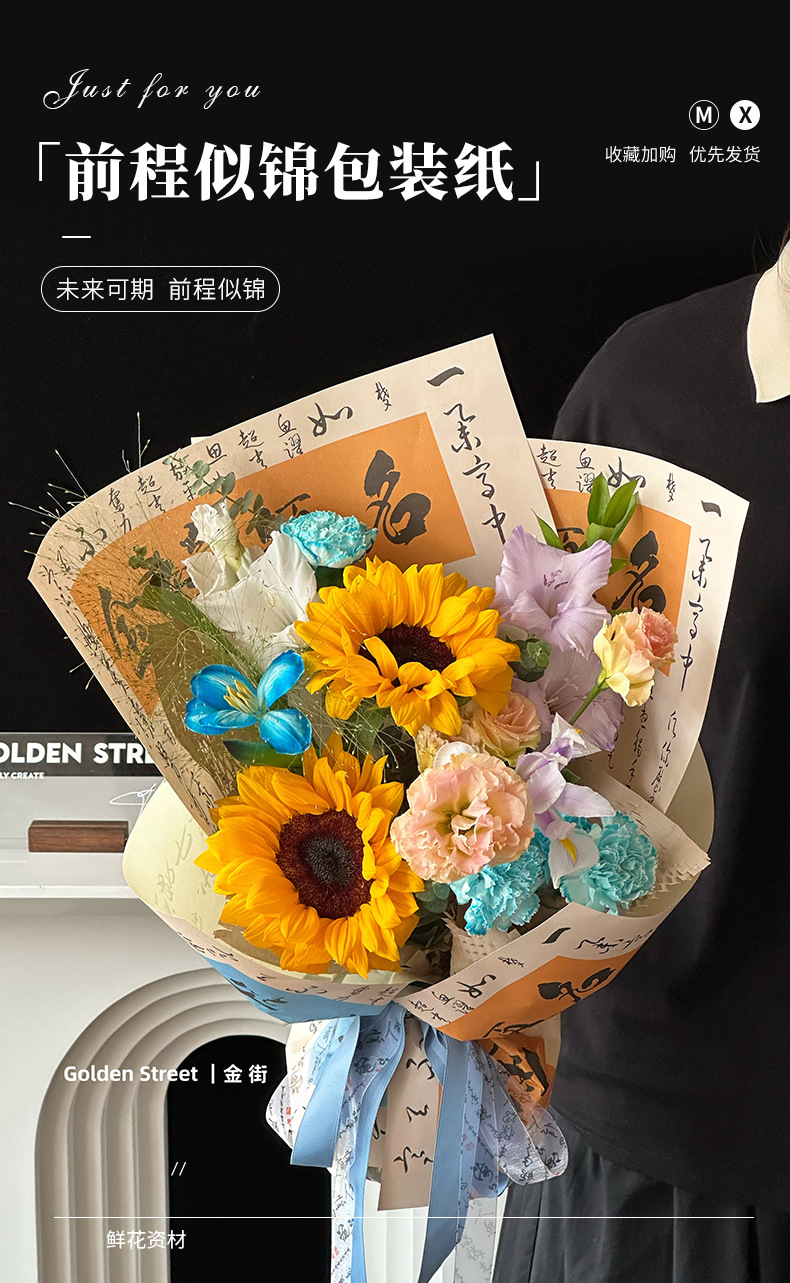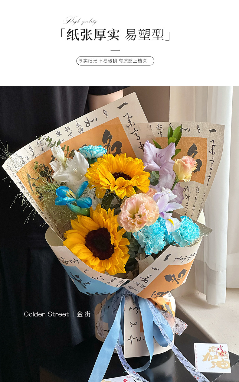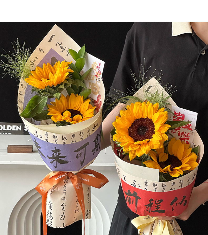 Examen de ingreso a la universidad de la escuela secundaria temporada ramo de flores de papel de embalaje flores girasoles futuro como brocadeo lista de oro título floral material de envoltura de flores