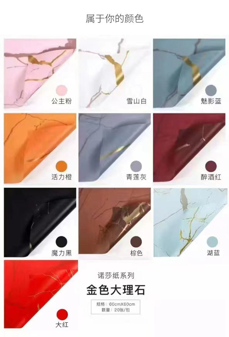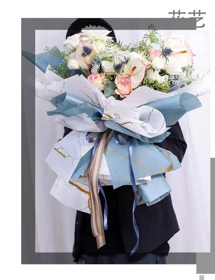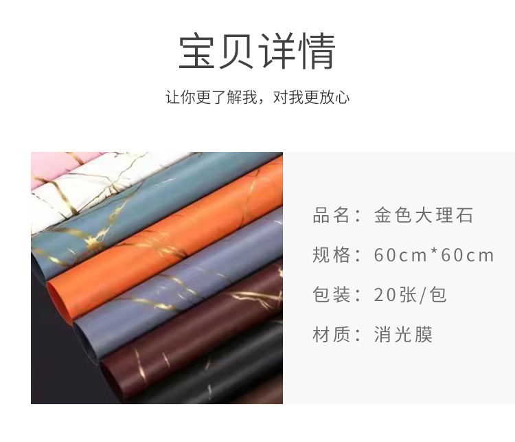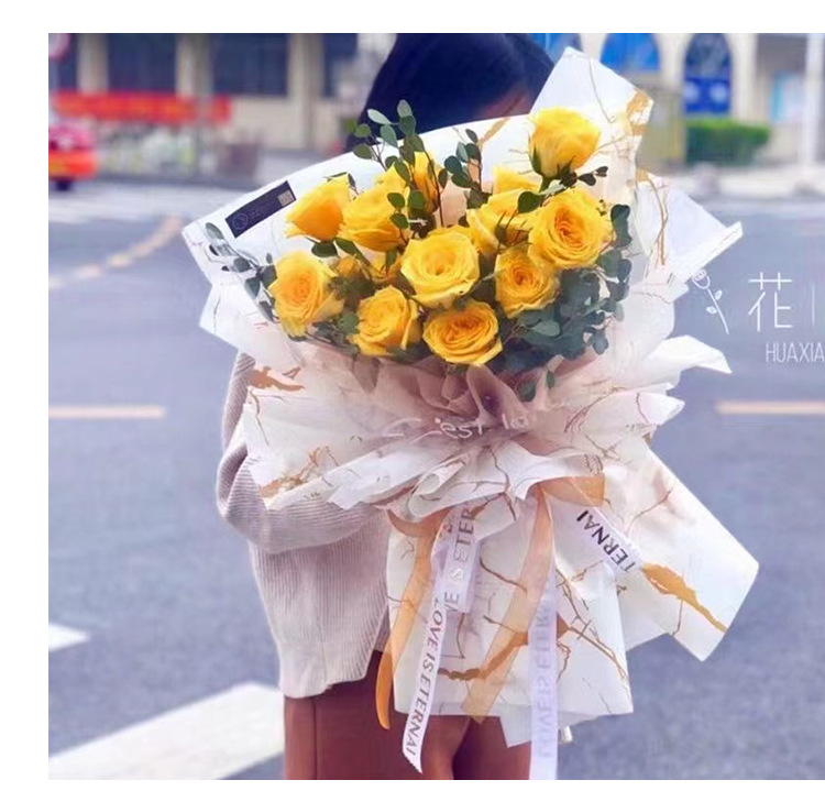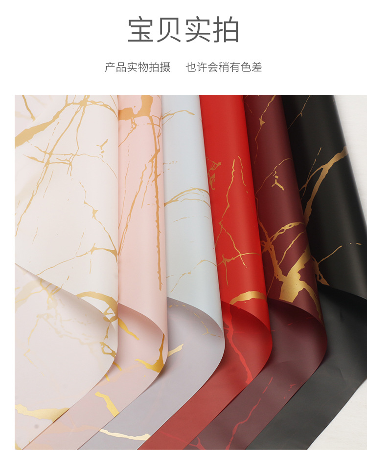 Patrón de mármol dorado Papel de embalaje de flores impermeable engrosado Papel mate Papel de embalaje de ramo Papel de embalaje Hansu al por mayor
