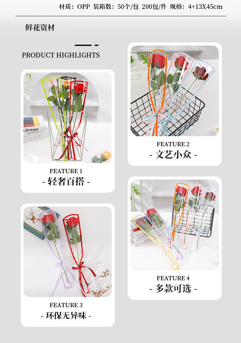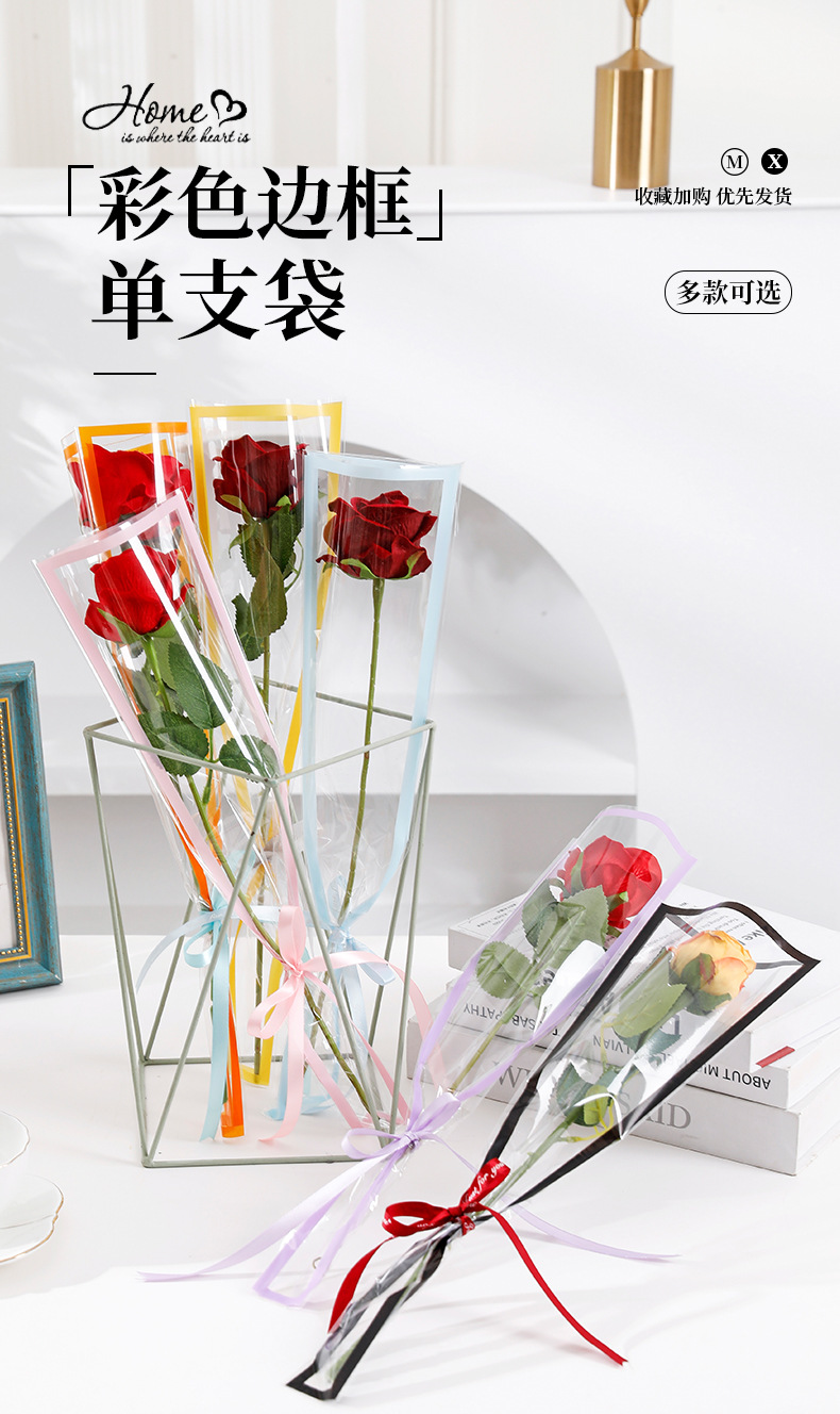 Día de San Valentín borde de color bolsas de flores rosas claras bolsas de embalaje OPP DIY material de embalaje floral