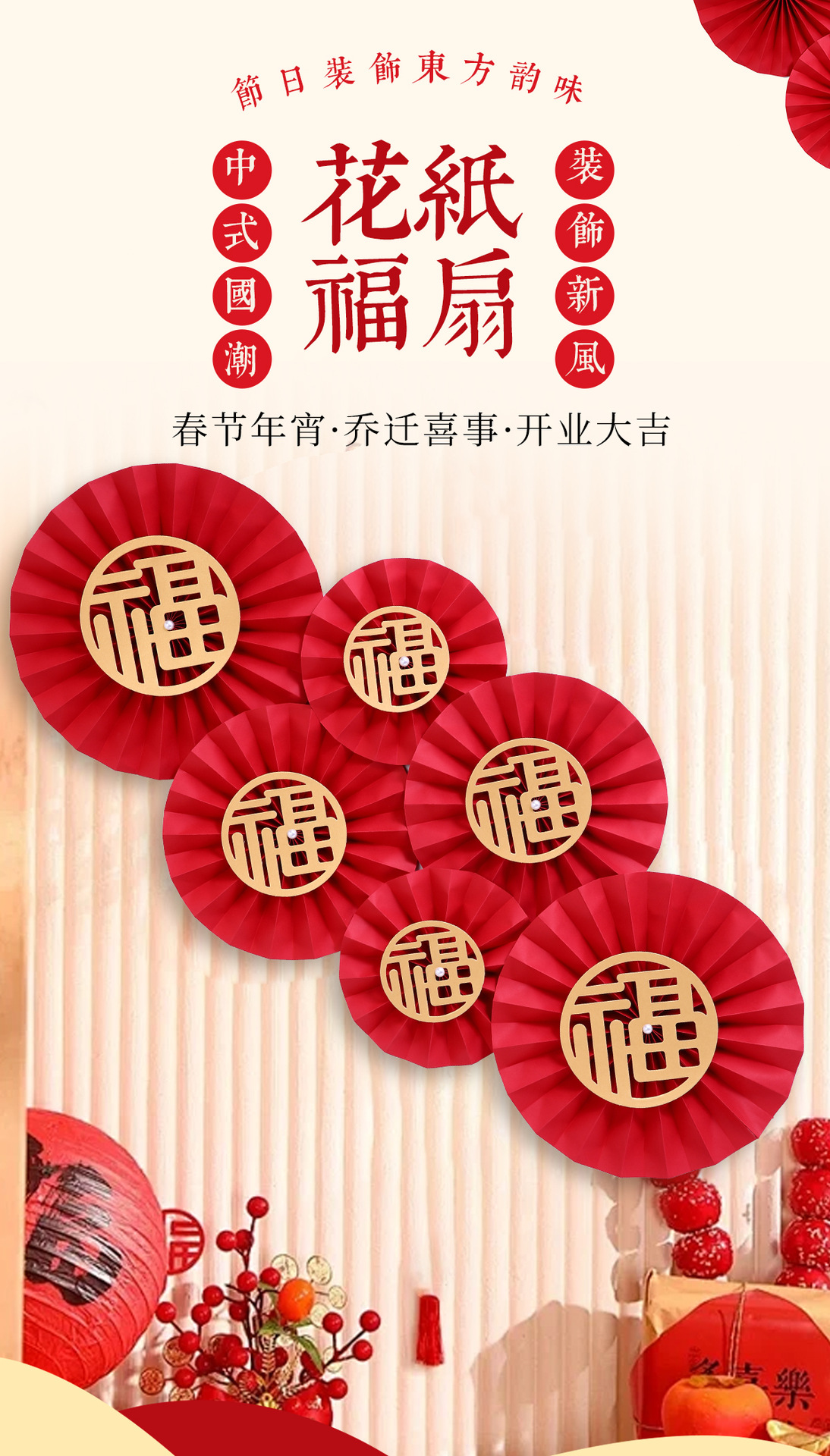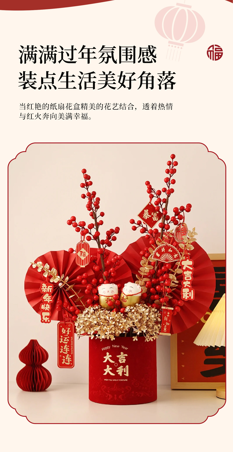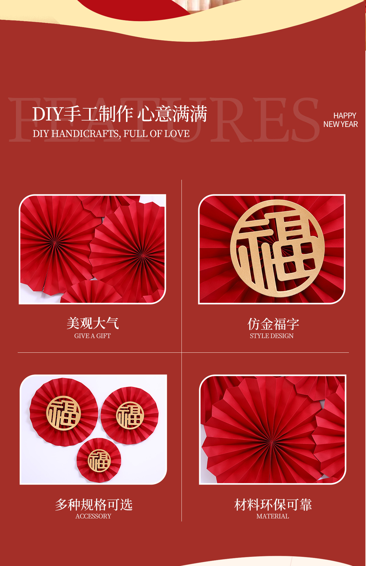 Año Nuevo del Caballo ventilador plegable chino decoración de barril abierto colgante de flores de Año Nuevo material de flores de paquete floral