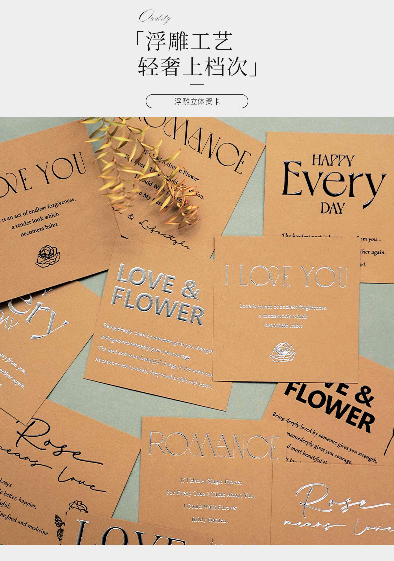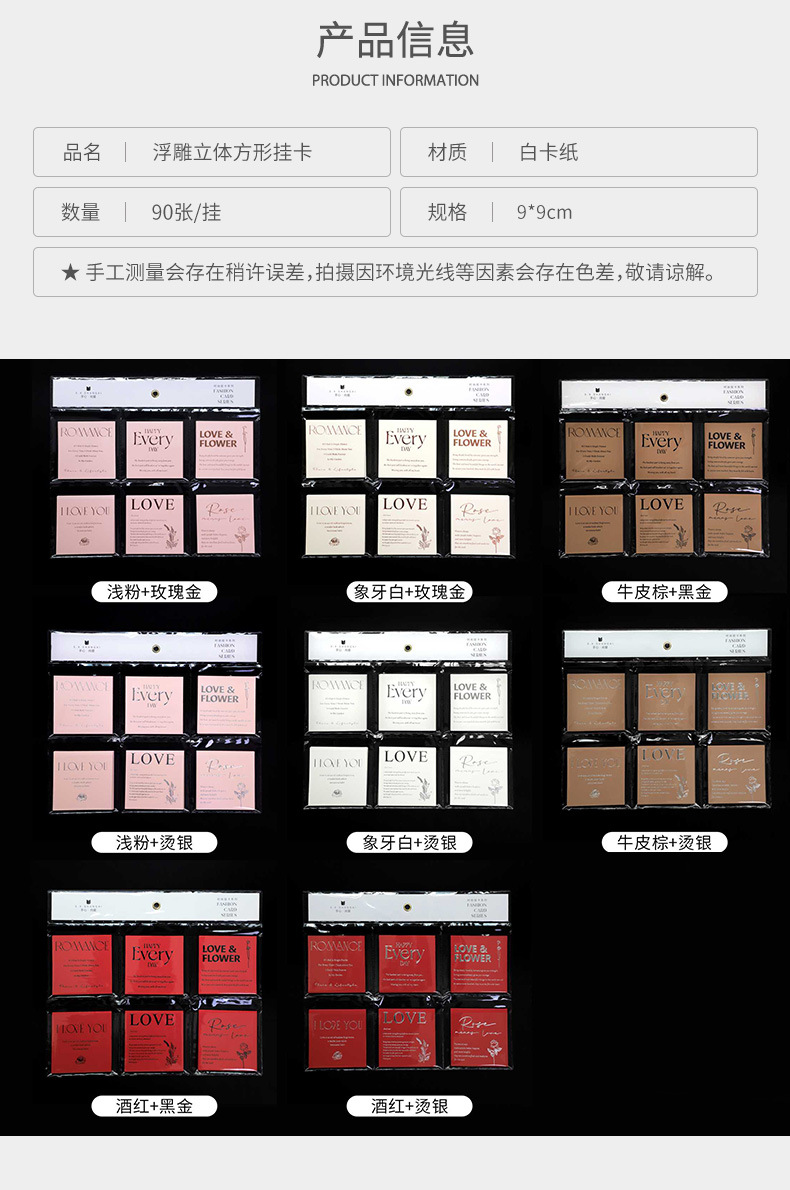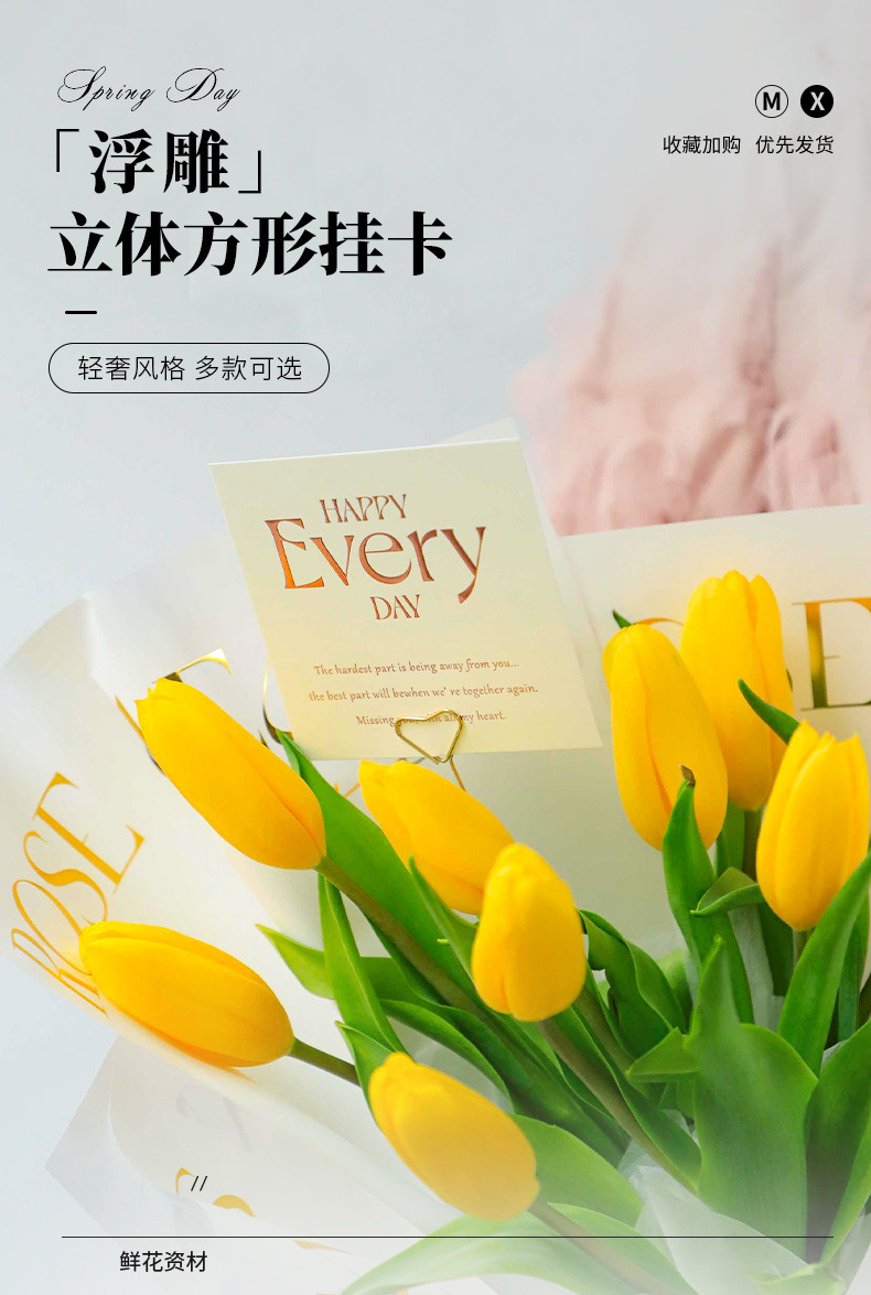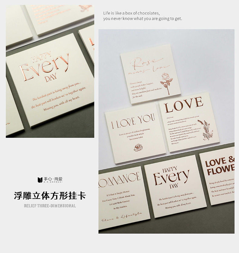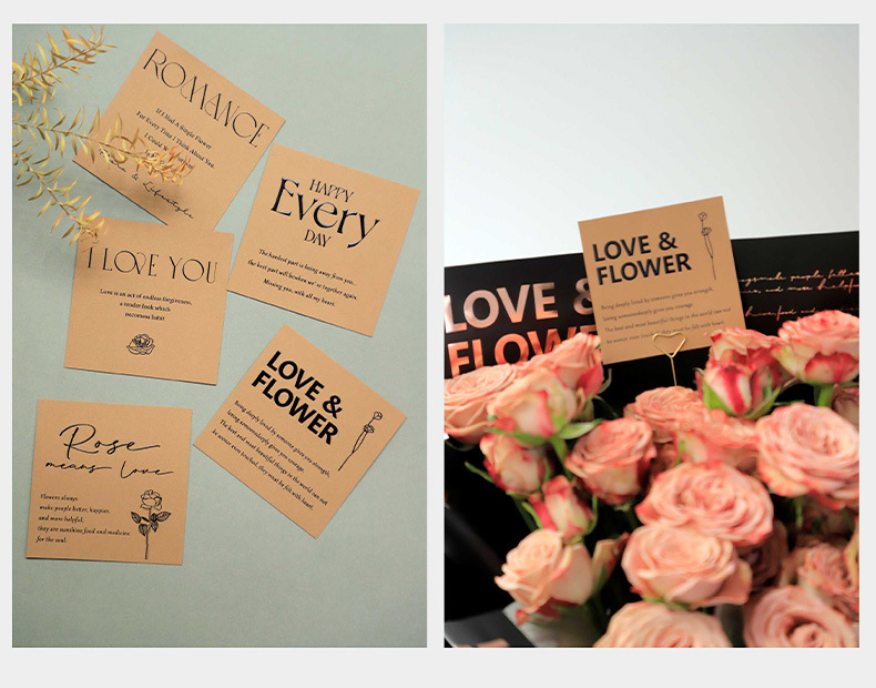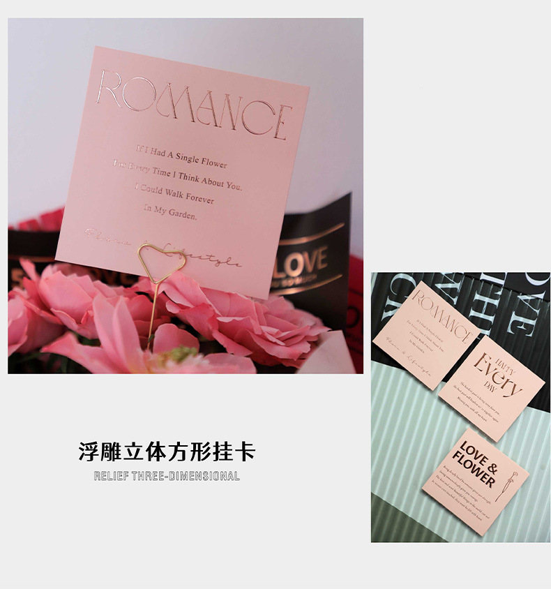 Tarjeta de embalaje de ramo fresco alivio tridimensional engrosada cuadrada tarjeta colgante embalaje de flores tarjeta pequeña tarjeta de felicitación inglesa
