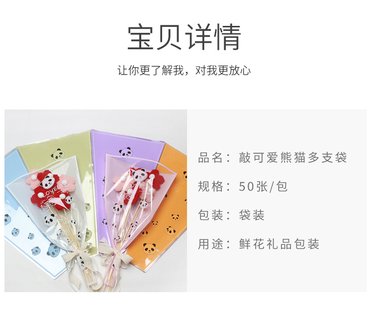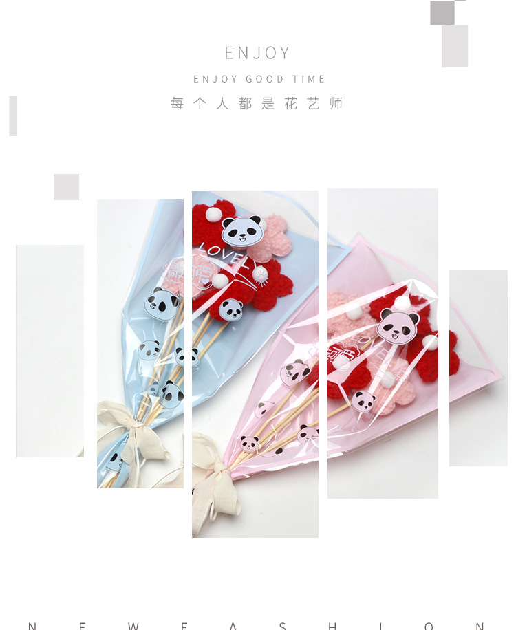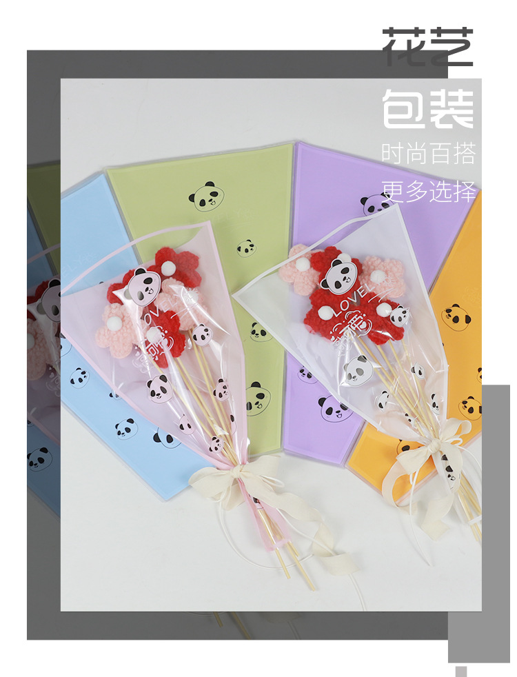 Multi-bolsa de papel de embalaje de flores Panda patrón de alto grado ramo de flores bolsa de arreglo translúcido Rosa sola bolsa