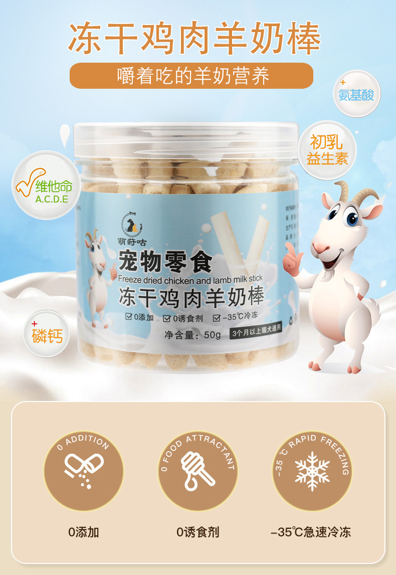 Pollo liofilizado, leche de cabra, barras de gato, bocadillos, barras de molienda, perritos, productos para mascotas, queso para gatos, lollipops