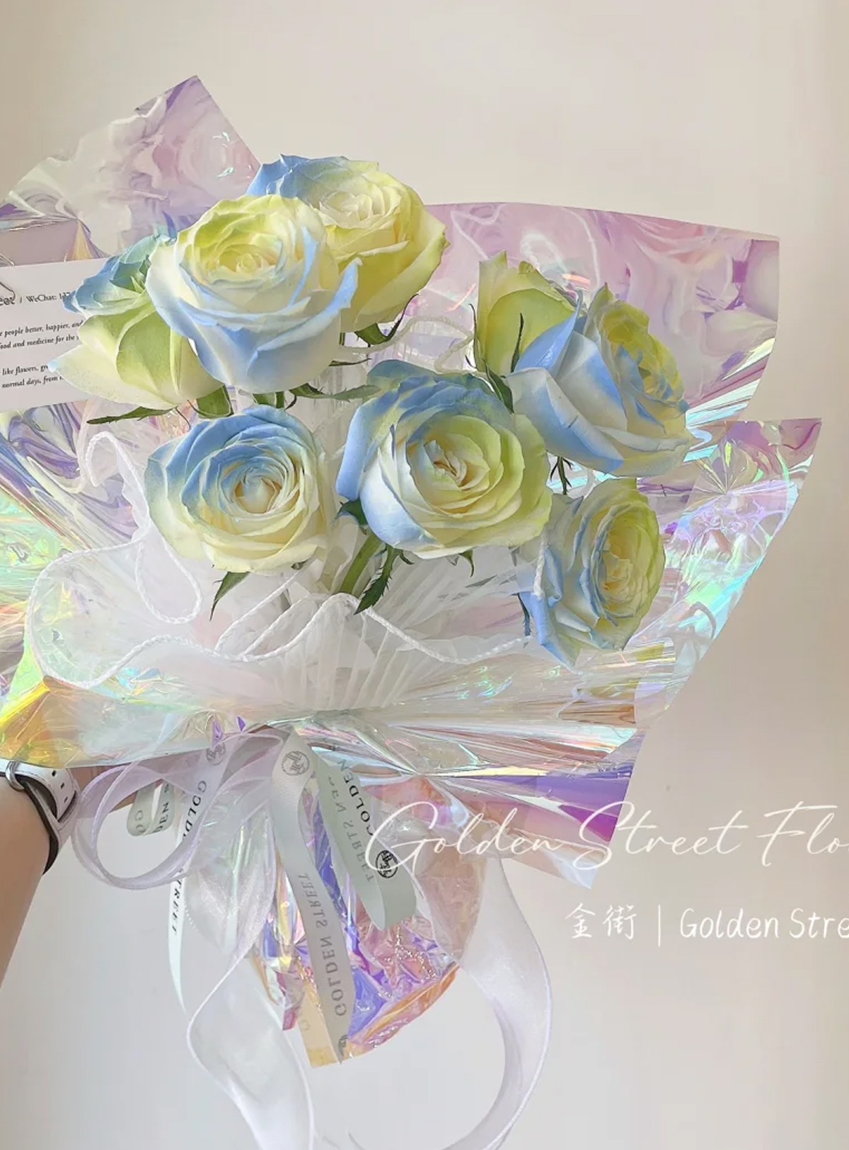 Color brillante película láser transparente paquete de papel de embalaje de flores espesado impermeable color teñido flores vidricola material de florista
