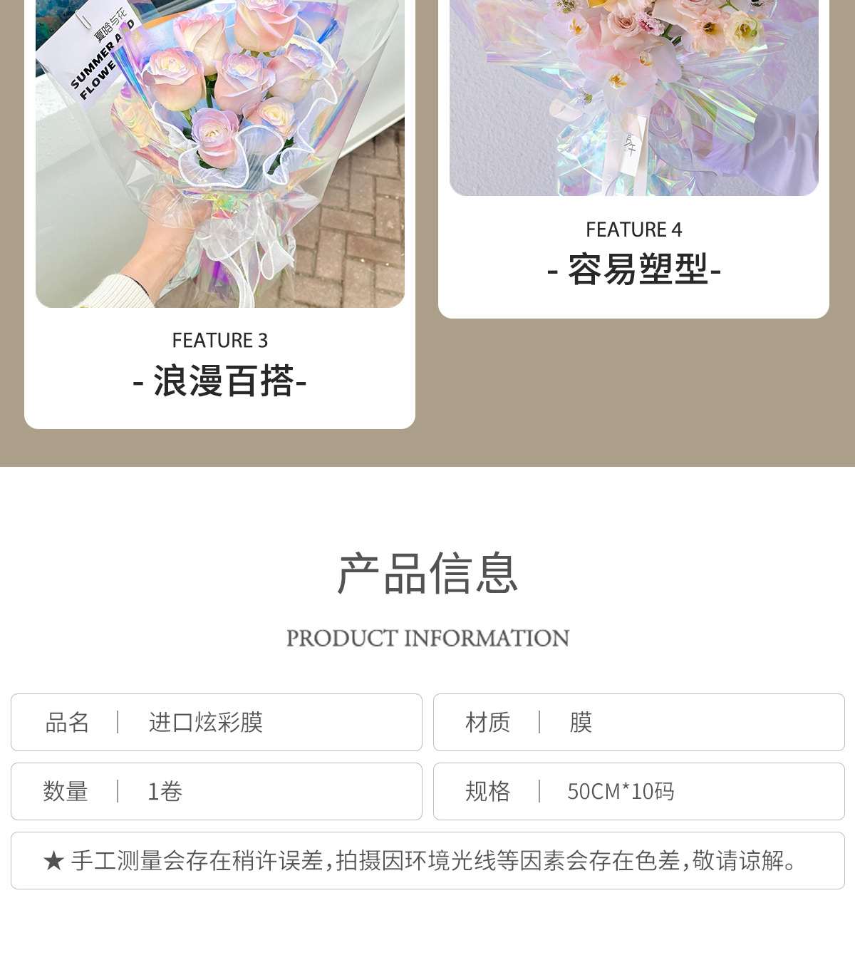 | Color | Película de color deslumbrante importada 50 * 10 yardas [1 rollo], película de color deslumbrante importada 50 * 50 cm [20 hojas / paquete] |