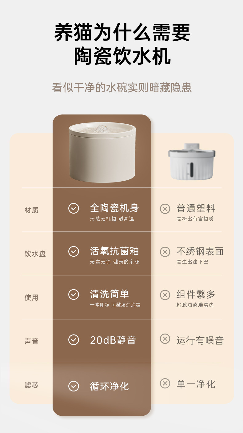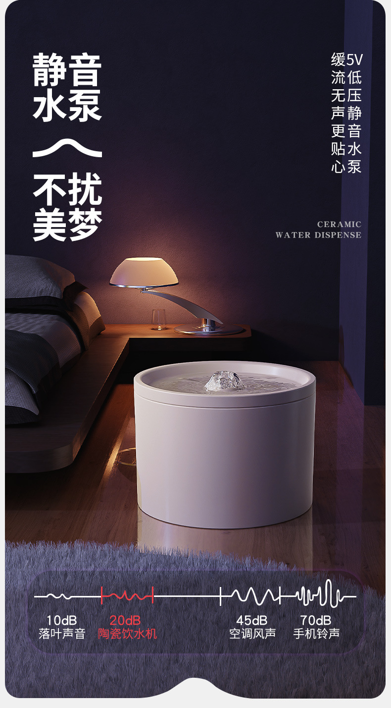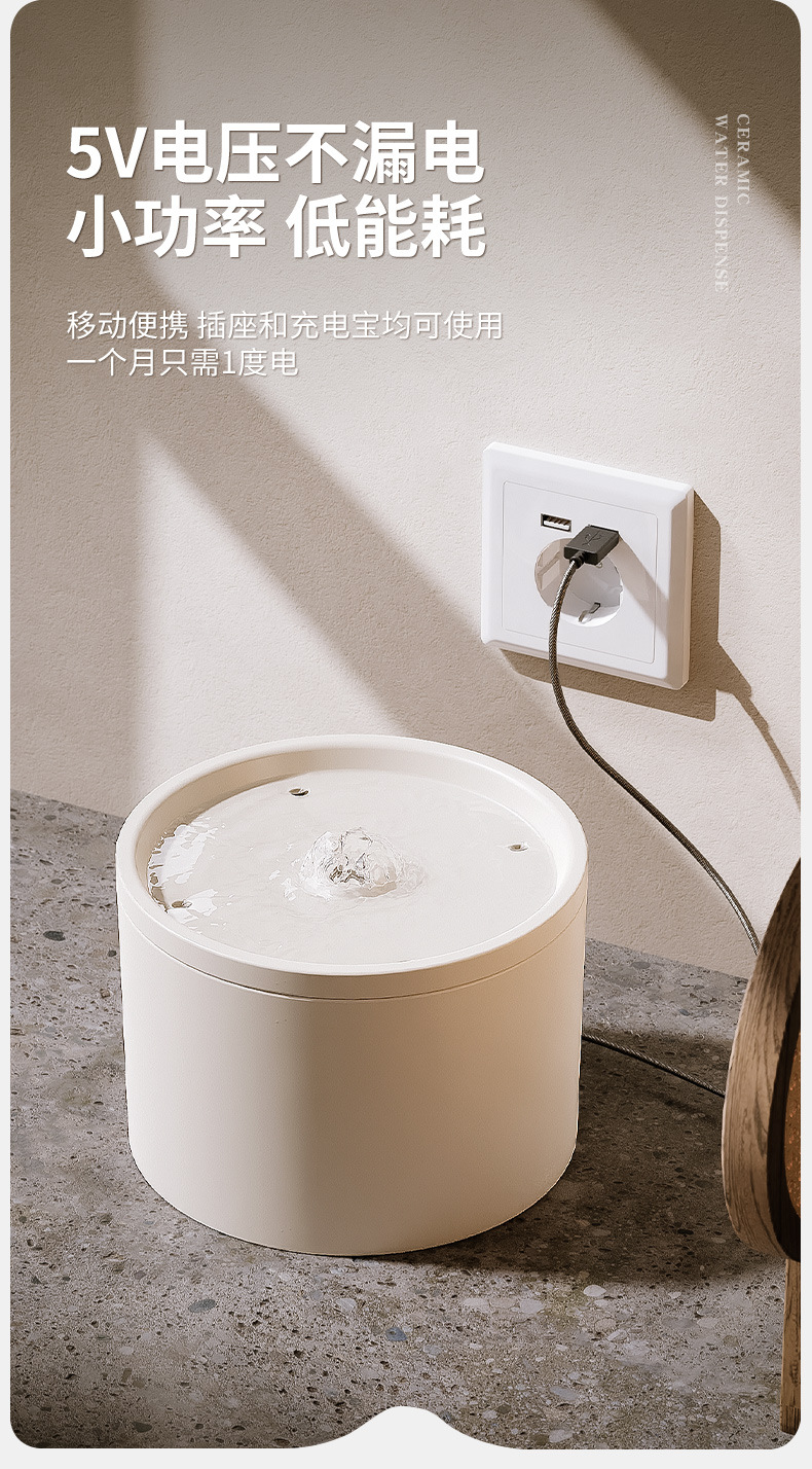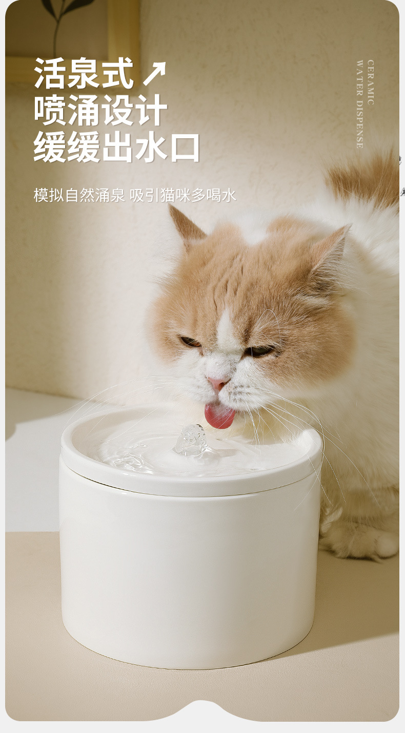 Dispensador automático de agua para gatos, móvil, silencioso, con filtración de circulación, bebedero de cerámica para mascotas, venta al por mayor transfronteriza de Amazon.