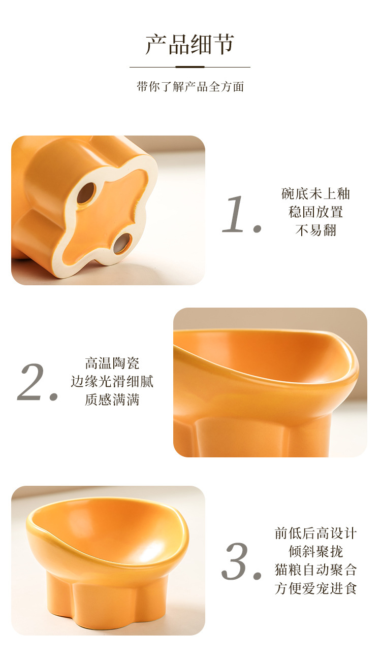 Tazón de cerámica para gatos Tazón de comida para perros Tazón de arroz para gatos Tazón de agua de gran calibre Tazón de boca inclinada Tazón de boca inclinado