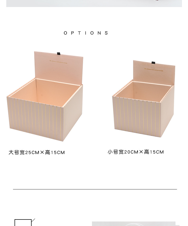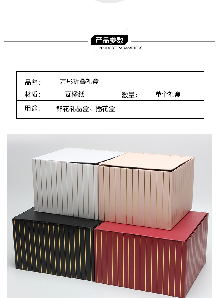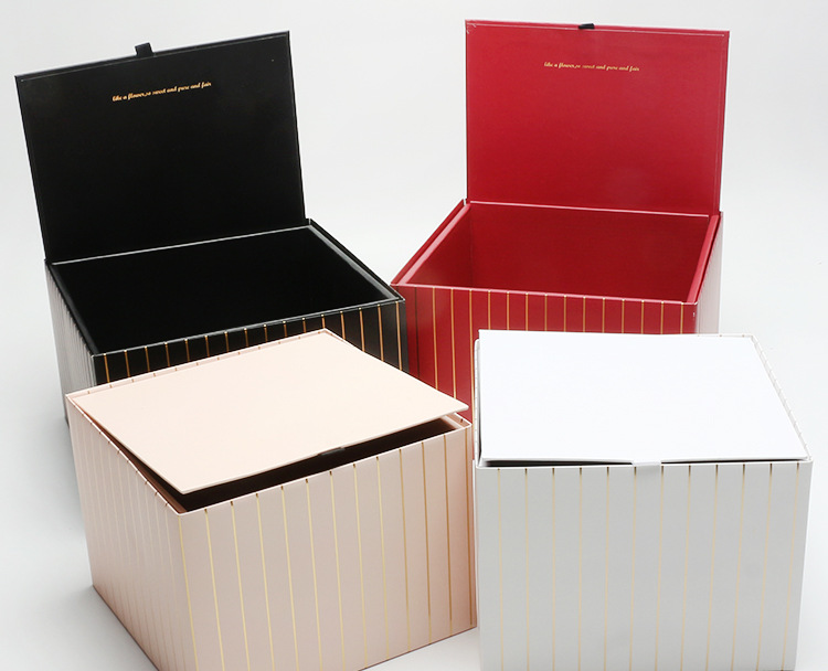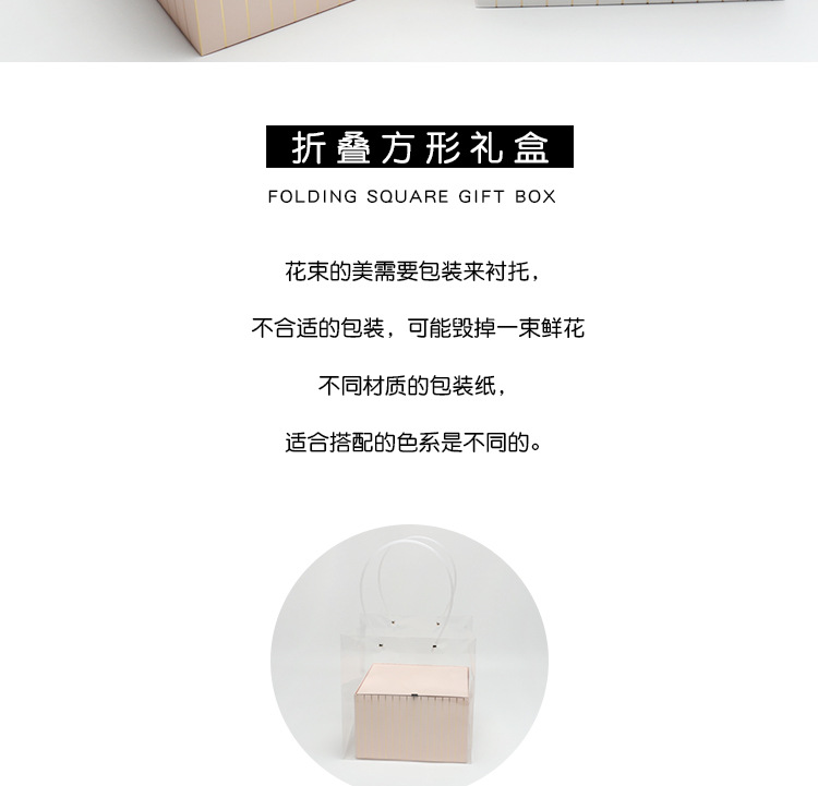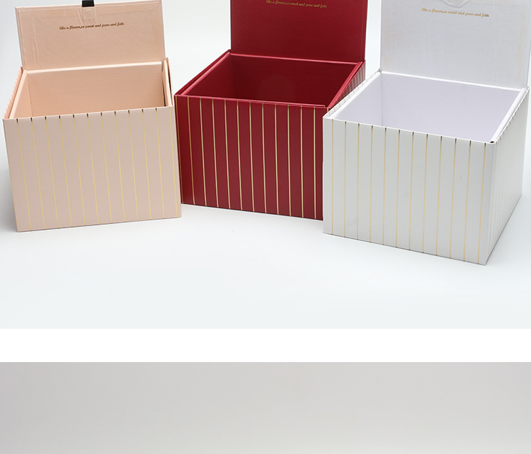 Caja de regalo cuadrada plegable caja de flores de rayas doradas material de la tienda de flores lote caja de flores de lujo ligero de alta gama