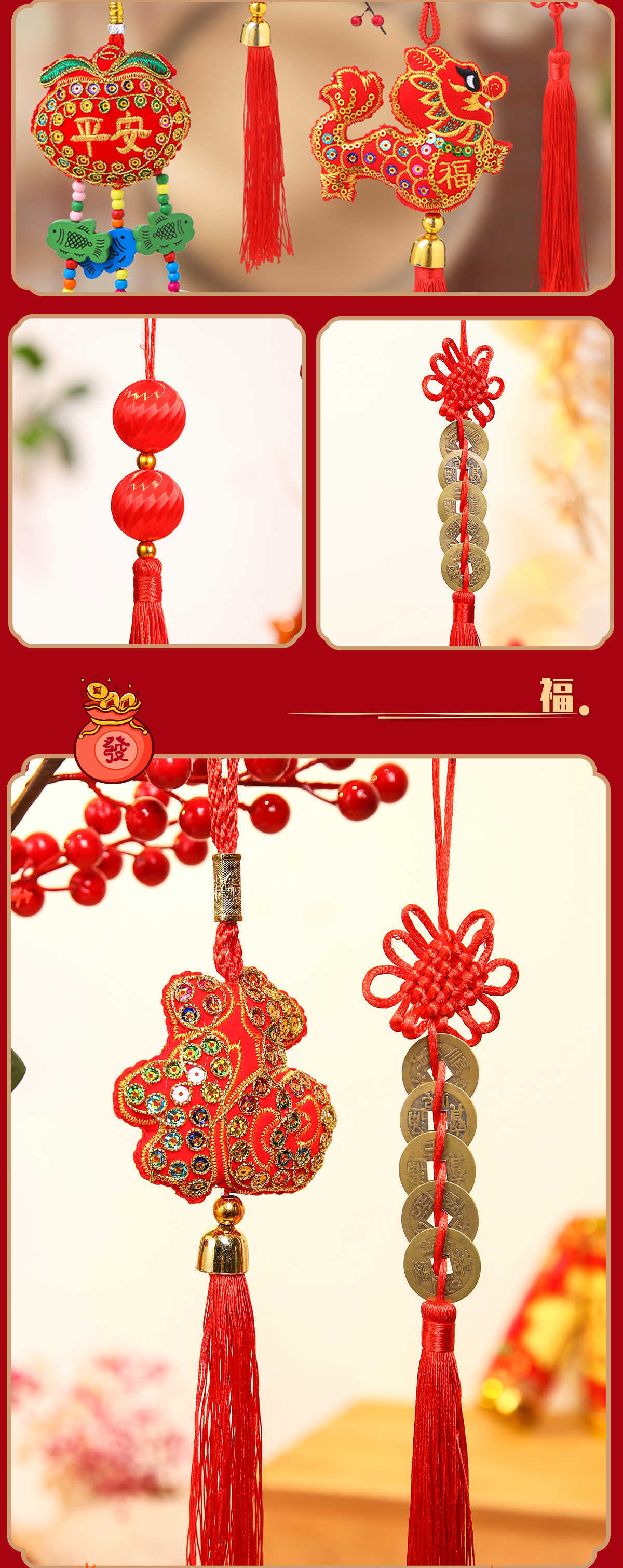 | Color | Frillones (1), cinco dientes de dinero (1), manzana Ping An Fu (1), pequeña linterna Jinfu (1), calabaza de madera cinco dientes de dinero (1), 5 # nudo chino (1), 2.7 # mercury 2 bolas (1), flashing Fu (1), Yuan Bao Ping An (1), Zongzi Ping An (1), koi carpa con bendición (1), mente de paz (1), bolsa de bendición (1), 5 # 20 nudo chino (1), 4 # 20 nudo chino (1), Pequeño caqui dos bolas (1), linterna en la seguridad (1) |
