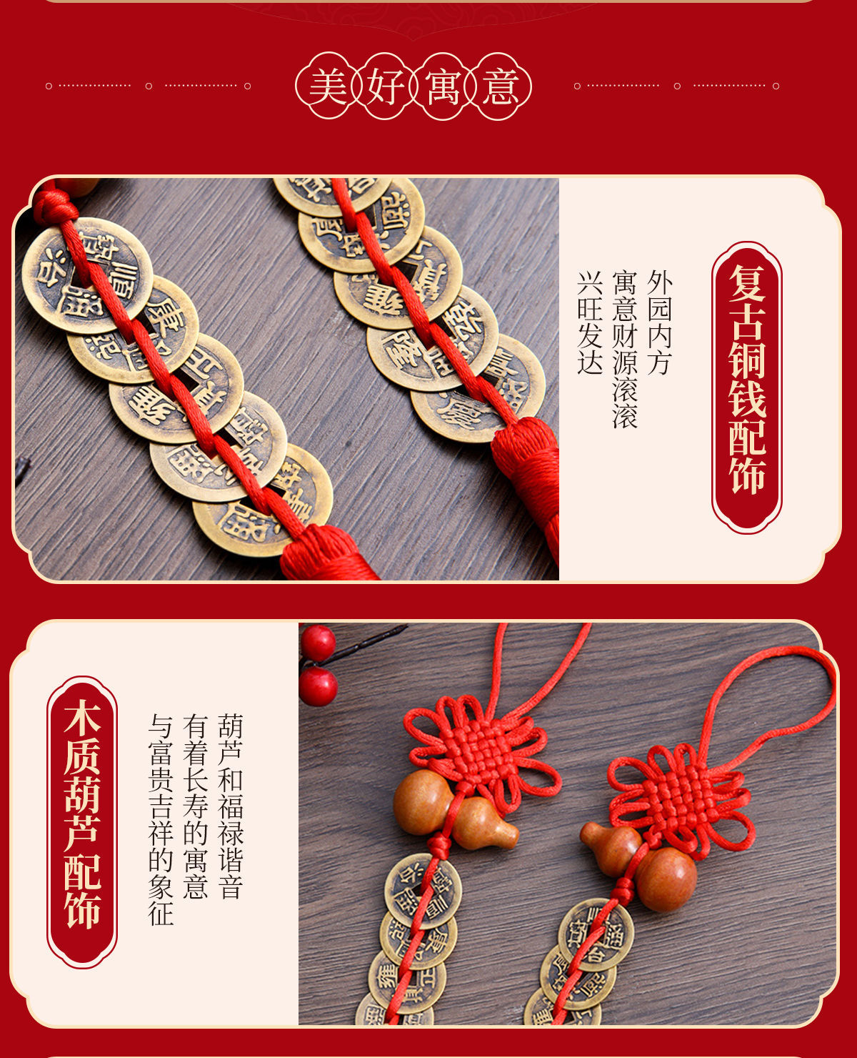| Especificaciones y modelos | Cinco monedas imperiales (1); Ver opciones, calabaza de madera Wu Di Qian (1); ver opciones, 5 # China Xiaojiao (1); ver opciones, 4 # 20 China Nudo (1); ver opciones, Ribbon (1); ver opciones, Apple Ping An Fu (1); ver opciones, mente Ping An (1); ver opciones, Yuan Bao Ping An (1); ver opciones, linterna Ping An (1); ver opciones, linterna Ping An (1); Ver opciones |