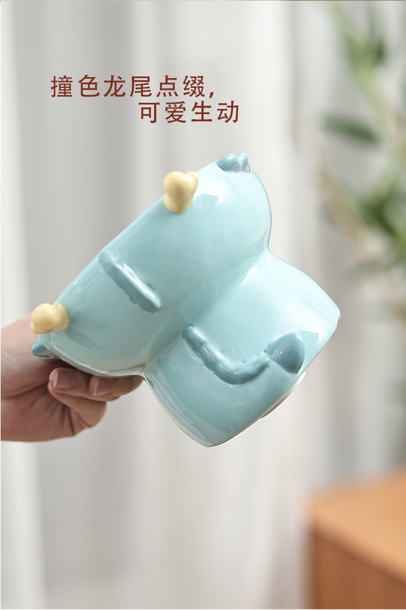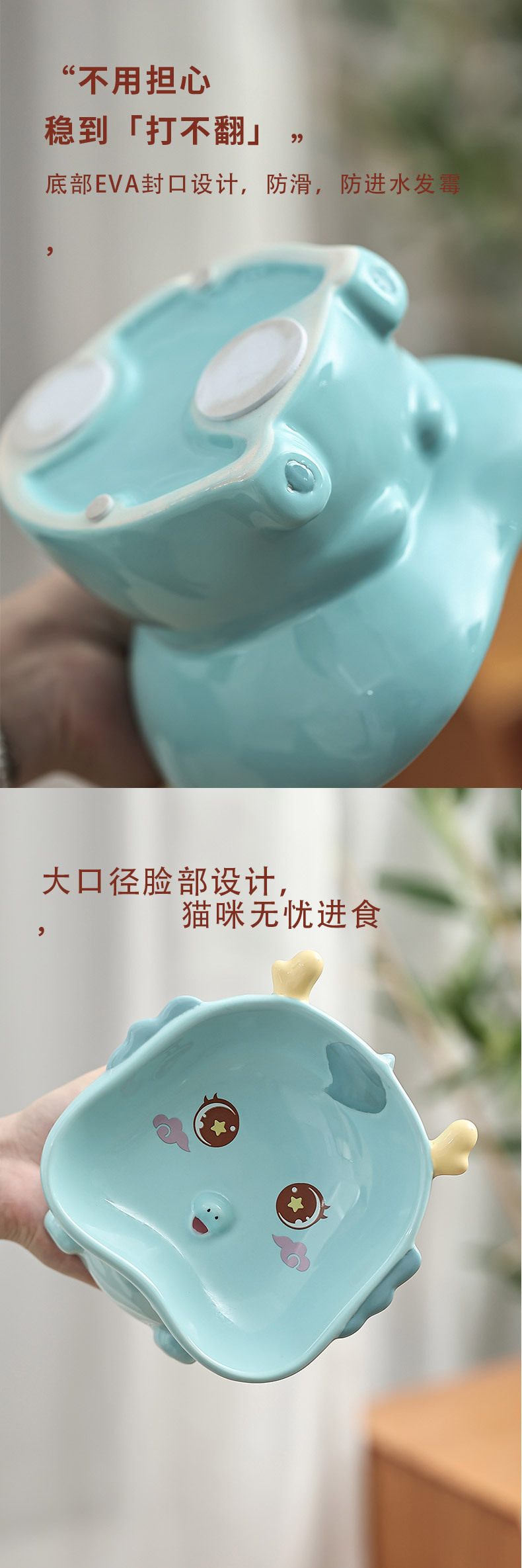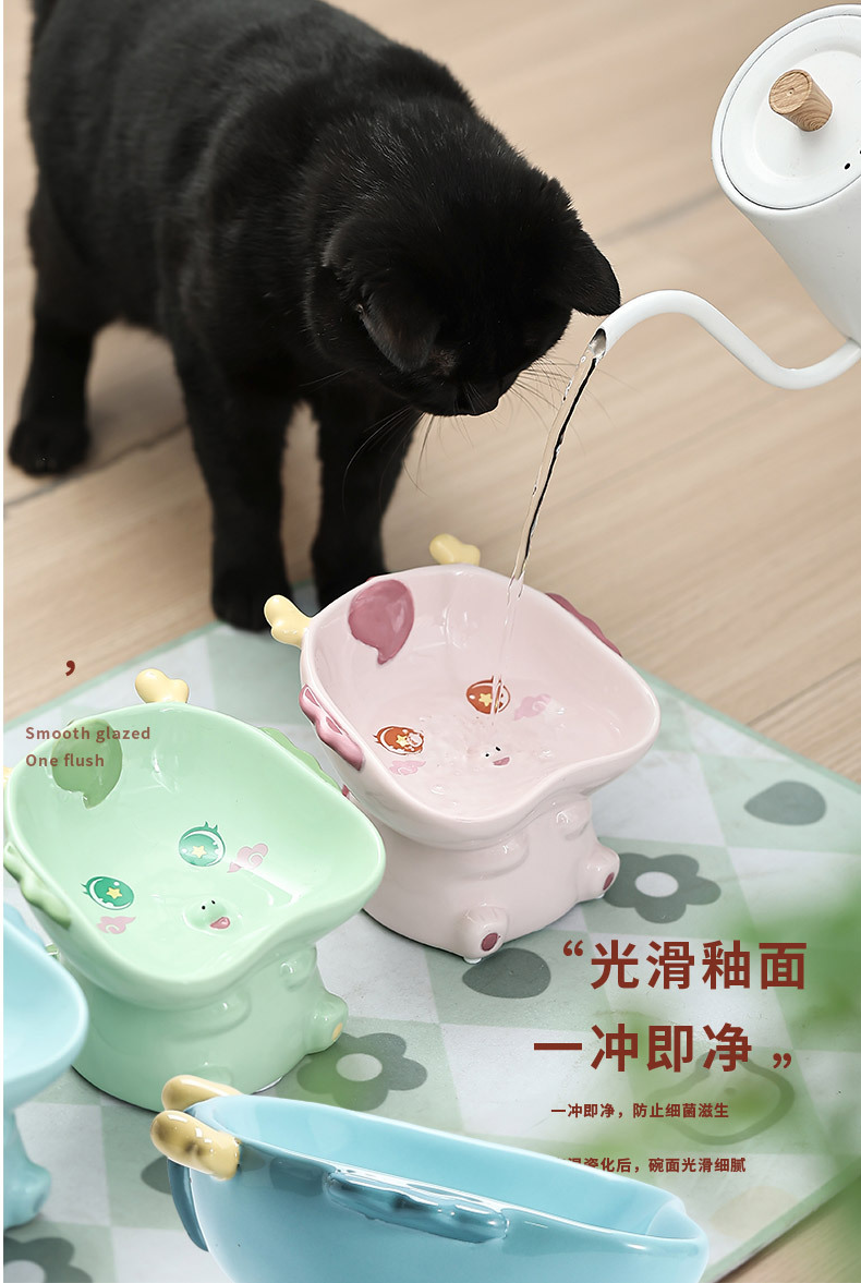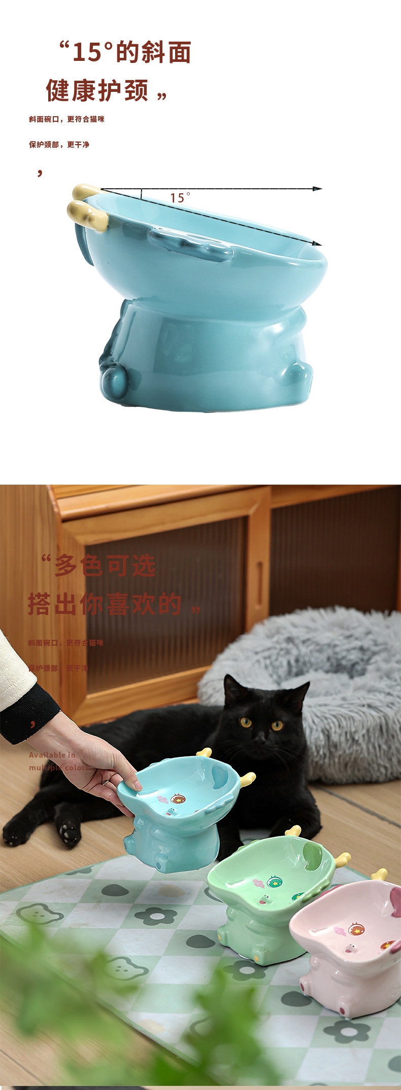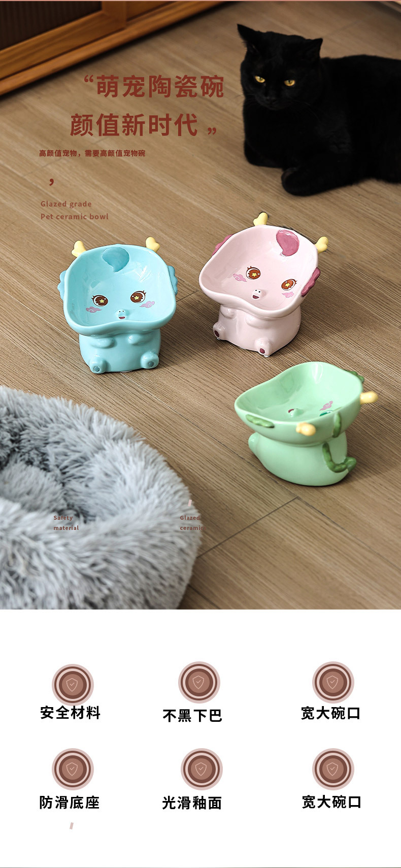 Gato tazón gato arroz tazón perro arroz tazón dibujos animados lindo dragón bebé cerámica gato tazón alto pie inferior oblicuo sellado antideslizante