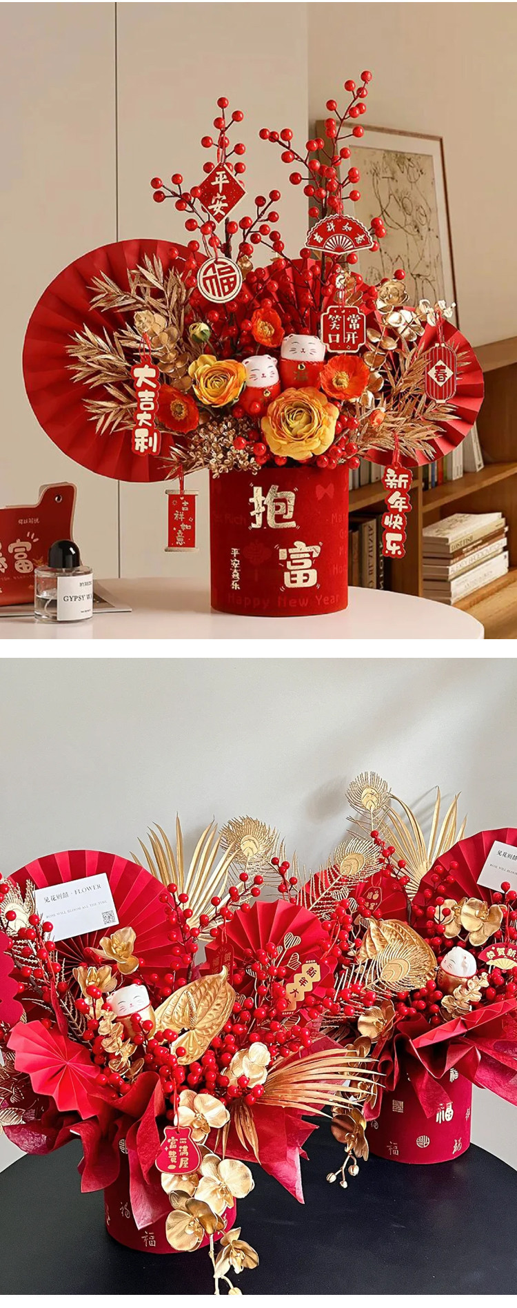 Celebración de Año Nuevo de hojas de oro de eucalyptus flores de barril de flores de simulación de material de cena de Año Nuevo flores falsas decoración del hogar