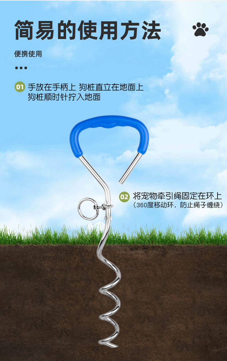 Fábrica en stock perro al aire libre perro pila fija pila cromo perno perro espiral tierra clavo tierra ancla perro perno Amazon Venta caliente