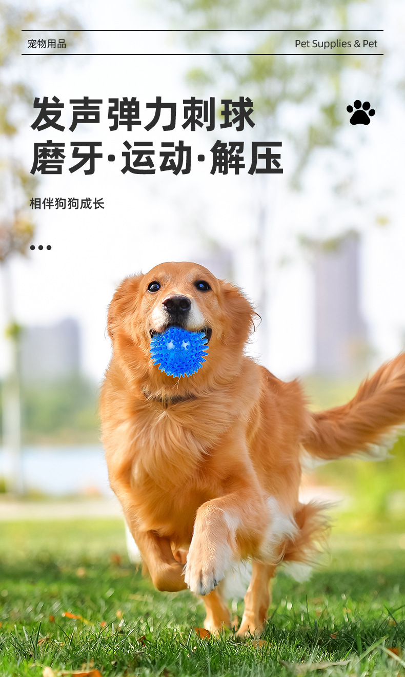 Bola de juguete explosiva transfronteriza, tpr de alta elasticidad, chirrido, bola de espina puntiaguda de sonido, bola de juguete de perro resistente a morder