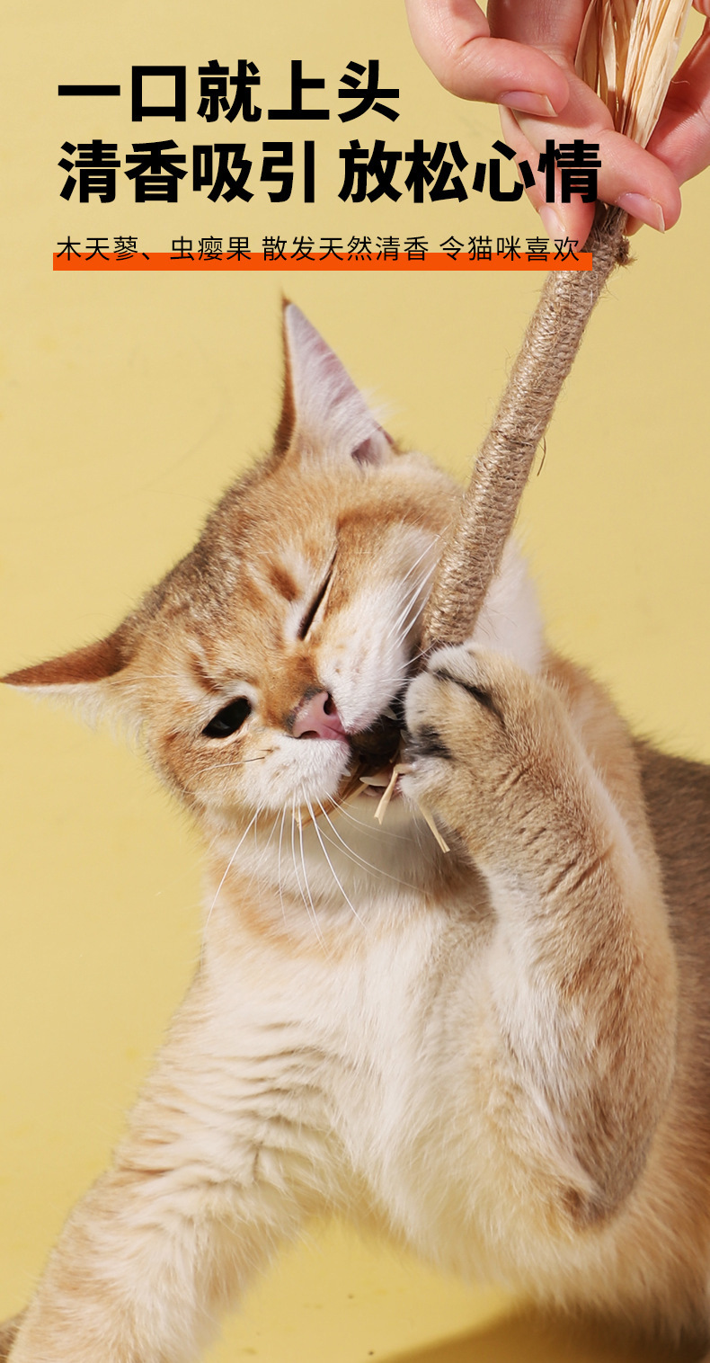 Gato feliz palo mu Tianmiao rafia gato juguete dientes de molienda palo divertido gato palo gato menta gato auto-Hola aliviar tapada