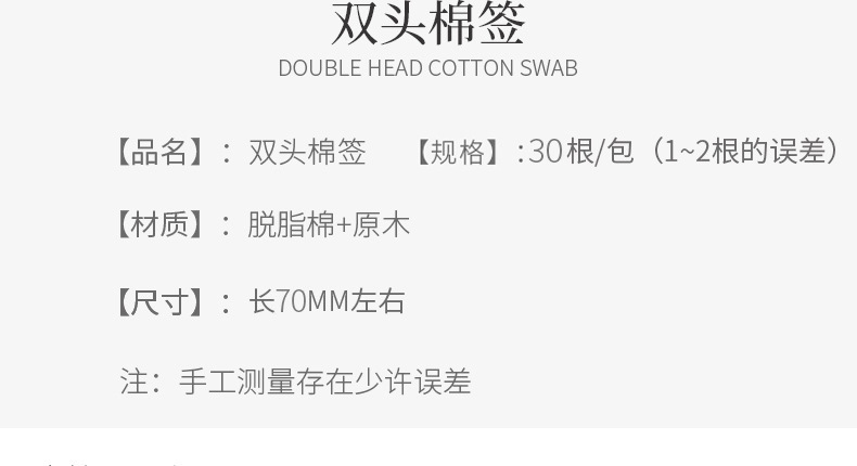 | Especificaciones | Hisopos de algodón de doble cabeza (alrededor de 25-30 Unids/Pack),Hisopos de algodón de doble cabeza (alrededor de 95-100 unids/bolsa) |