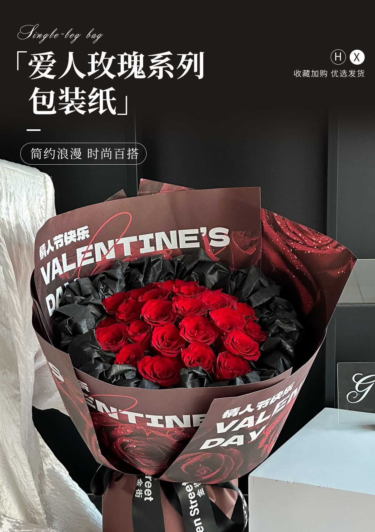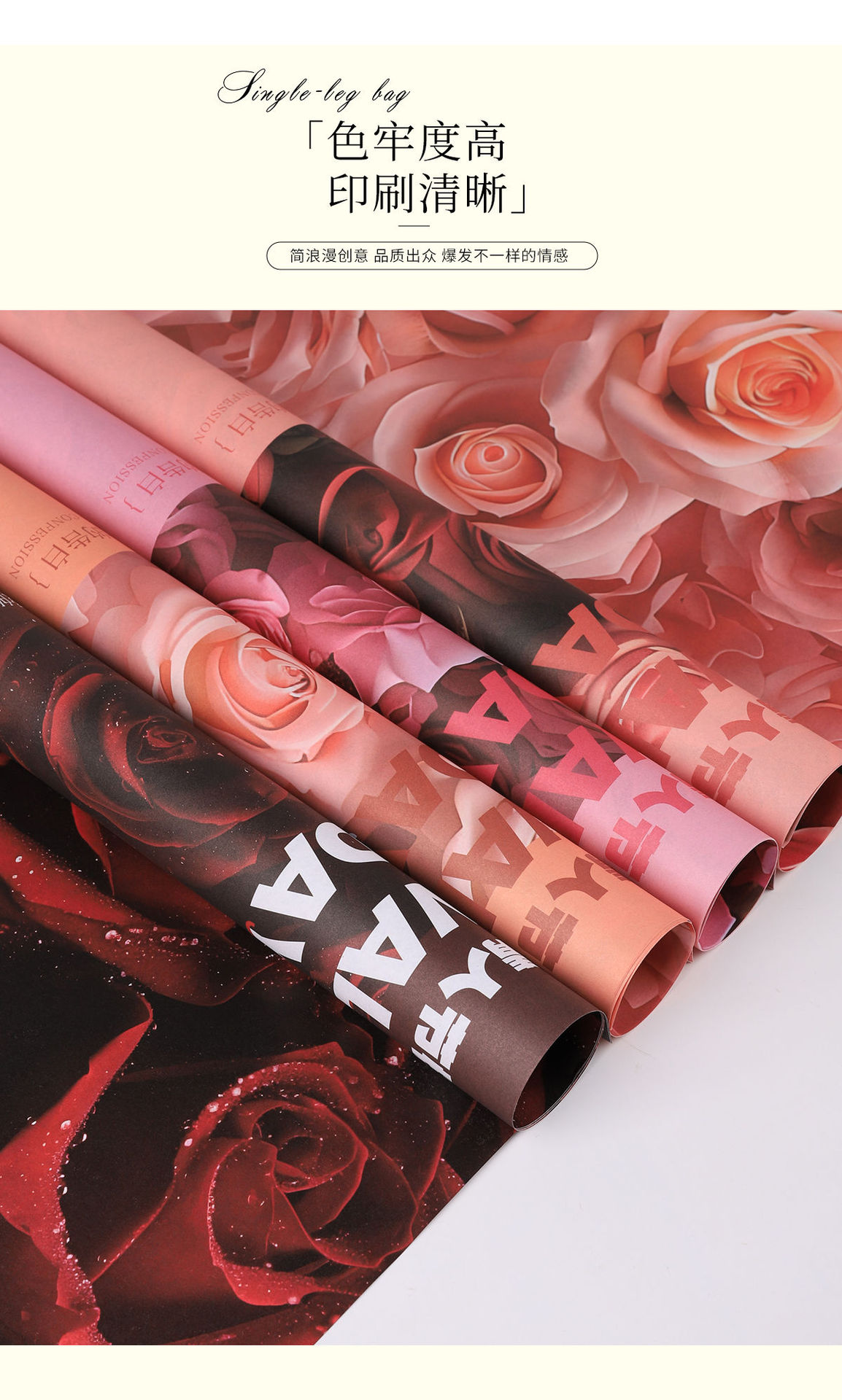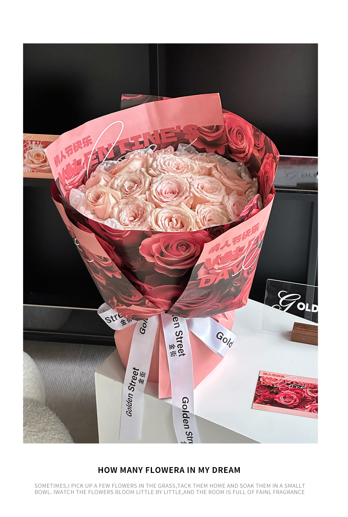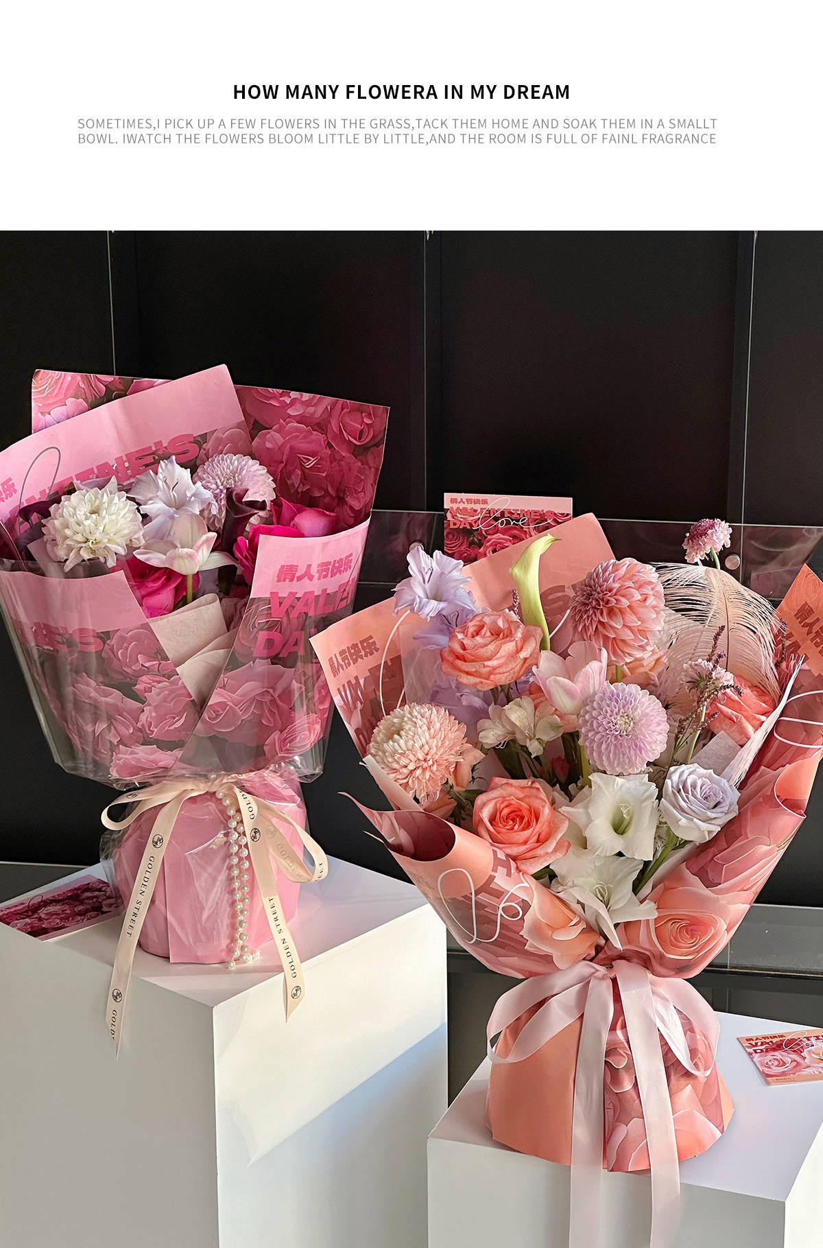Amantes de la serie de flores en papel de embalaje de rosas en línea de alto nivel sensación de ramo romántico floral envoltura floral material florista al por mayor