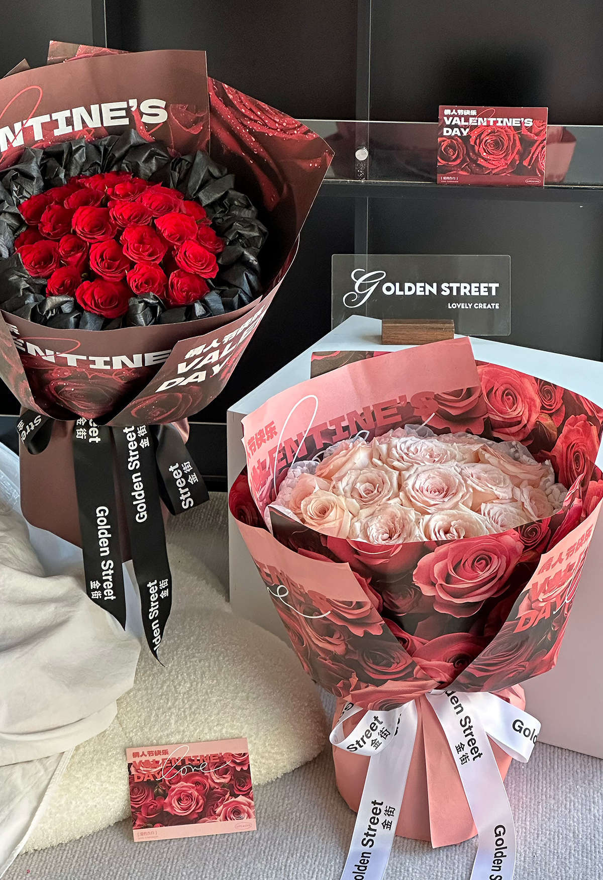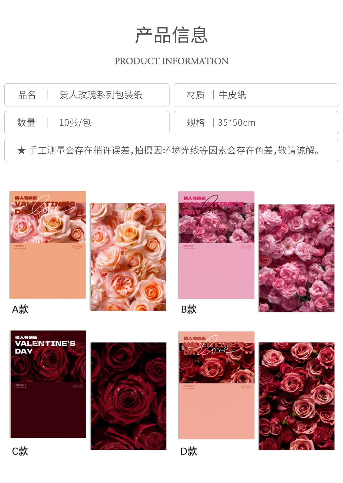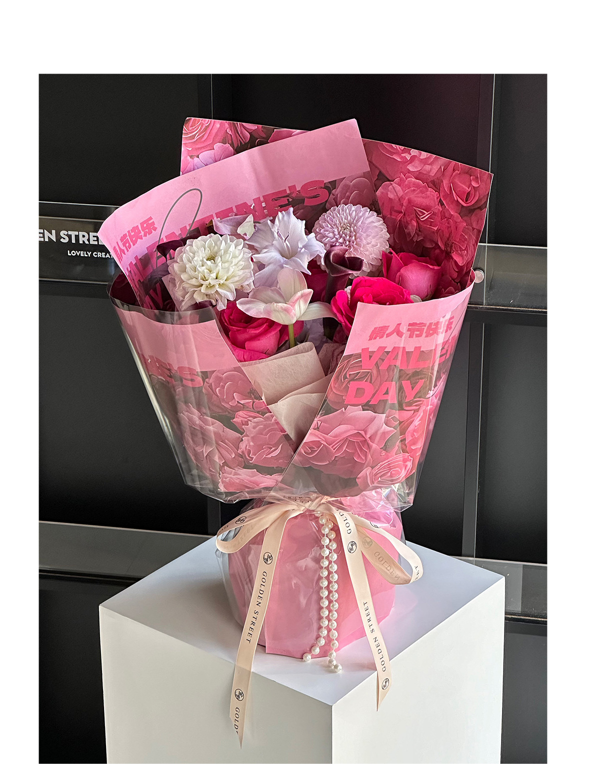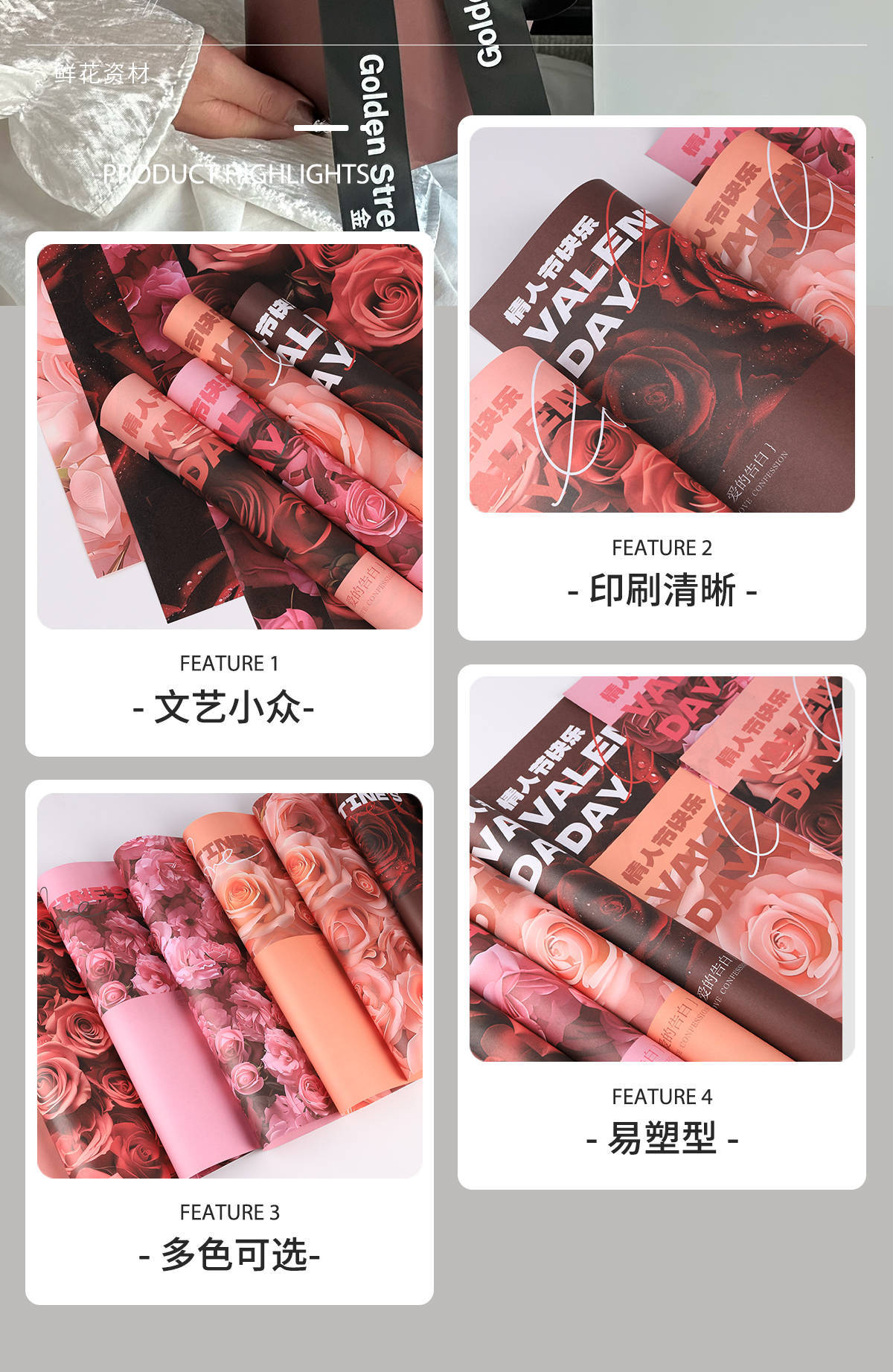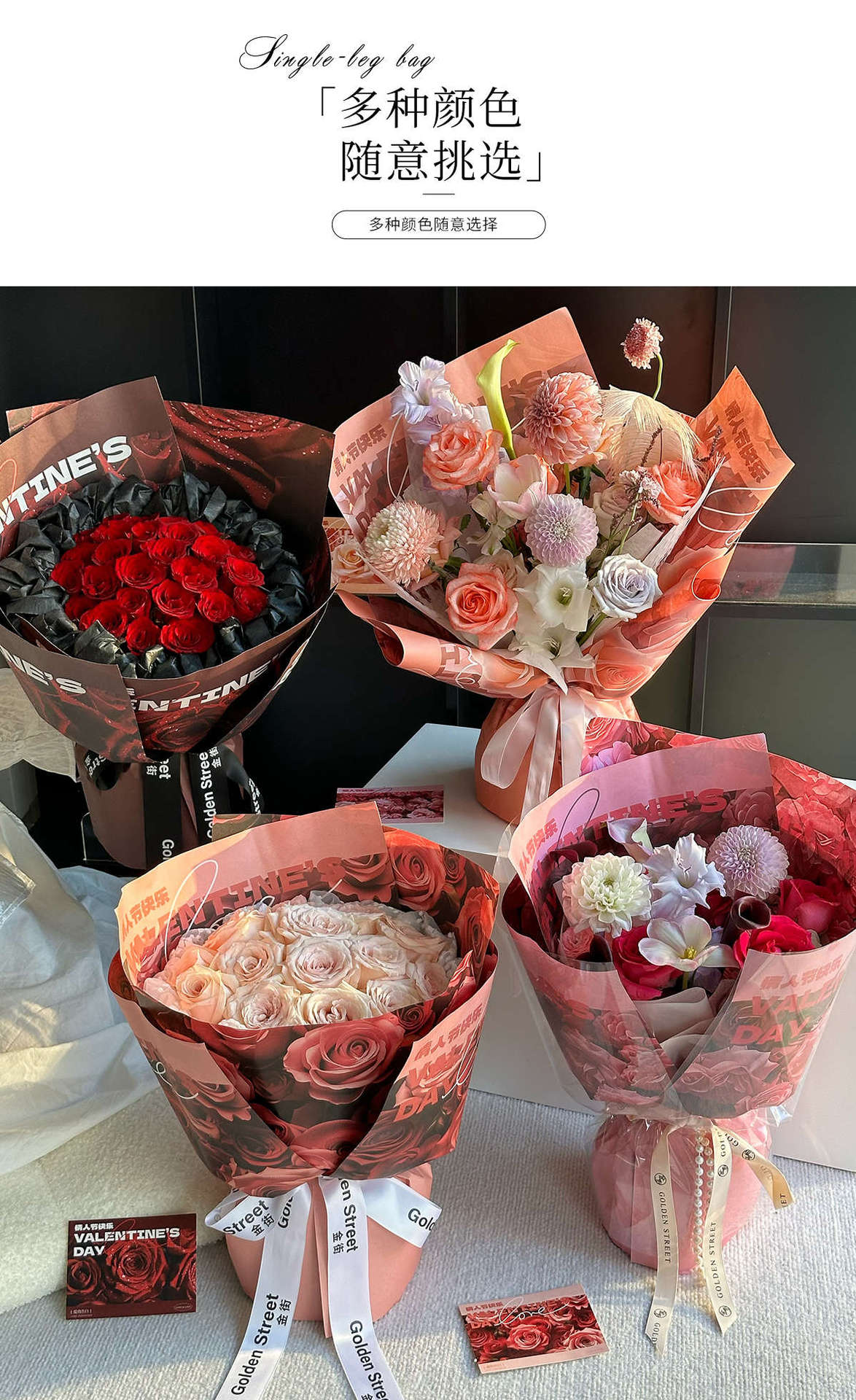 Amantes de la serie de flores en papel de embalaje de rosas en línea de alto nivel sensación de ramo romántico floral envoltura floral material florista al por mayor