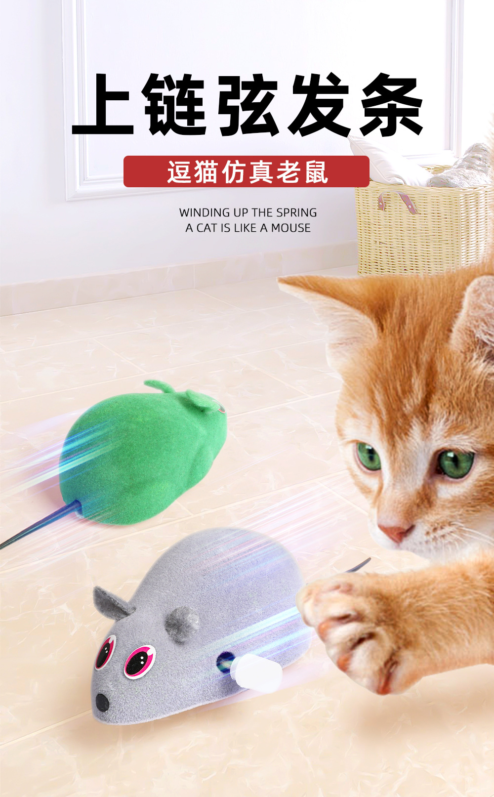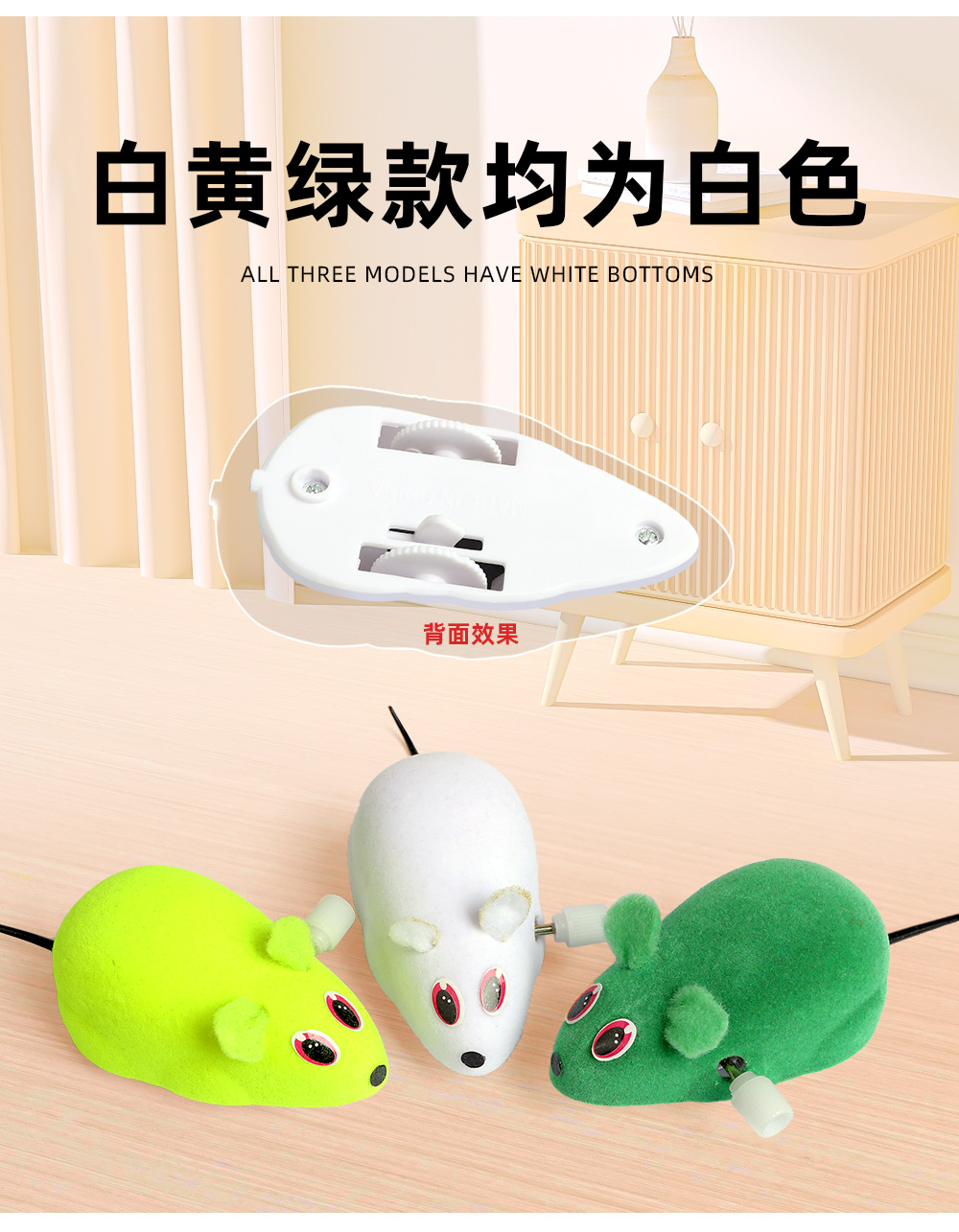 Gato juguete de peluche simulación de plástico ratón de cadena de rememente flojo gatito auto-hi alivio con cola de plumas