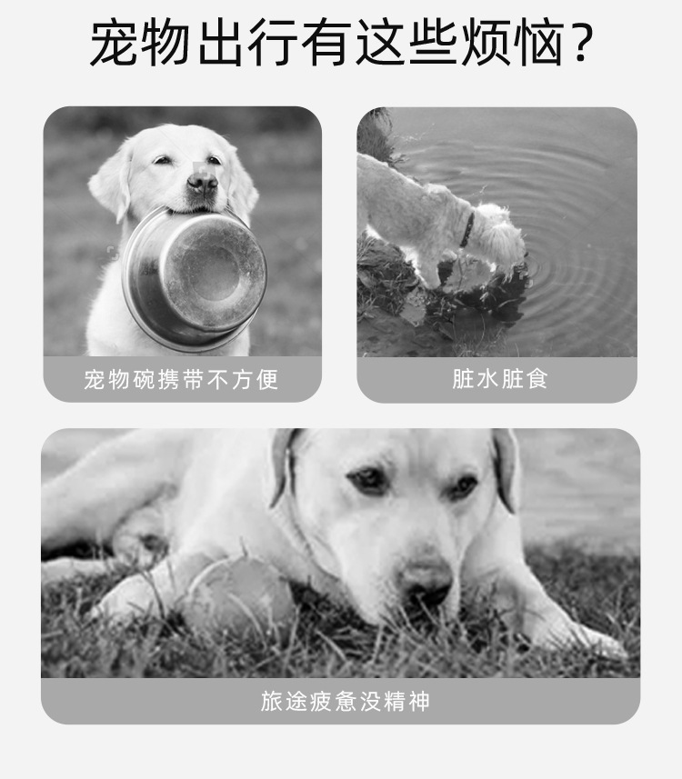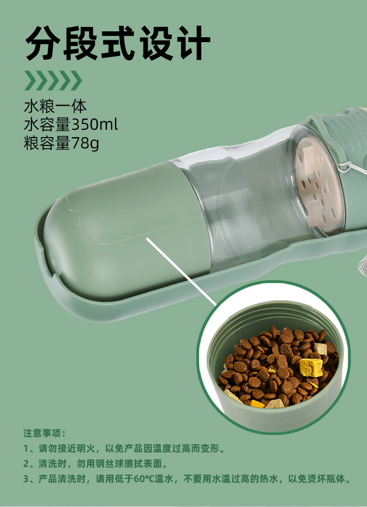 Nuevos utensilios para comer al aire libre para mascotas, vasos para beber para perros portátiles plegables, dispensador de agua integrado con comida para perros segmentada