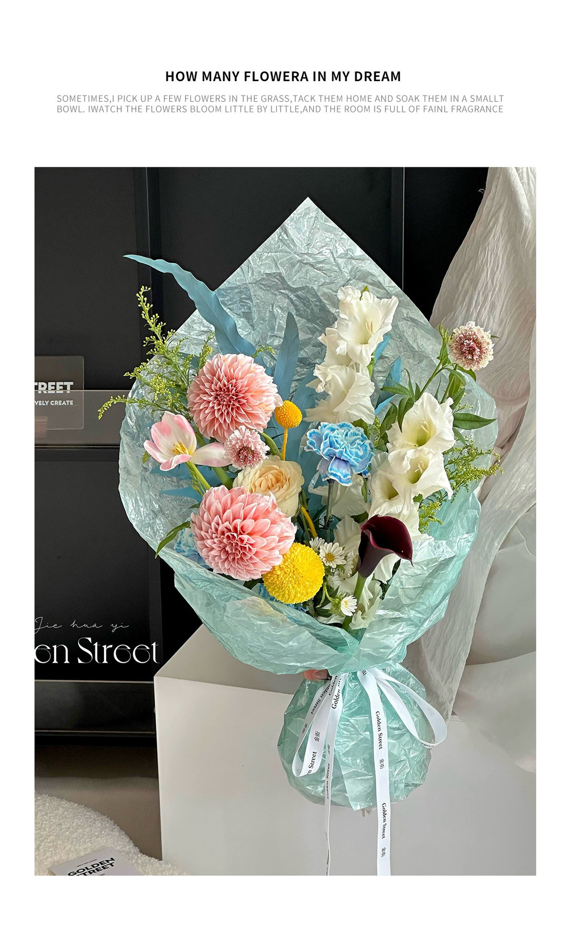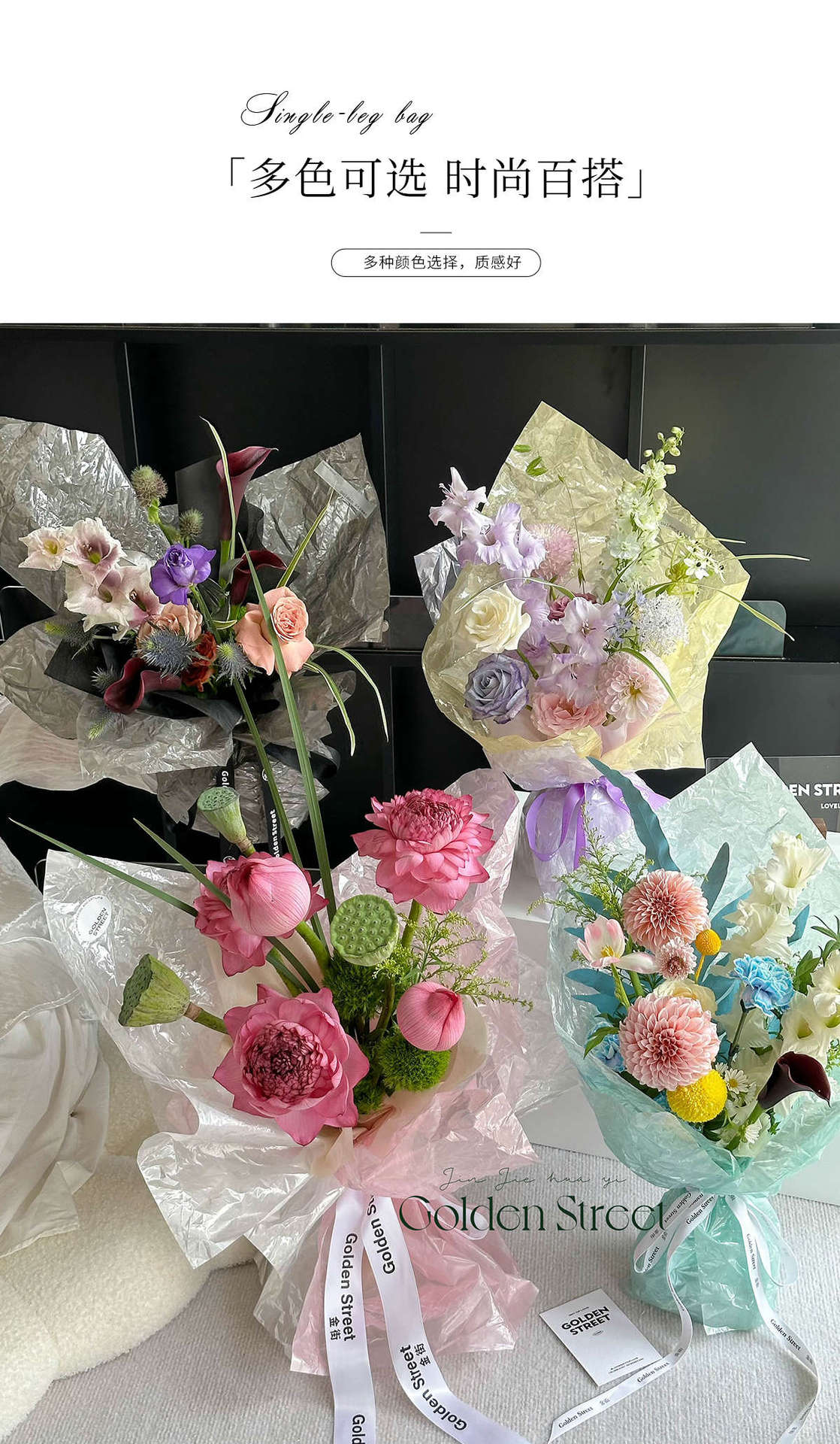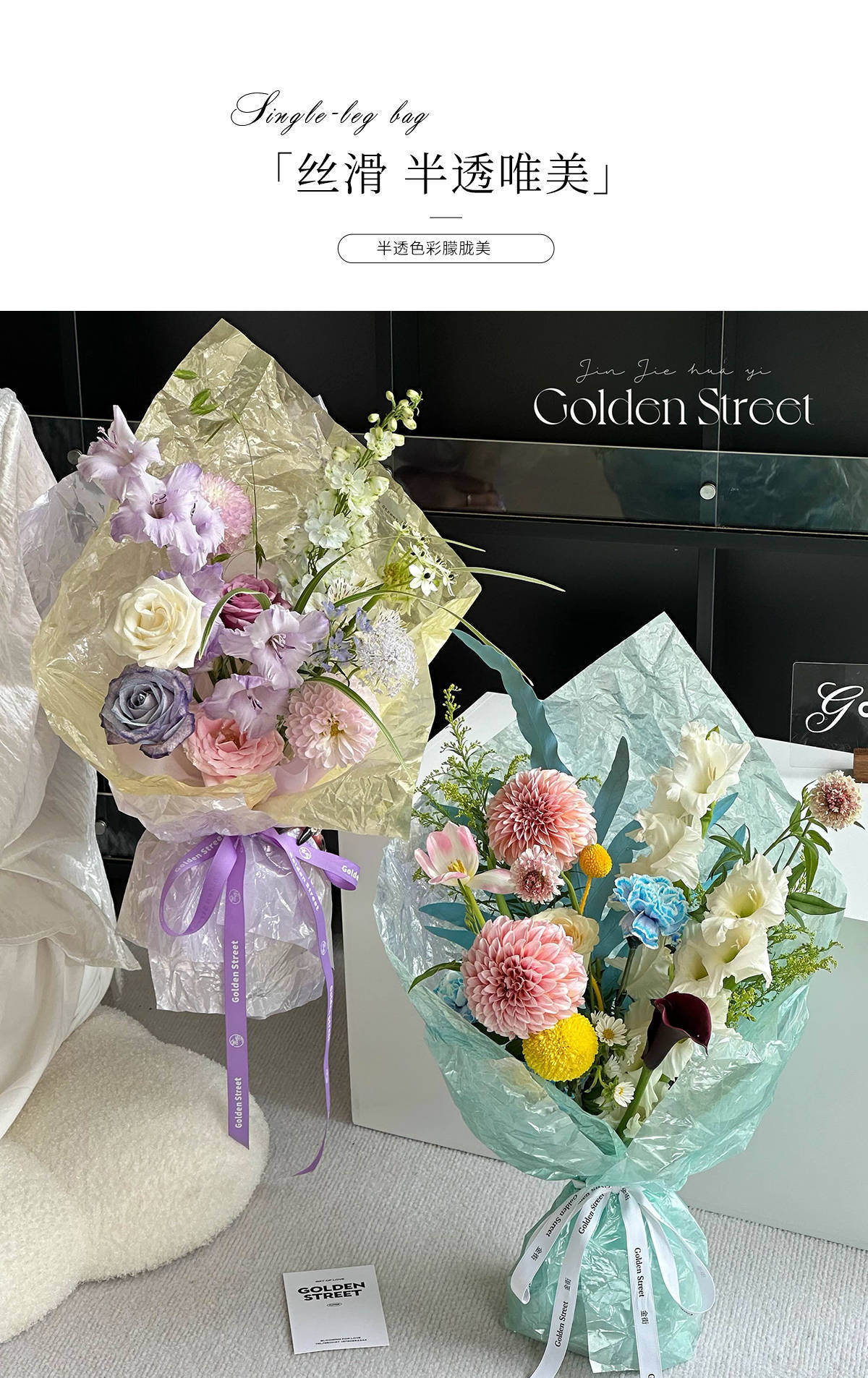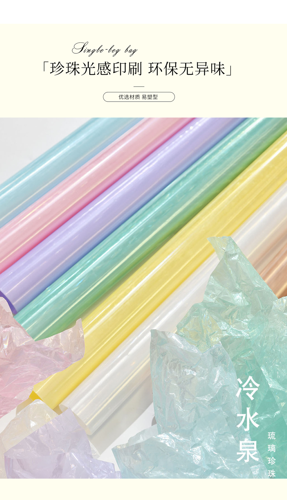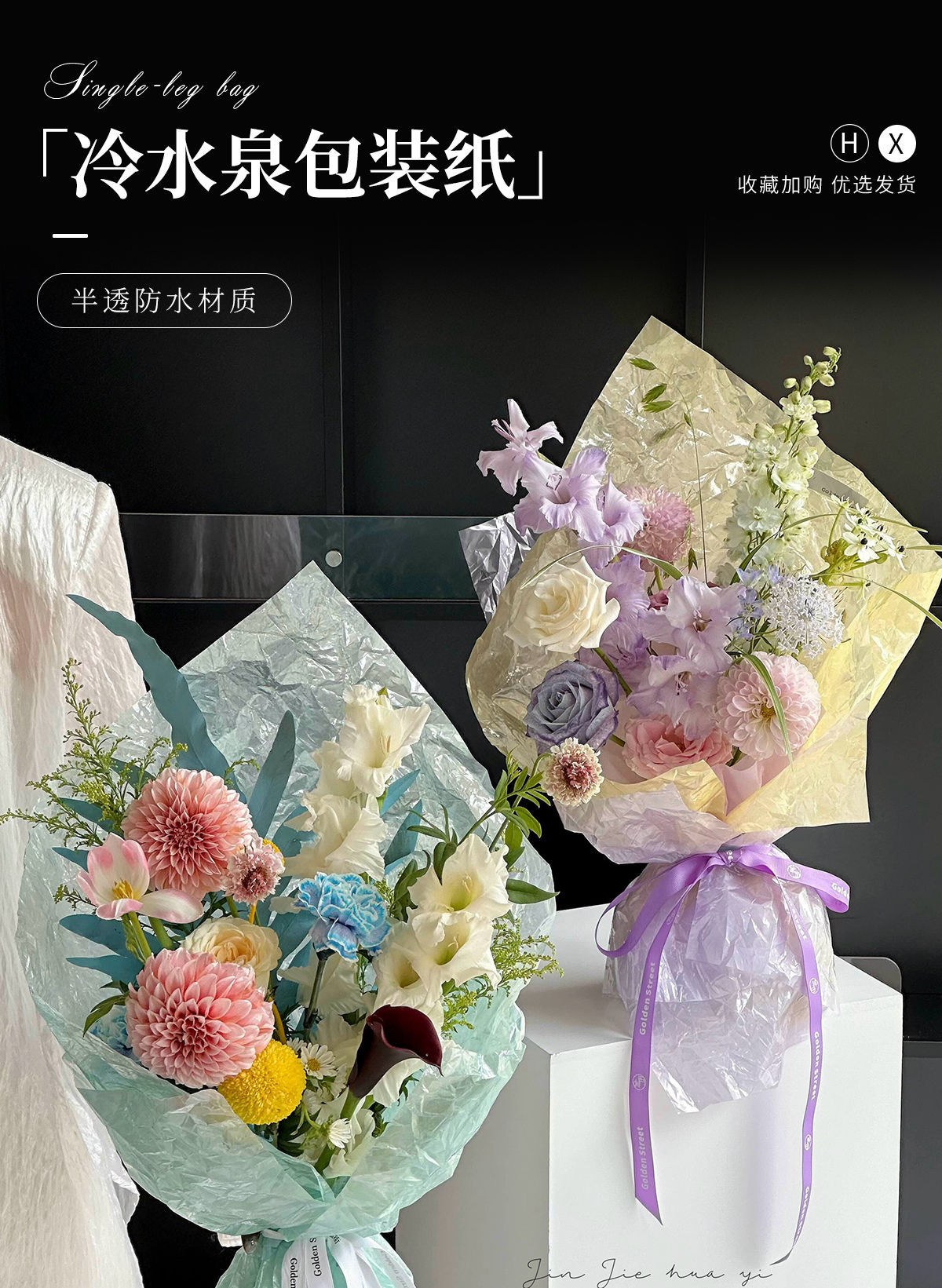 Fuente de agua fría papel de embalaje de flores engrosado impermeable película de vidrio perlada de alto nivel de sensación de ramo de flores material de florista