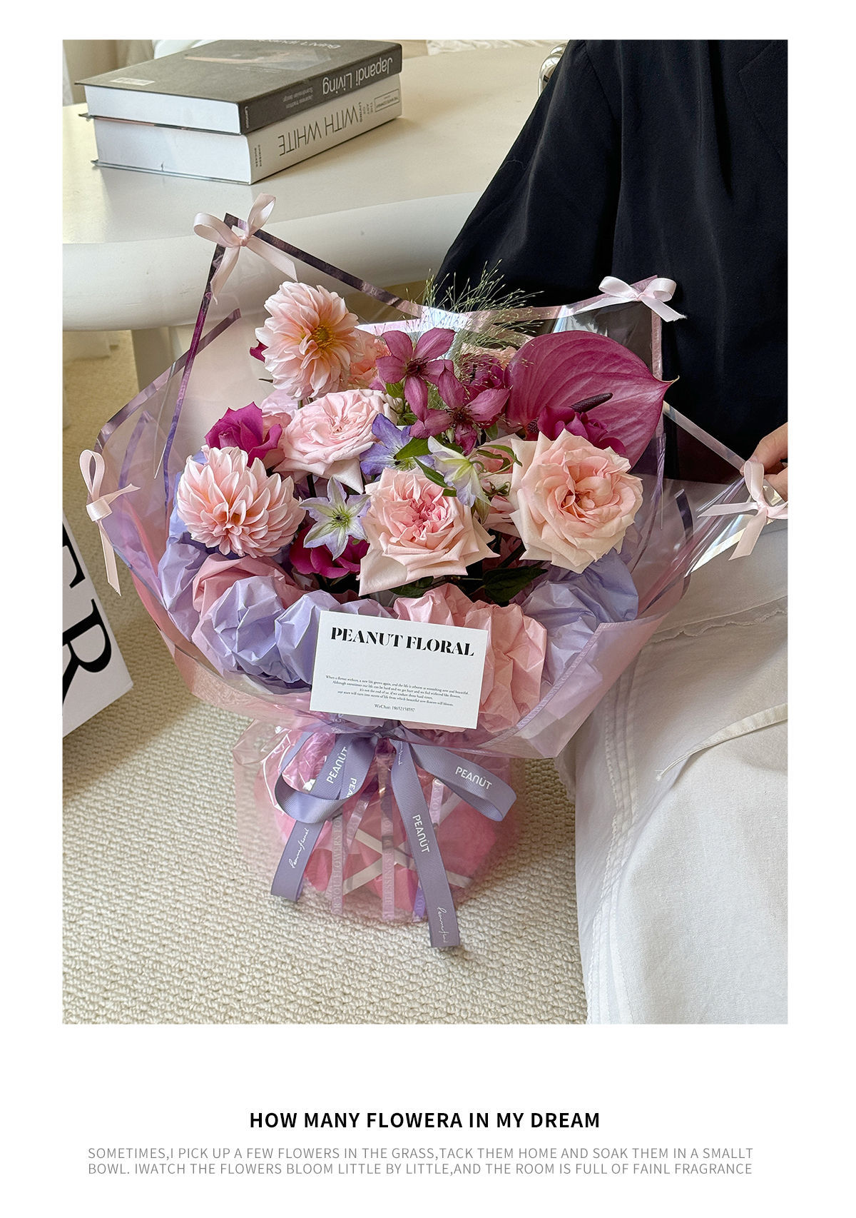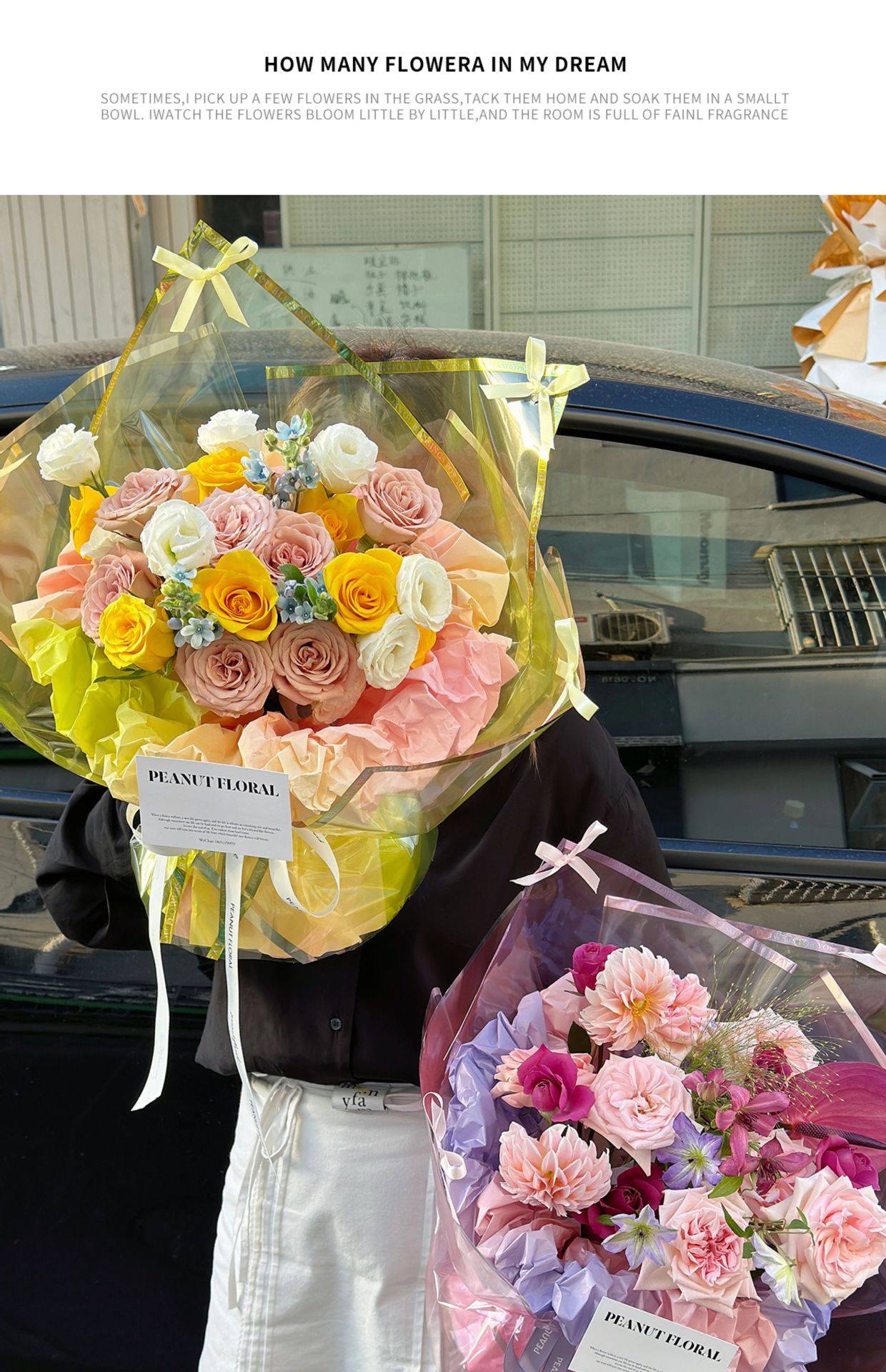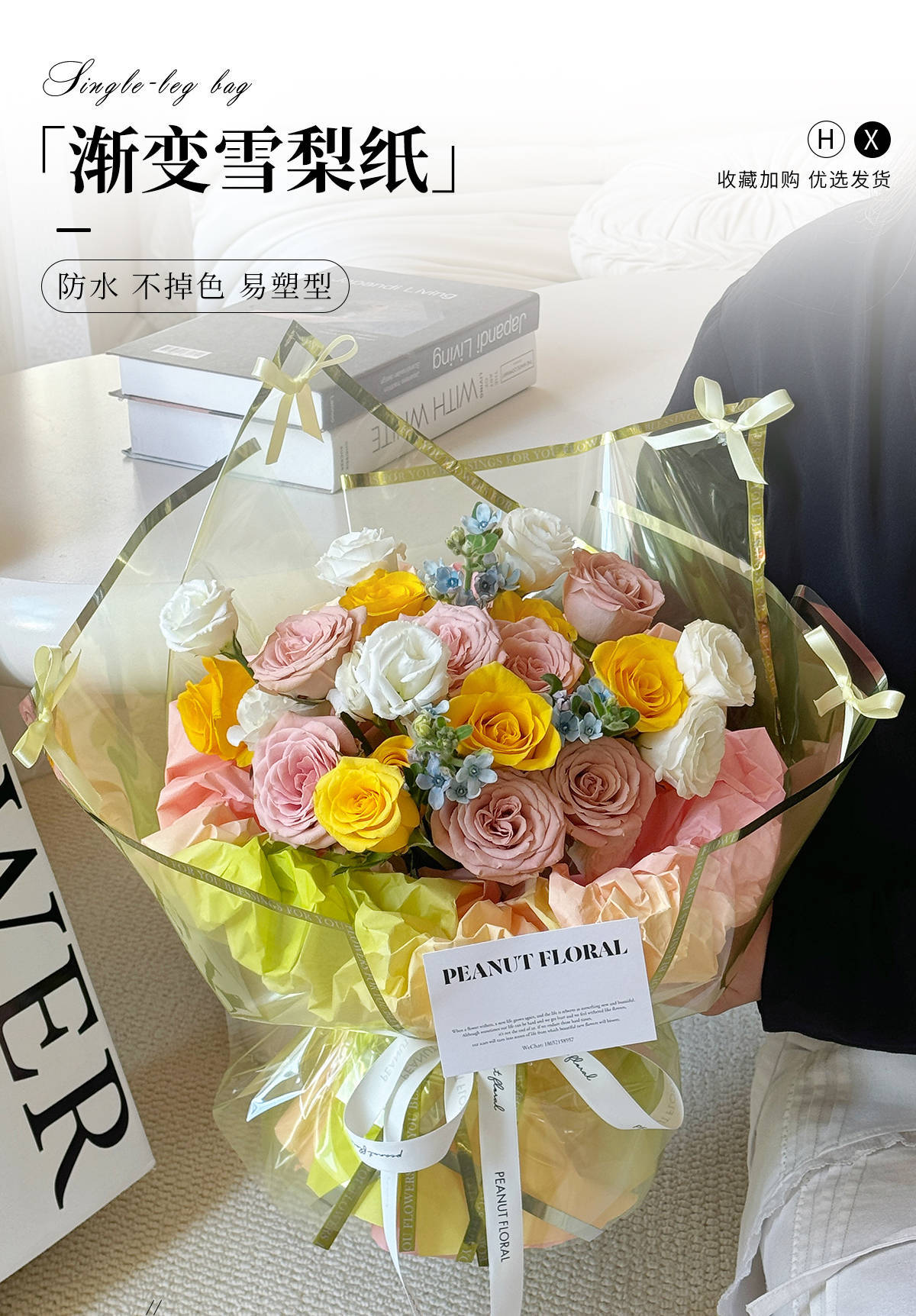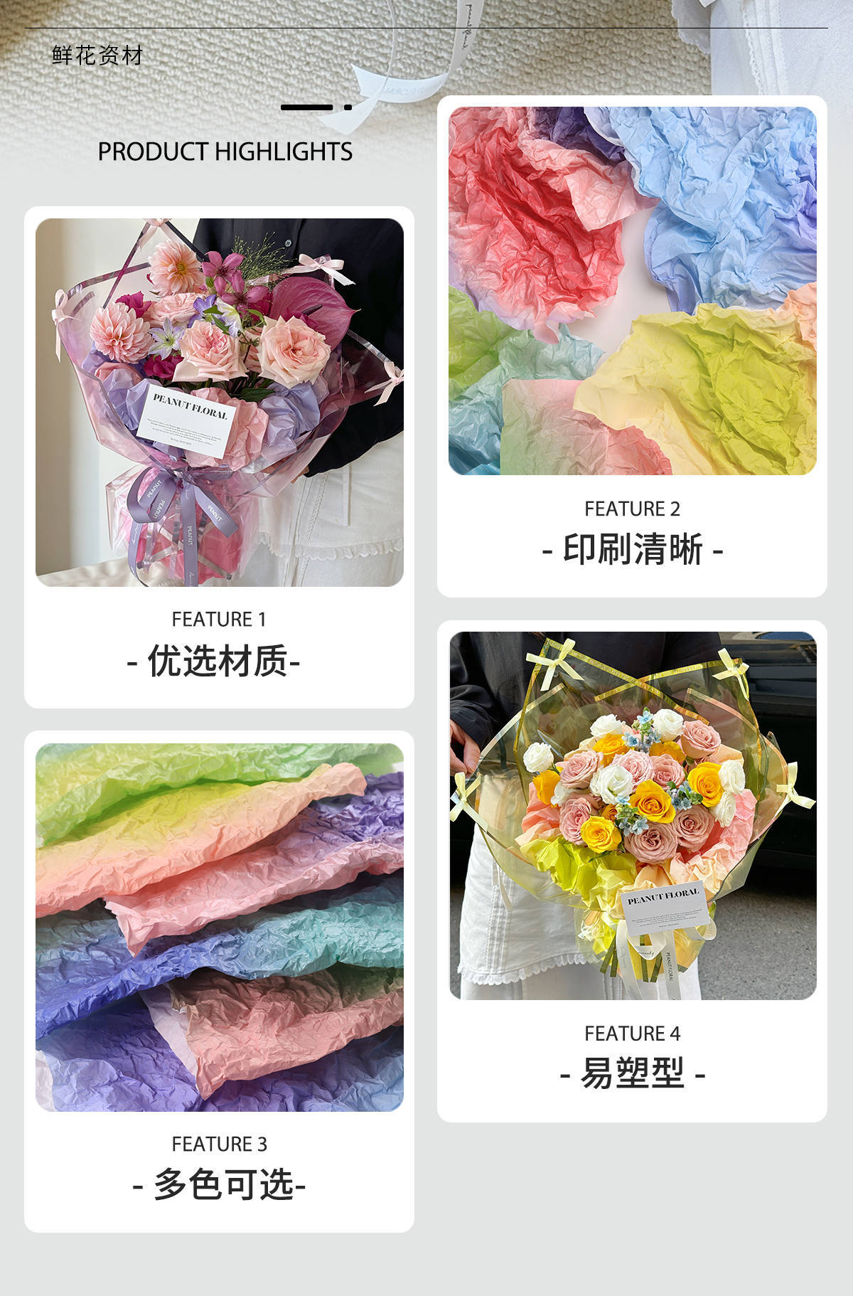 Papel de embalaje de flores de Sydney graduado, papel de embalaje de flores de mano, revestimiento de papel de arrugas de regalo de ensueño, materiales de flor