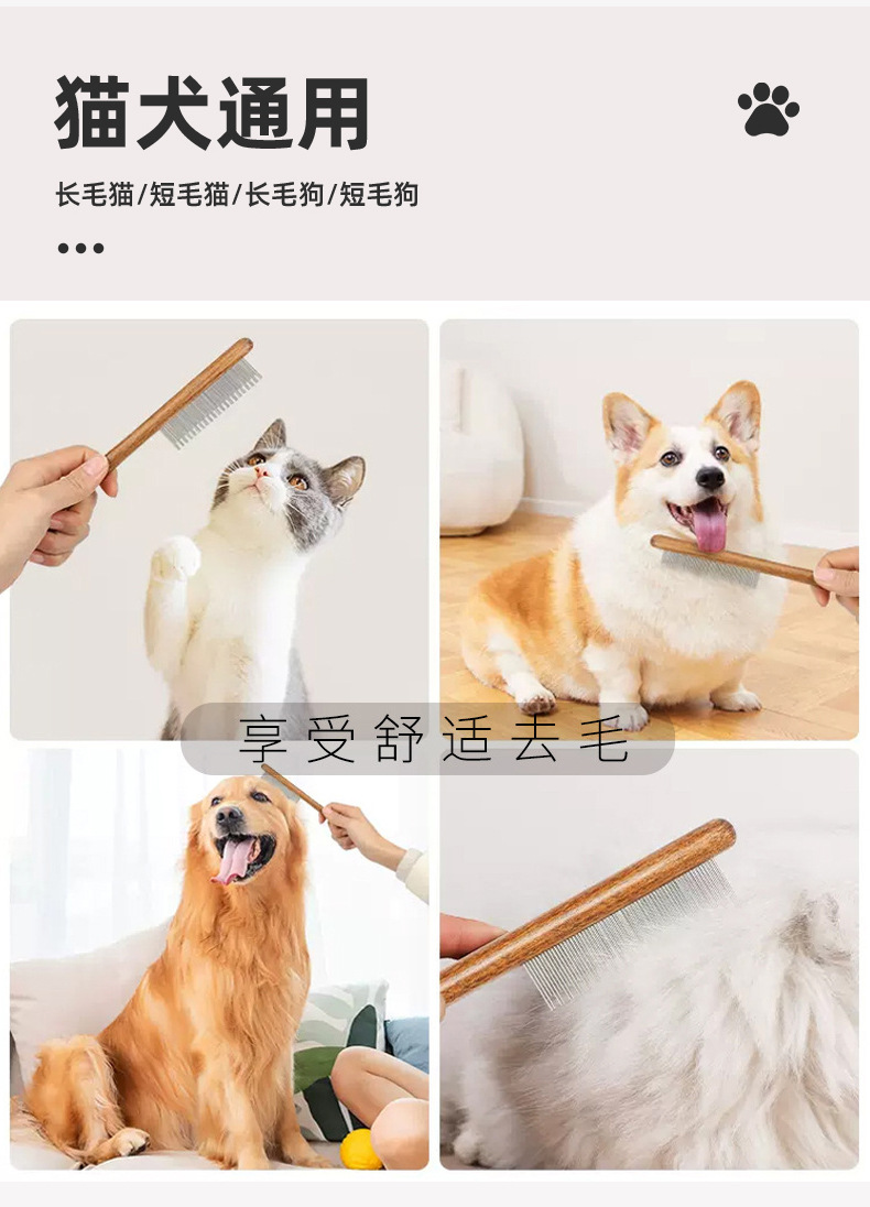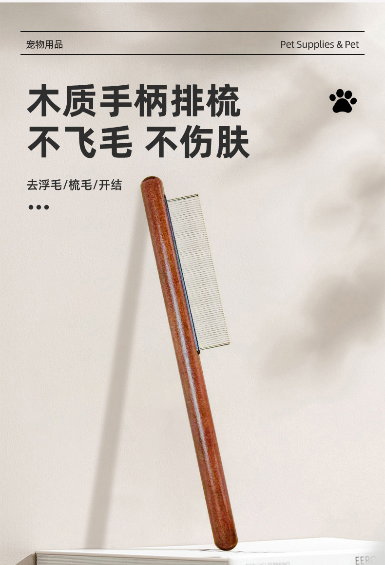 Tiktok Hot PET mango de madera peine de perro peine de gato peine de eliminación de pulgas nudo abierto pelo flotante belleza suministros para mascotas