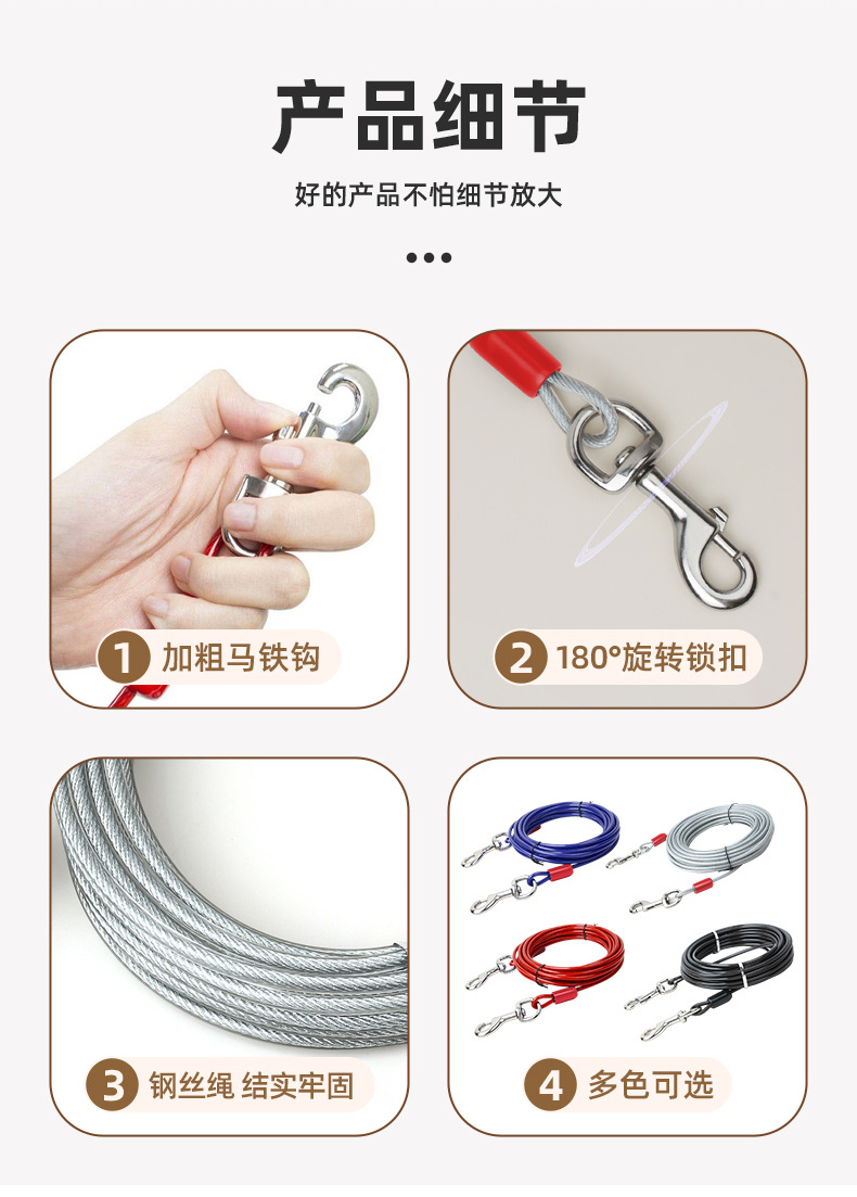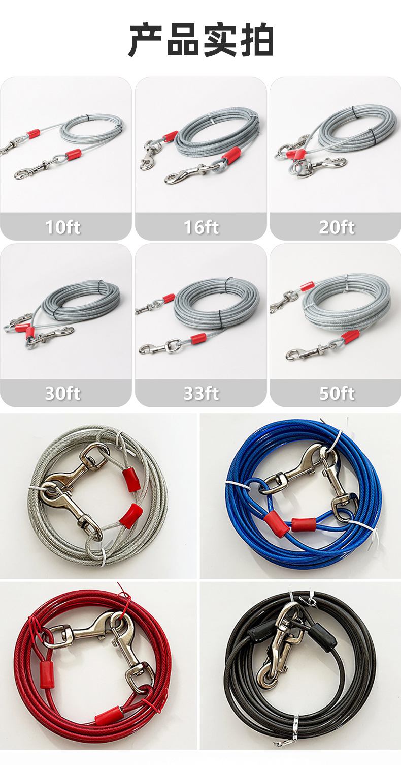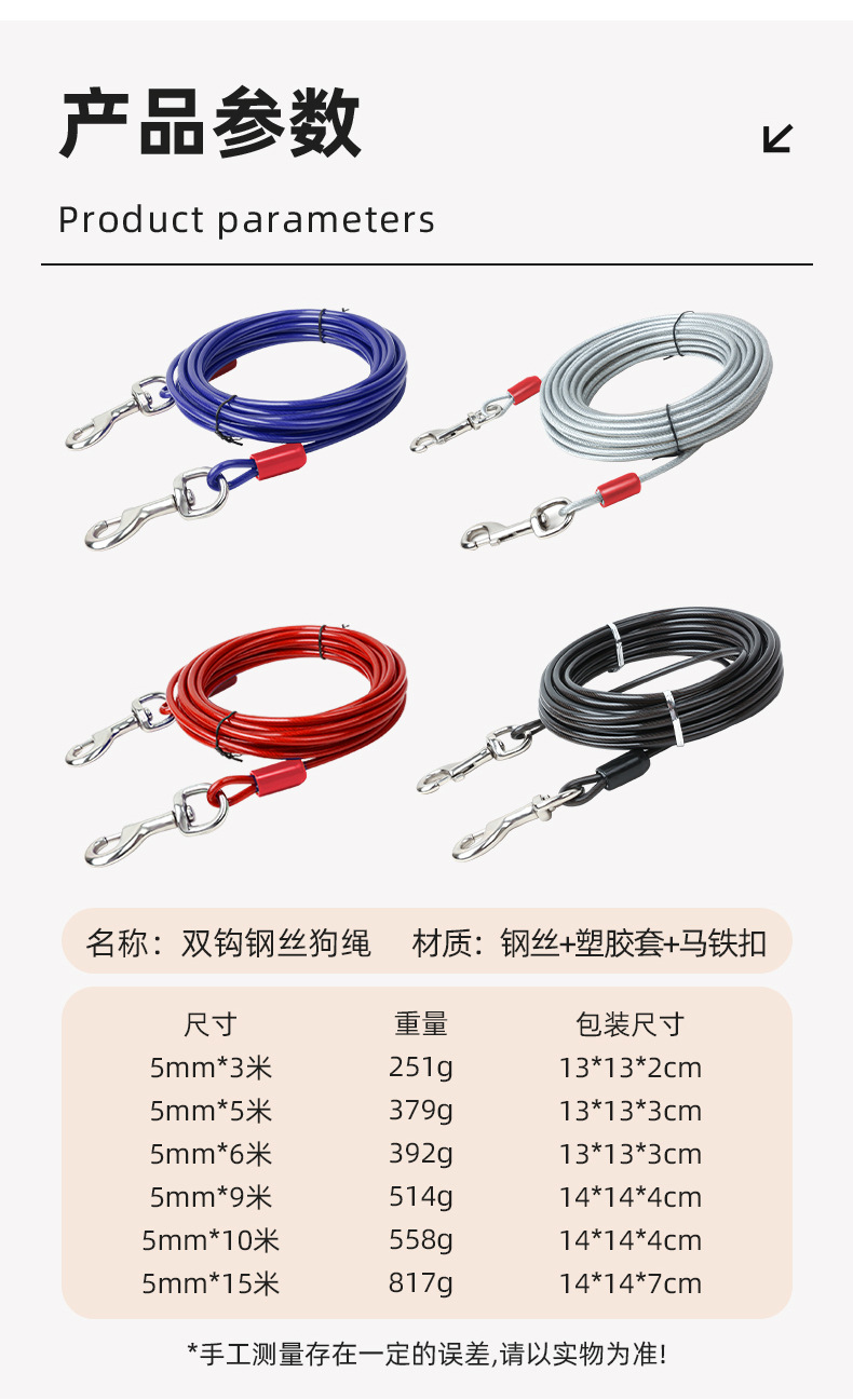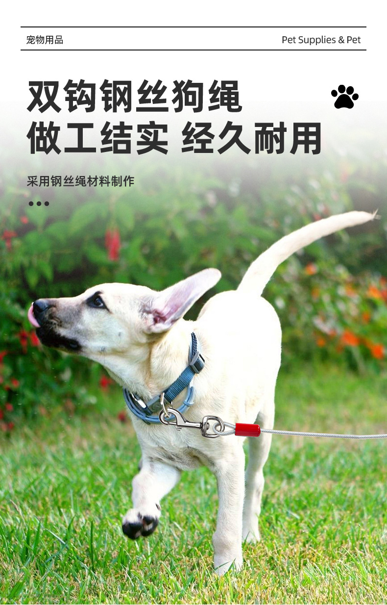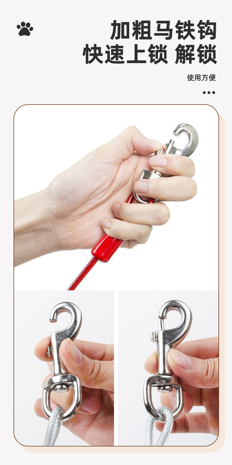 Amazon estilo explosivo cuerda de alambre de doble gancho perno anti-mordedura cuerda para perro tracción para mascotas al aire libre uno arrastre dos cadenas anti-mordedura para perros