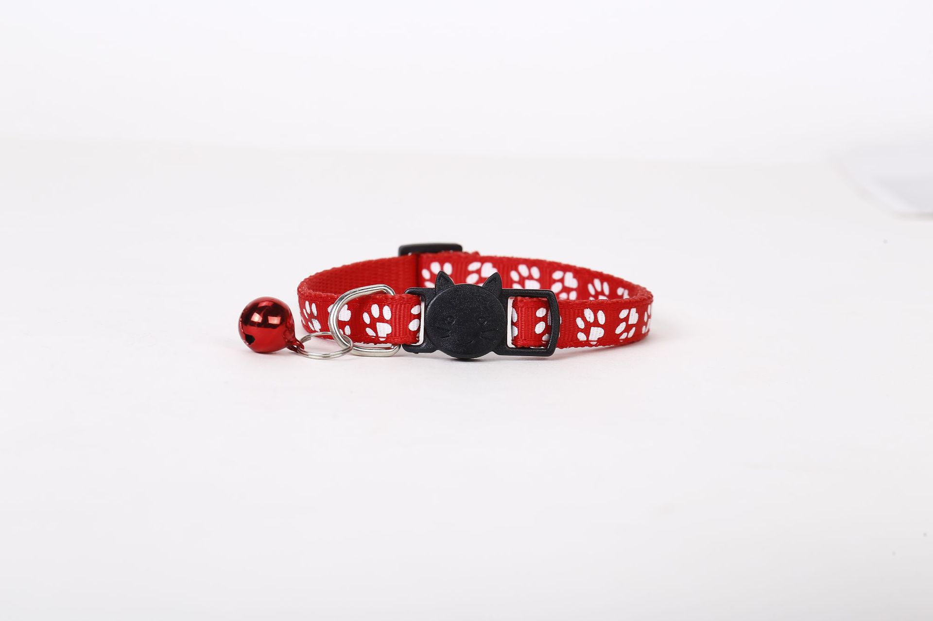 Collar para mascotas con estampado de huellas, correas, hebilla de seguridad, hebilla con cabeza de gato, campana, material de nailon para gatos