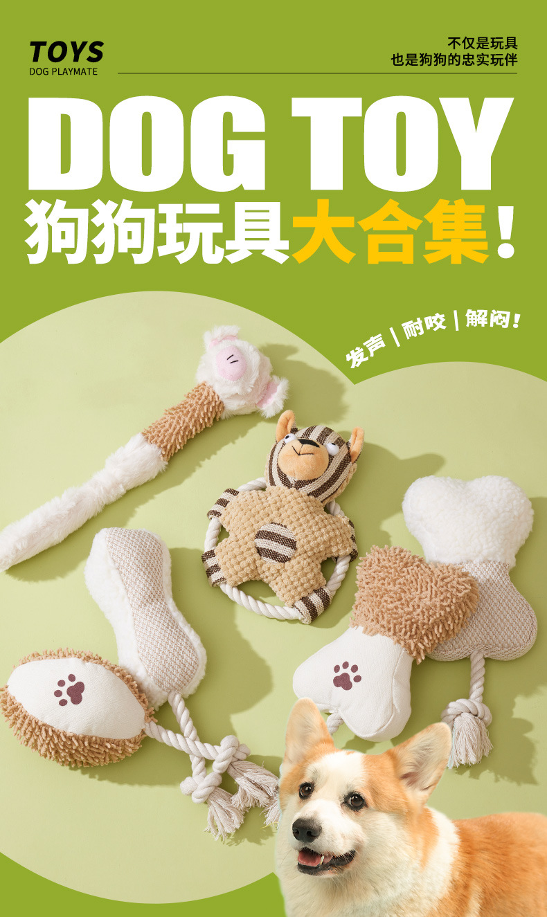 Pet Sound juguete resistente al desgaste resistente a la rotura perro resistente a la mordedura juguete molar Limpieza de dientes de dibujos animados animales suministros para mascotas