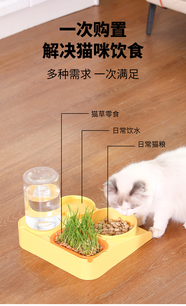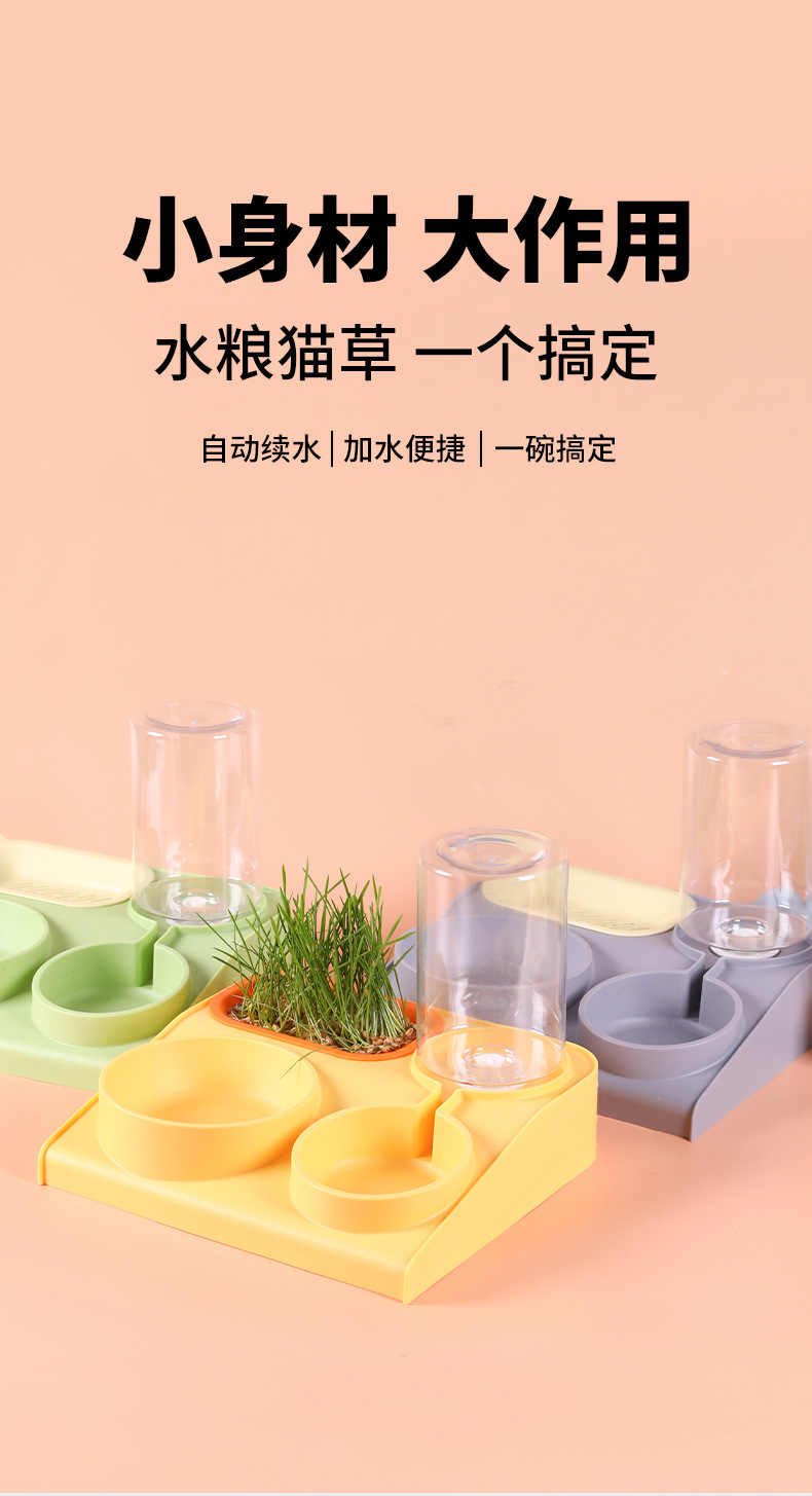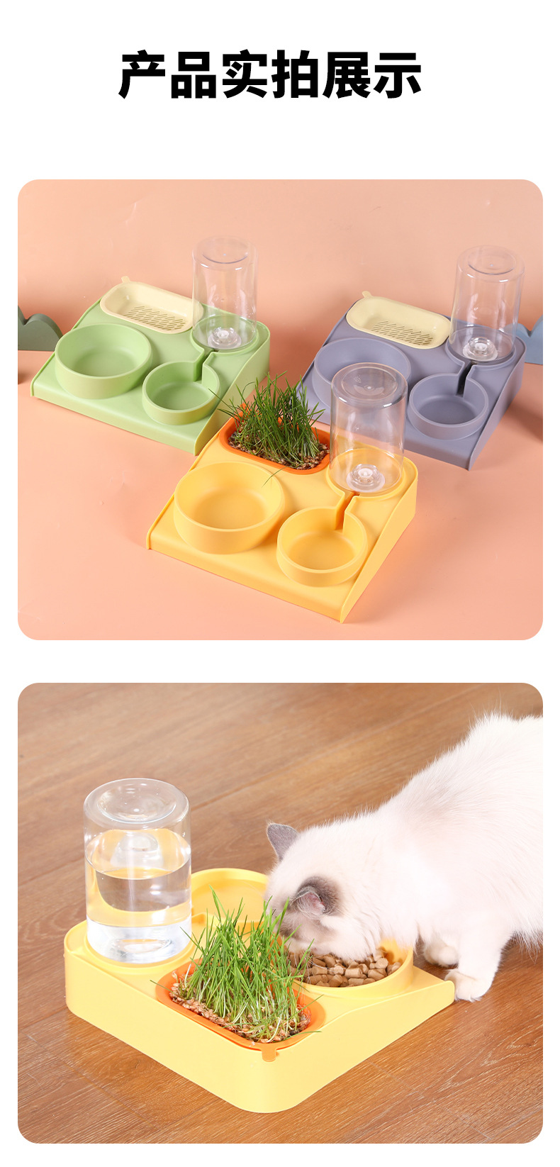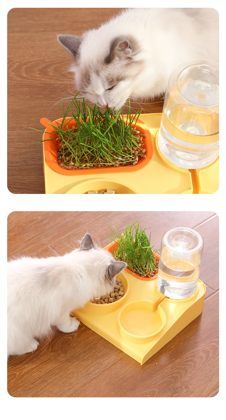 Nuevo tazón para mascotas, caja de hierba para gatos, tazón para gatos, tazón de almacenamiento automático de agua, tazón para mascotas 2 en 1, tazón de alimentación automática