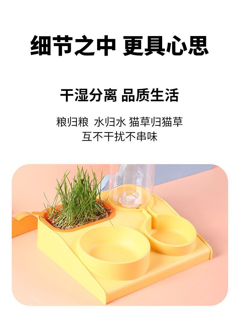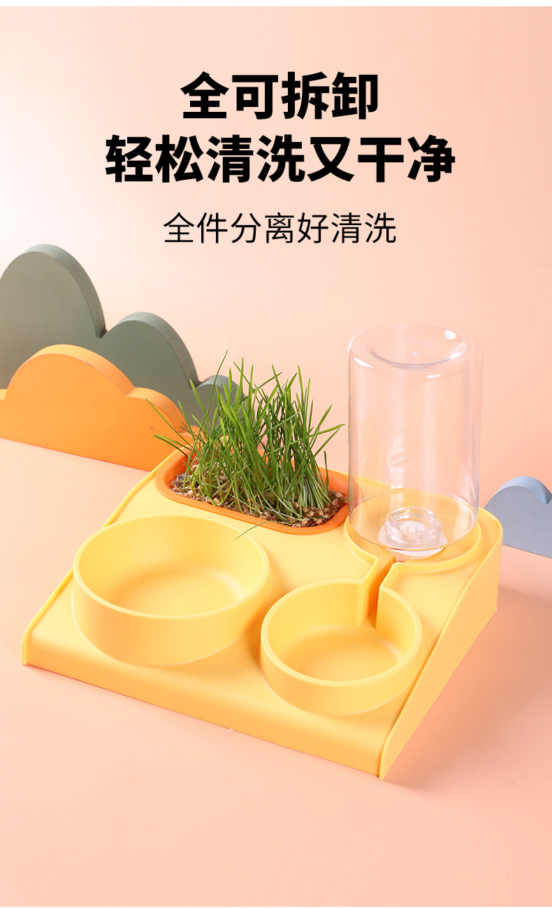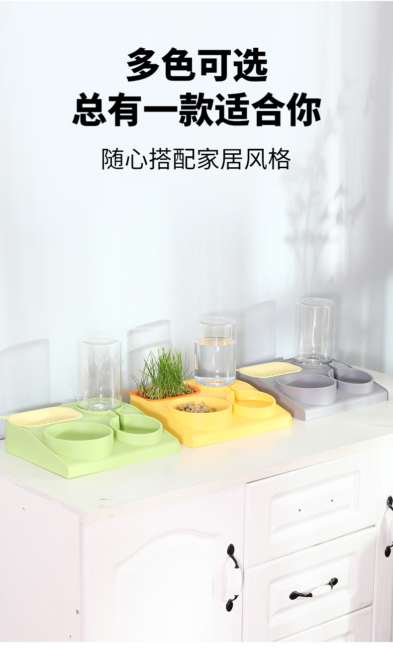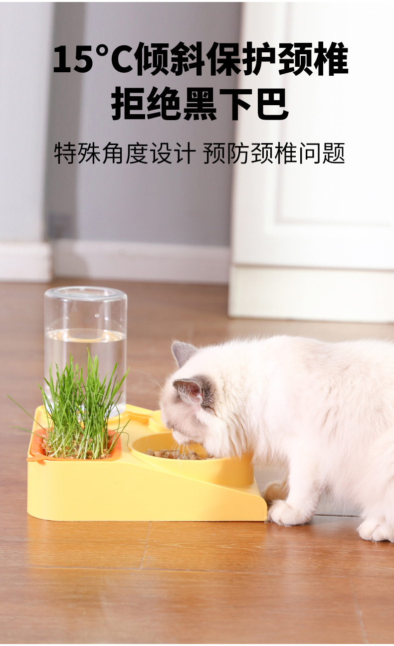 Nuevo tazón para mascotas, caja de hierba para gatos, tazón para gatos, tazón de almacenamiento automático de agua, tazón para mascotas 2 en 1, tazón de alimentación automática