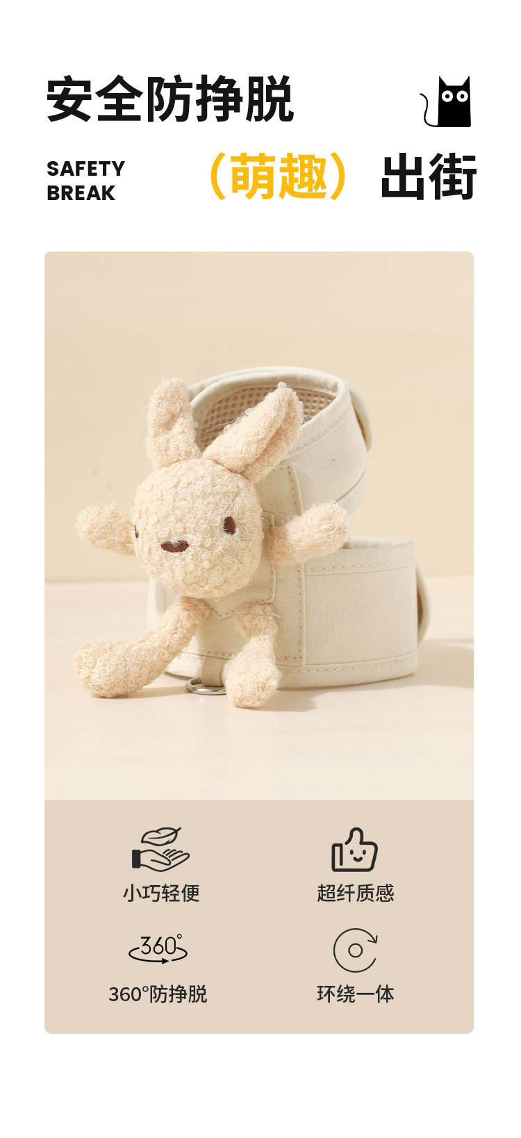 Pet conejo conjunto de pecho y espalda para cachorros, cuerda de tracción para gatos pequeños, artículos de correa de trabajo convenientes para evitar la liberación