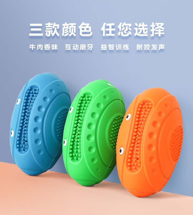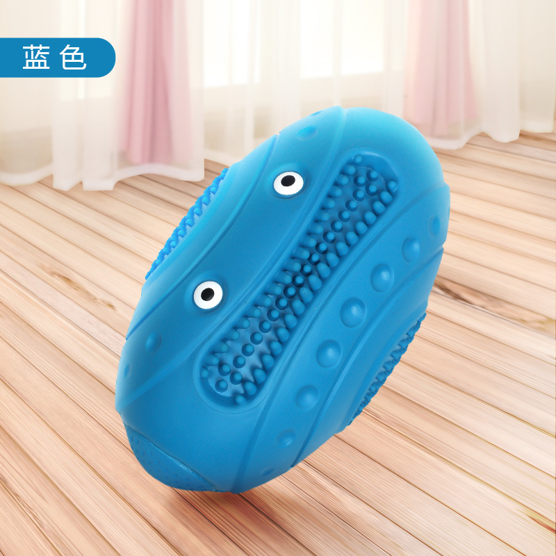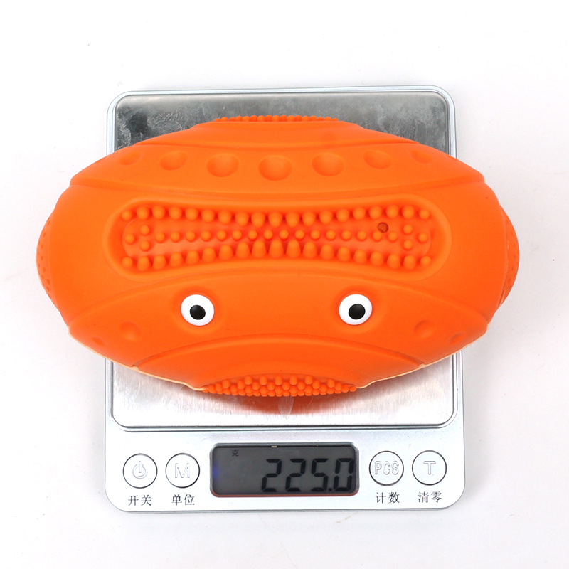 Pelota de rugby de goma popular transfronteriza, linda y novedosa, resistente a mordeduras, para masticar, que emite sonidos, dispositivo para aliviar el aburrimiento, juguete interactivo para perros al aire libre