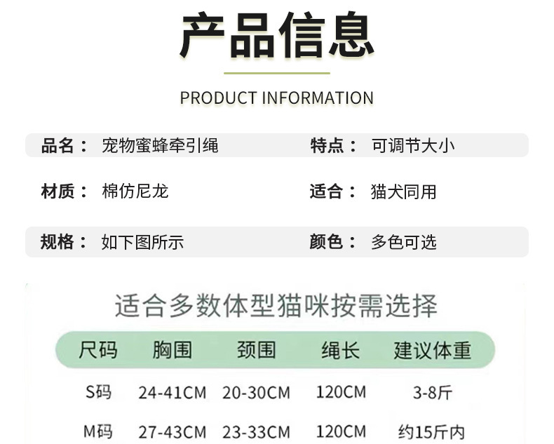 abeja de tracción correa de pecho en forma de I para mascotas de lana felina de tracción para gatos caminando correa de pecho de cuerda felina fábrica