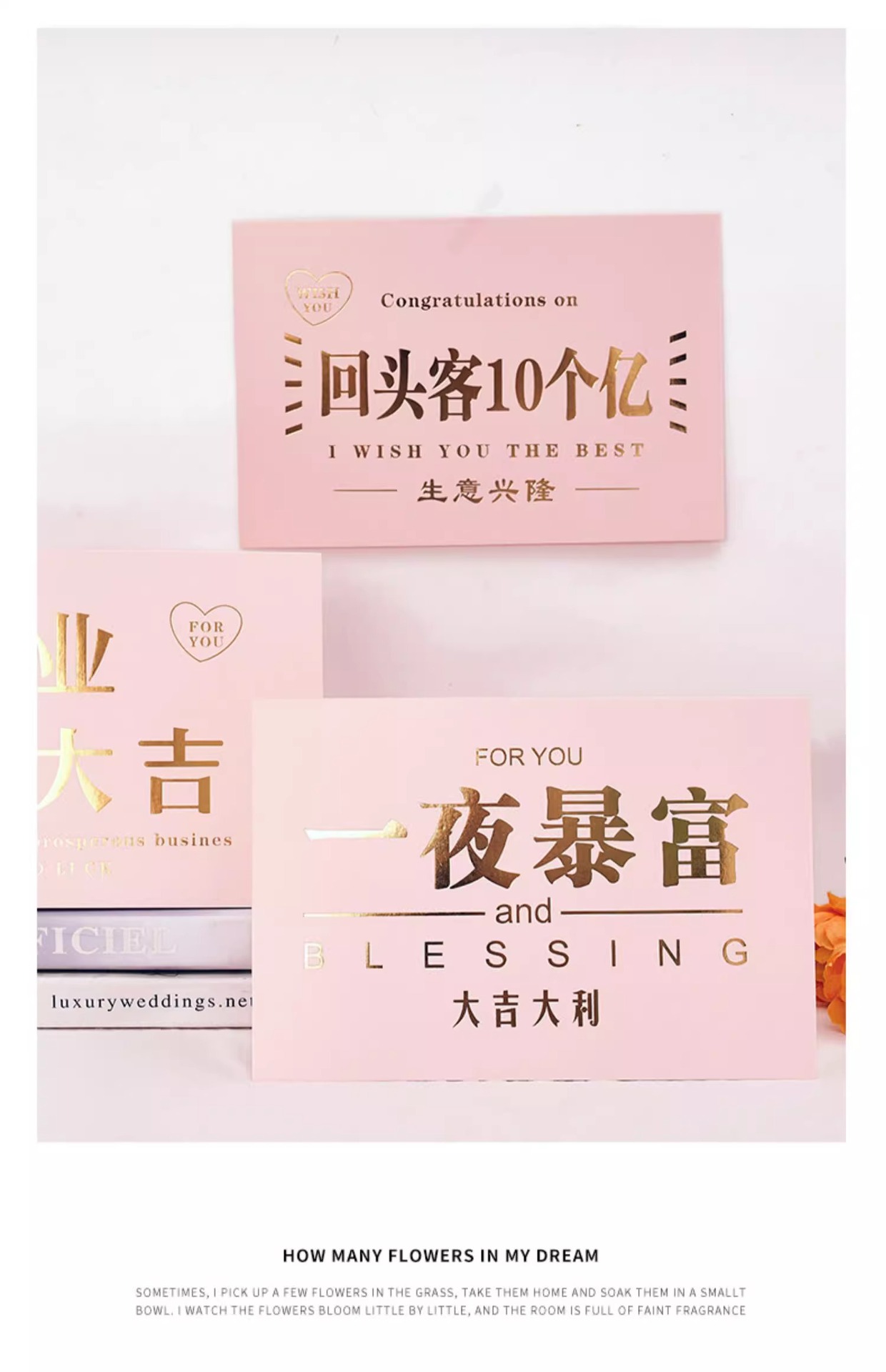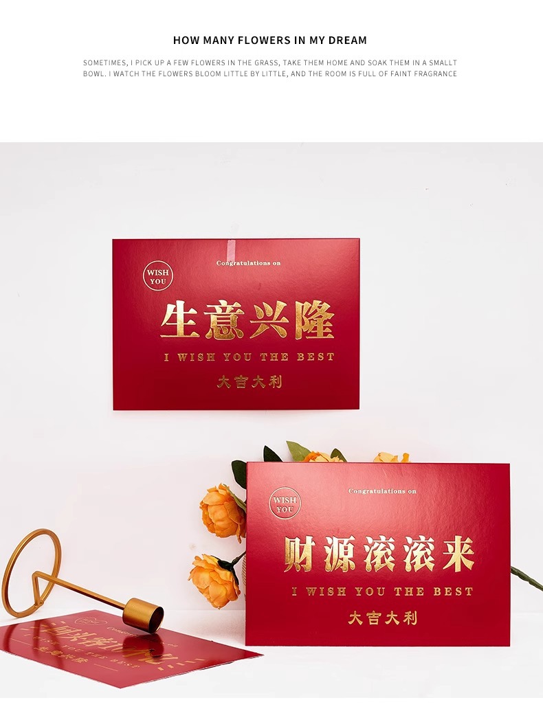 Personalizada tarjeta de apertura de tarjetas de impresión de tarjetas de felicitación de impresión de flores de embalaje de tarjetas personalizadas