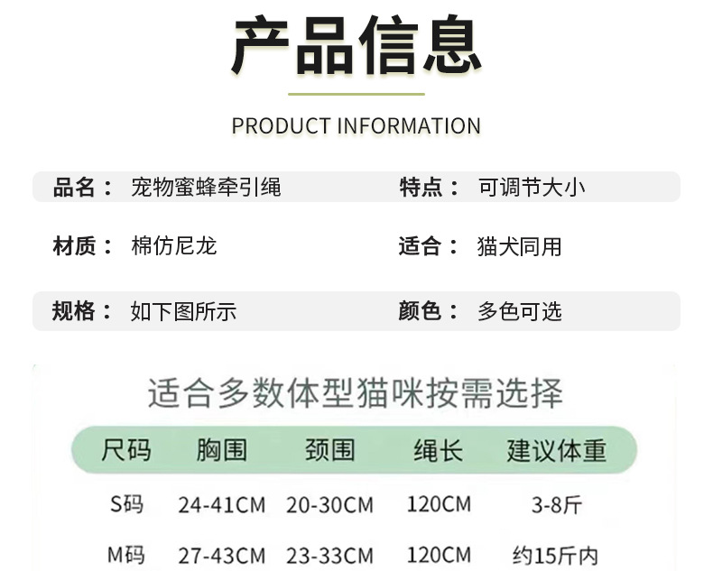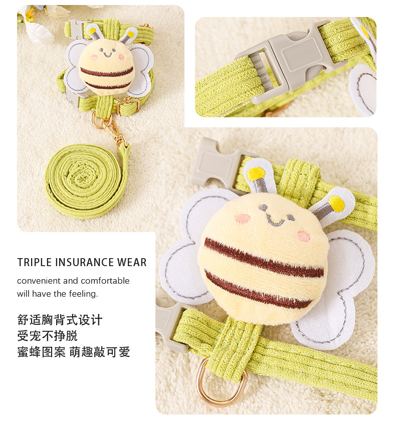 Gato abeja cuerda de tracción gato paseo conejo cadena de cuerda pequeña cinturón de pecho para perros cuerda de tracción para perros artículos de mascotas