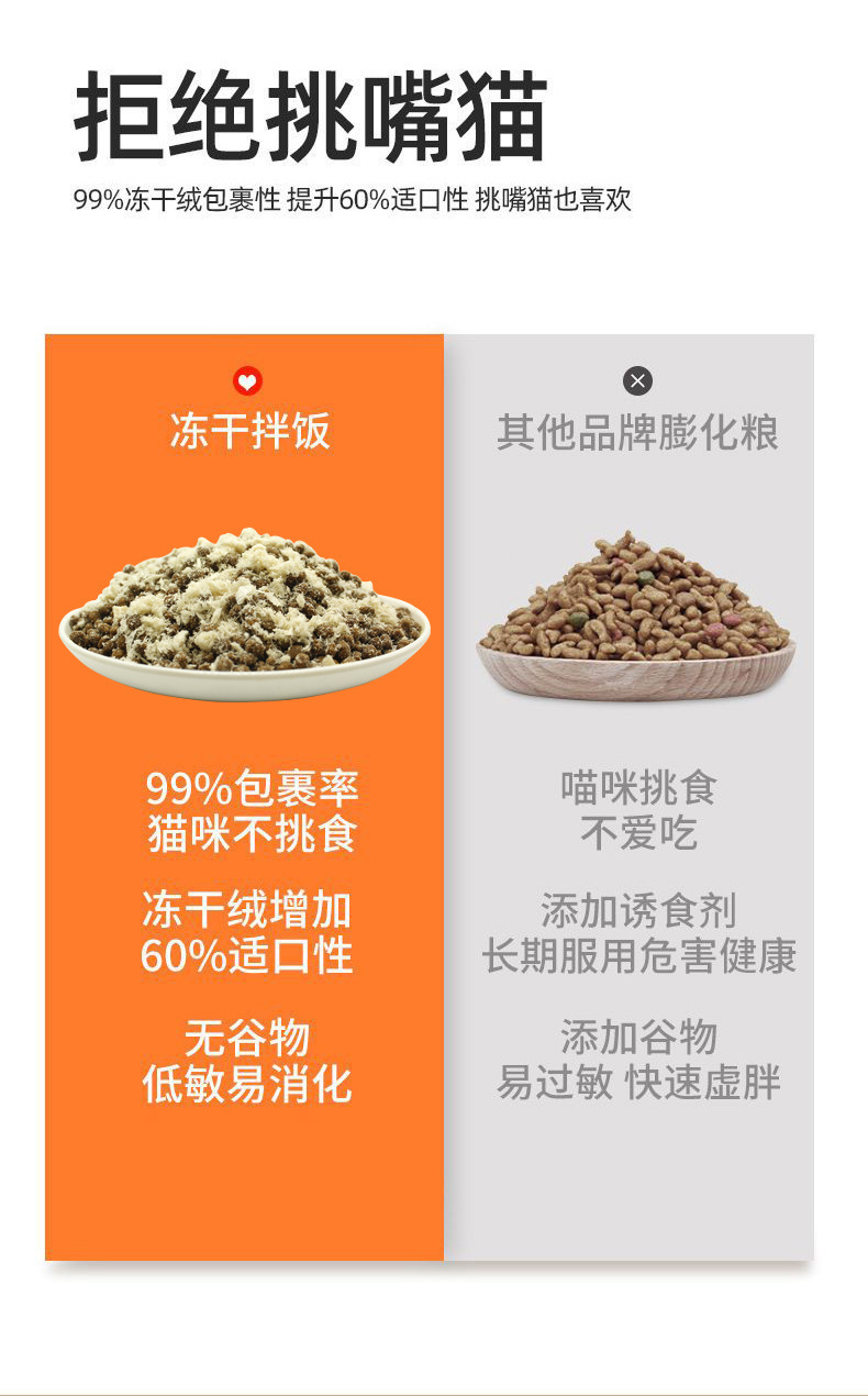 Alimentos para gatos de precio completo 2,5 kg de pollo liofilizado felino adulto felino ganancia de peso carne fresca flocos de nieve fábrica de alimentos para gatos en stock al por mayor