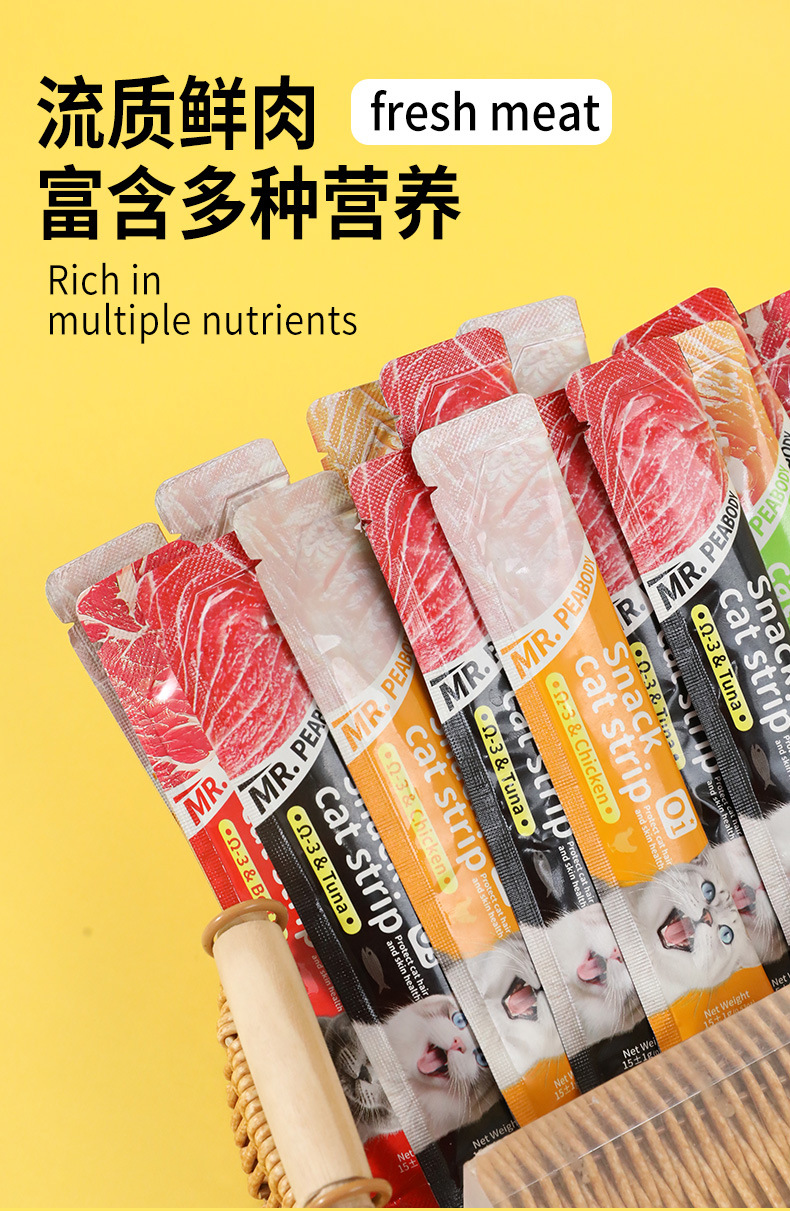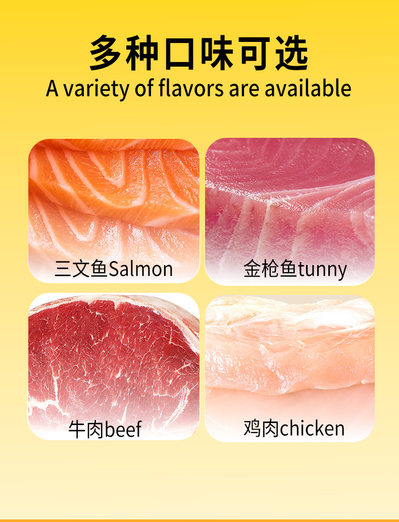 Bocadillos para gatos comercio exterior especializado para toda la caja de carne de res, atún, aceite de pescado, grano húmedo para gatos jóvenes, bocadillos nutricionales al por mayor transfronterizos