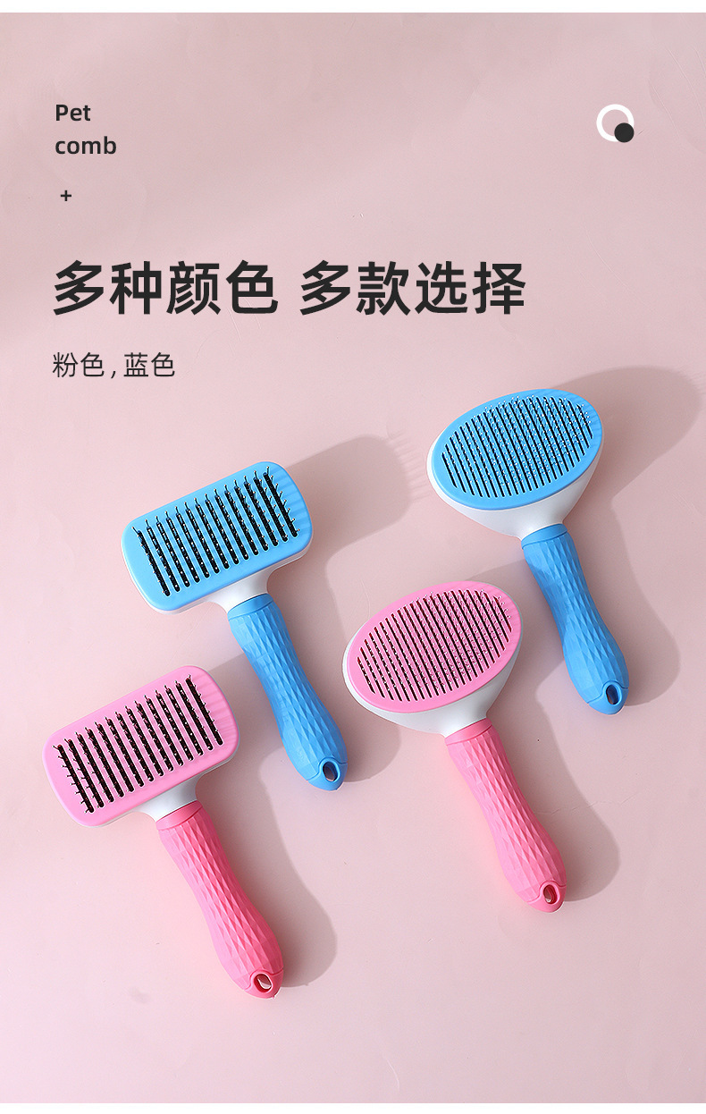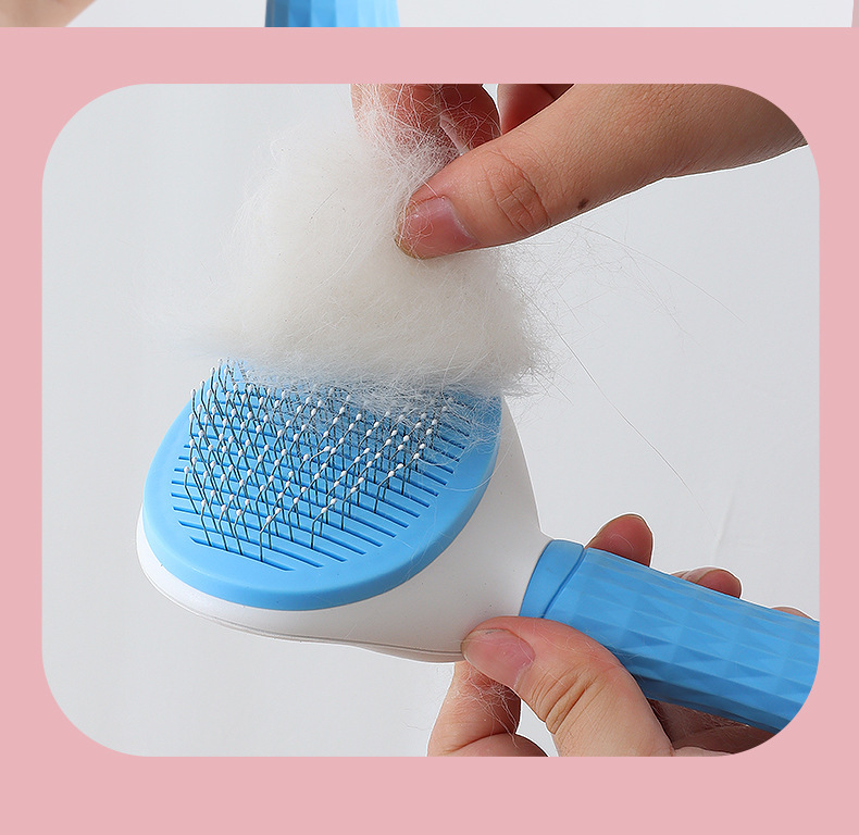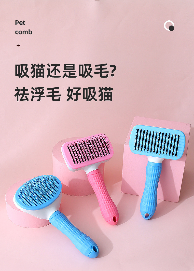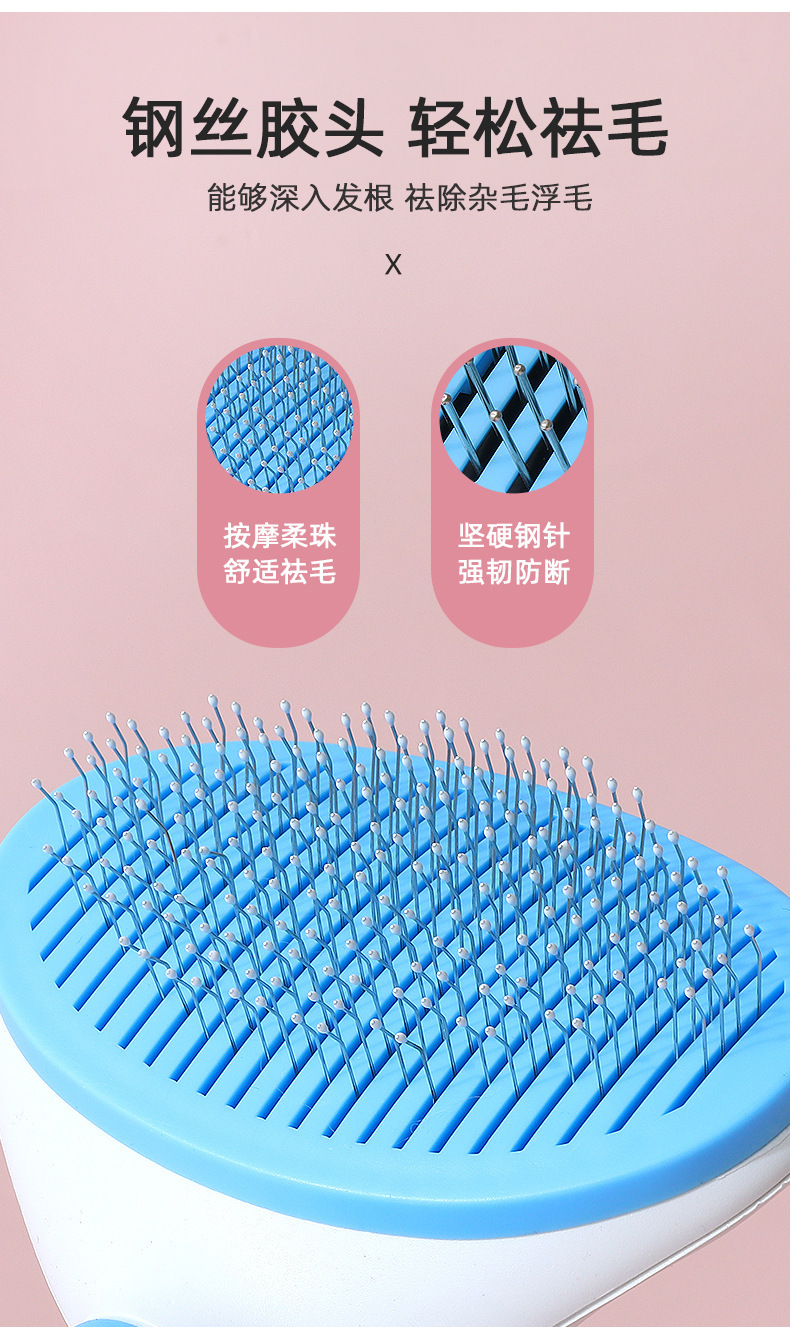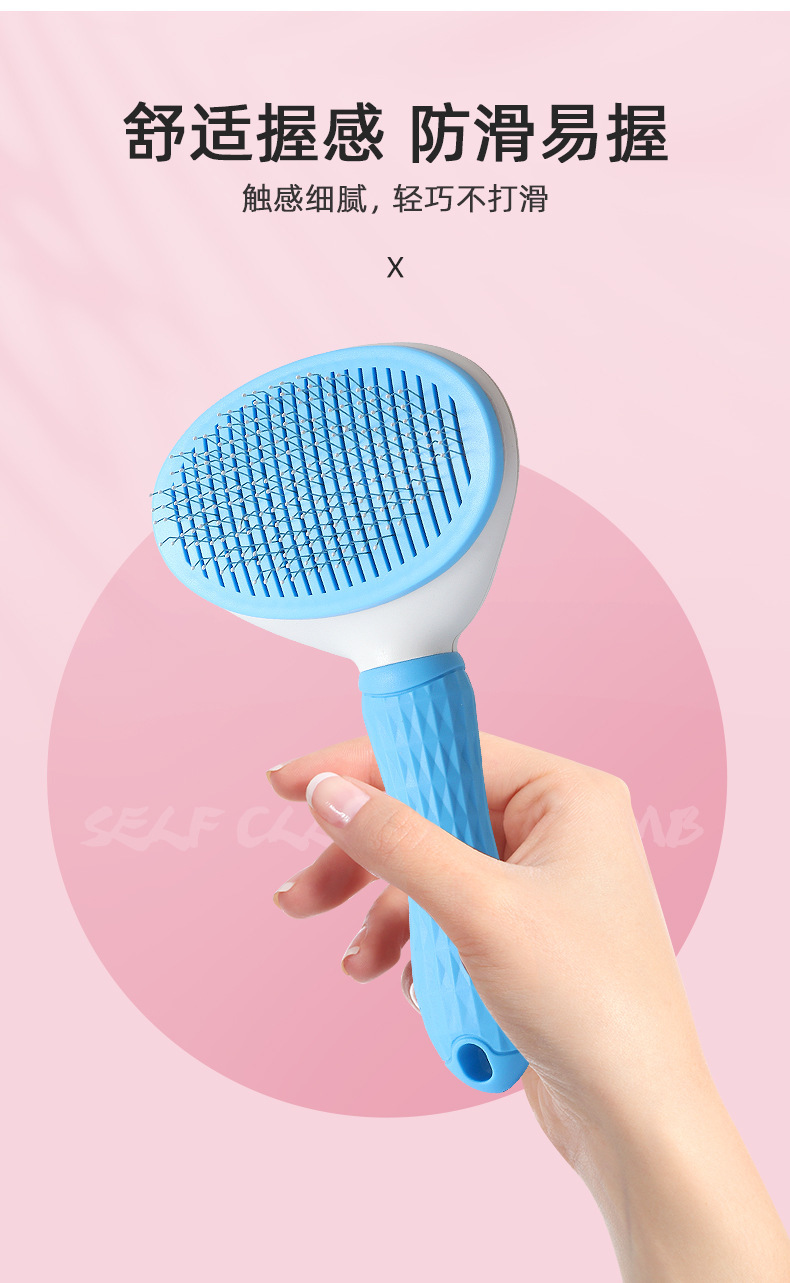 Hawo peine de autolimpieza para mascotas al por mayor peine de masaje universal para gatos y perros redondo mango suave cepillo de aguja de acero autolimpiante peine de depilación