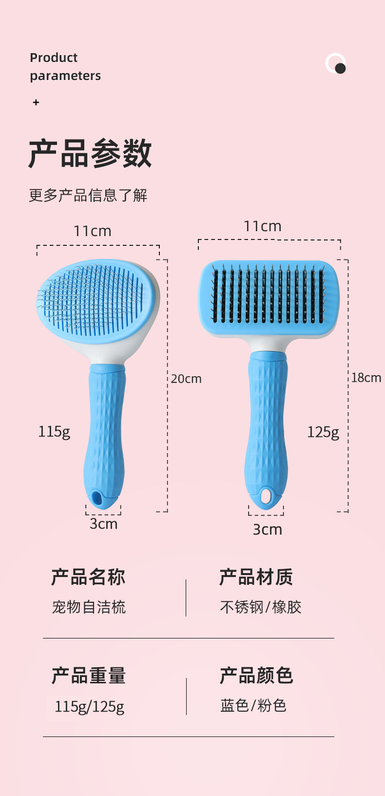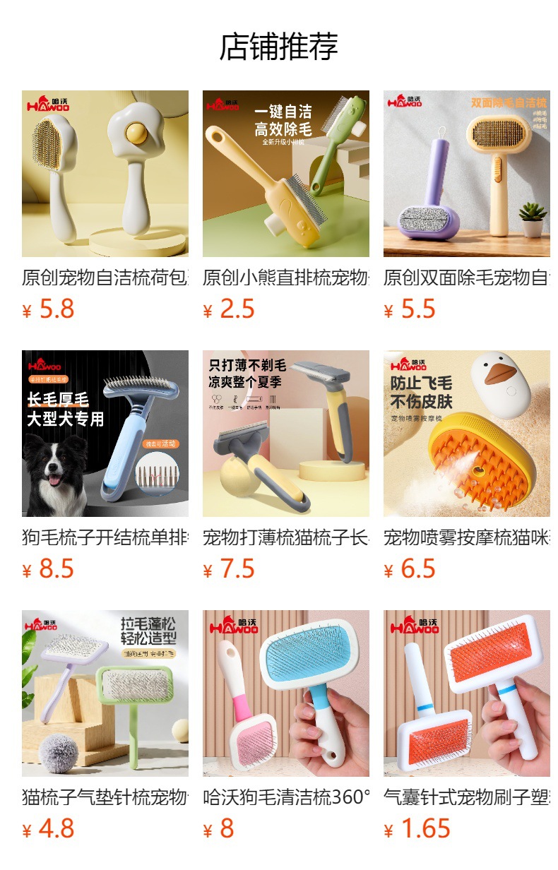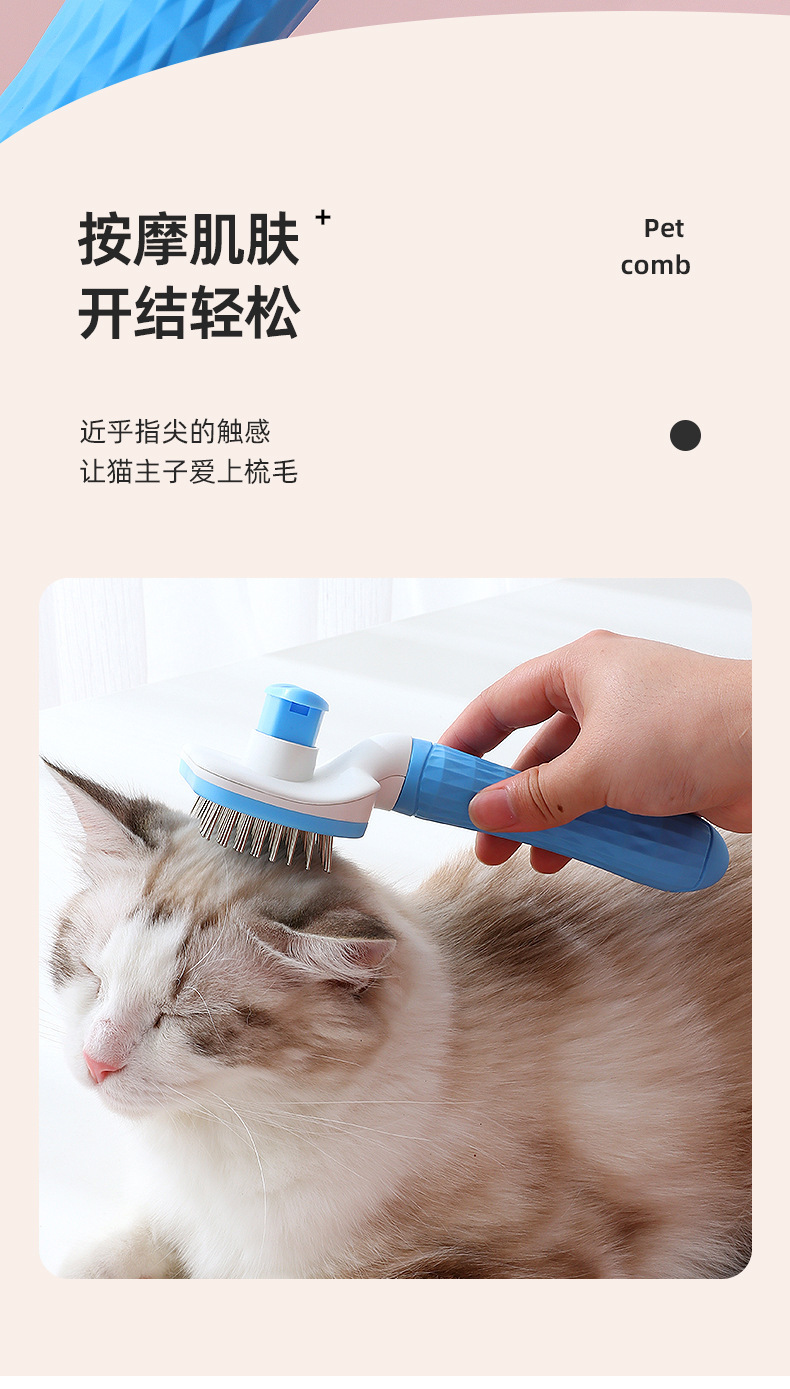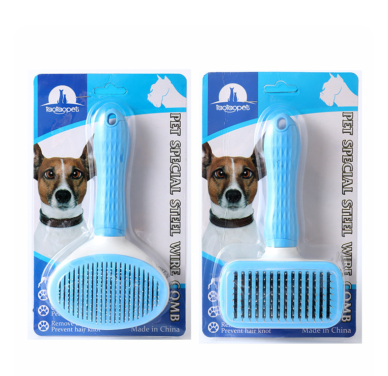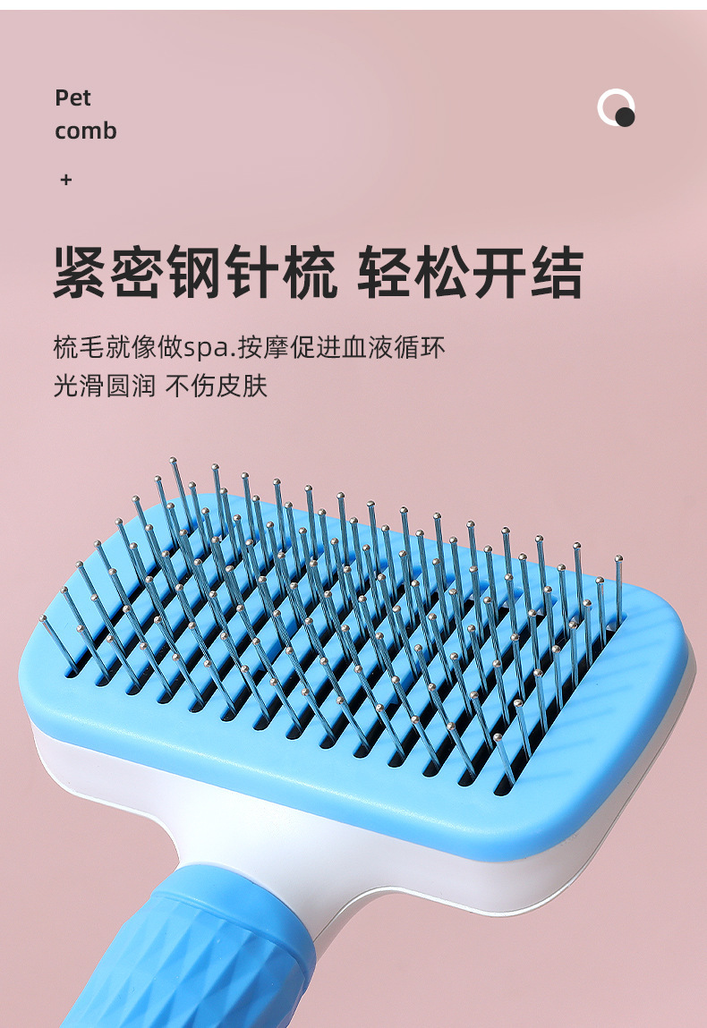 Hawo peine de autolimpieza para mascotas al por mayor peine de masaje universal para gatos y perros redondo mango suave cepillo de aguja de acero autolimpiante peine de depilación