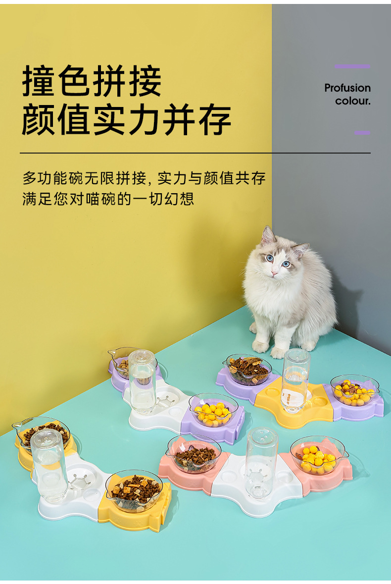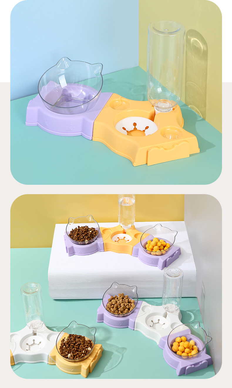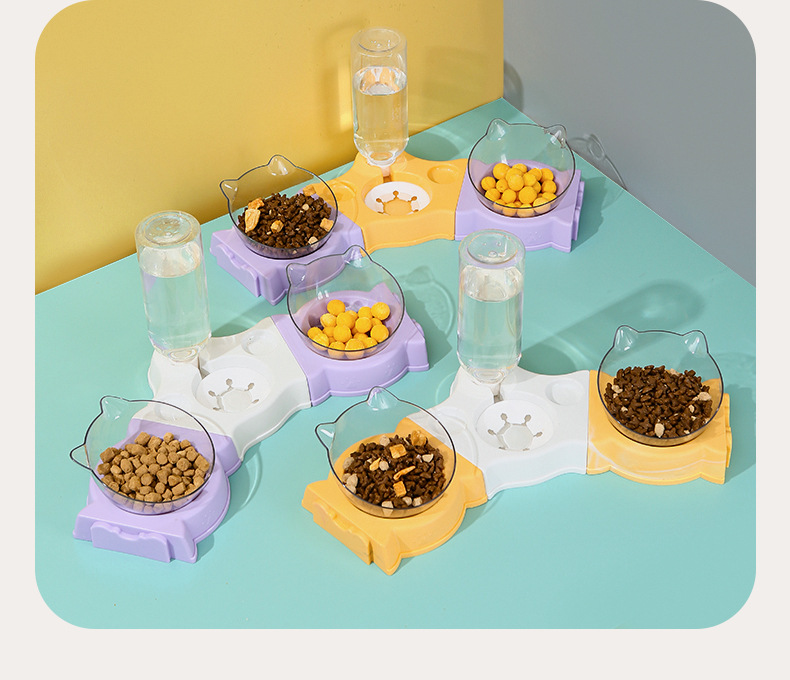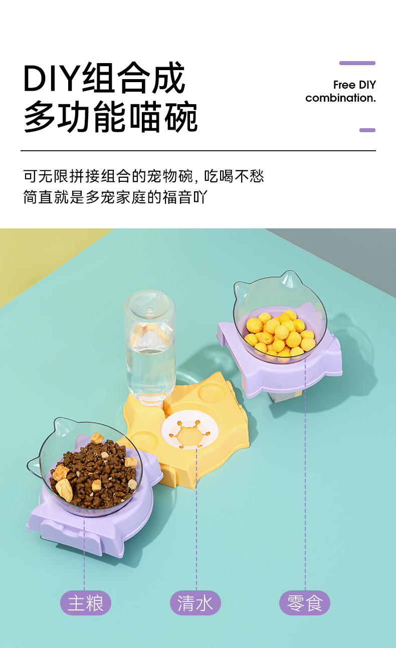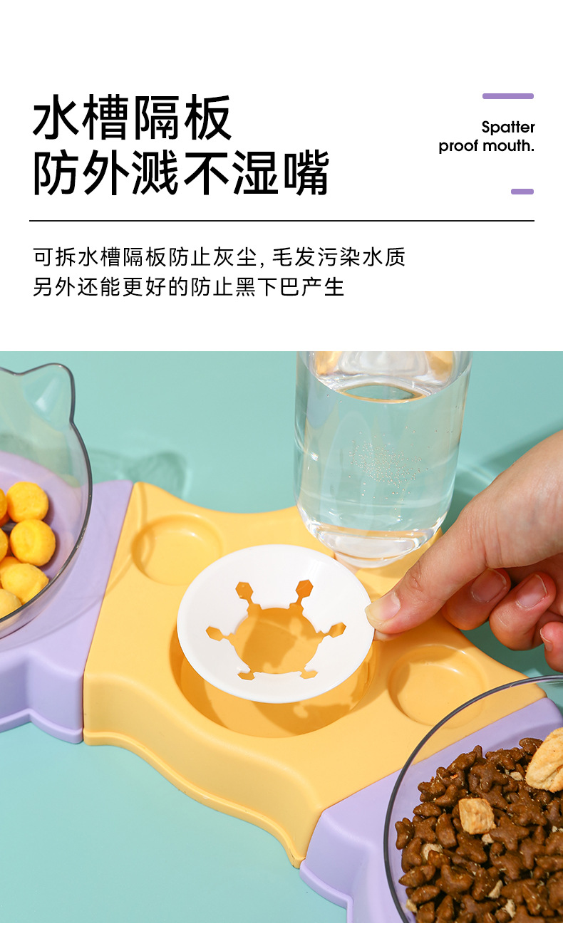 El protector para el cuello del tazón de gato se puede empalmar con un tazón doble, un tazón multifuncional para mascotas, una boca a prueba de humedad, un bebedero automático para perros, un tazón para perros