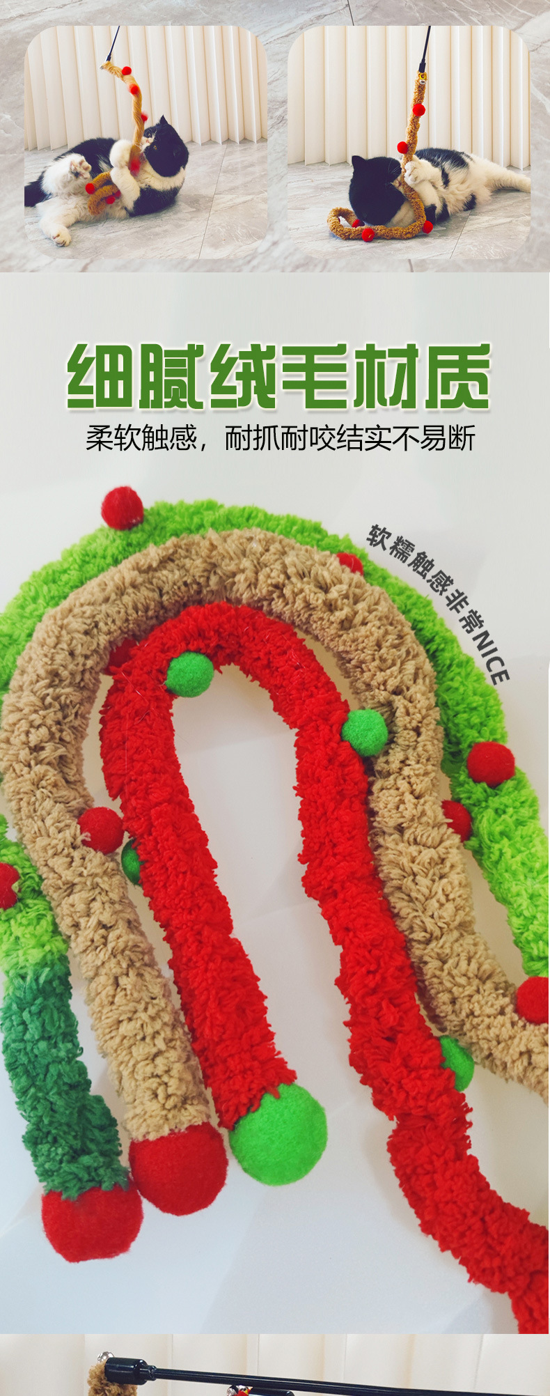 Nuevo estilo de franela alargada, raya de oruga silenciosa, auto-hola, palo de gato divertido, juguete para mascotas, poste de gato divertido de Navidad